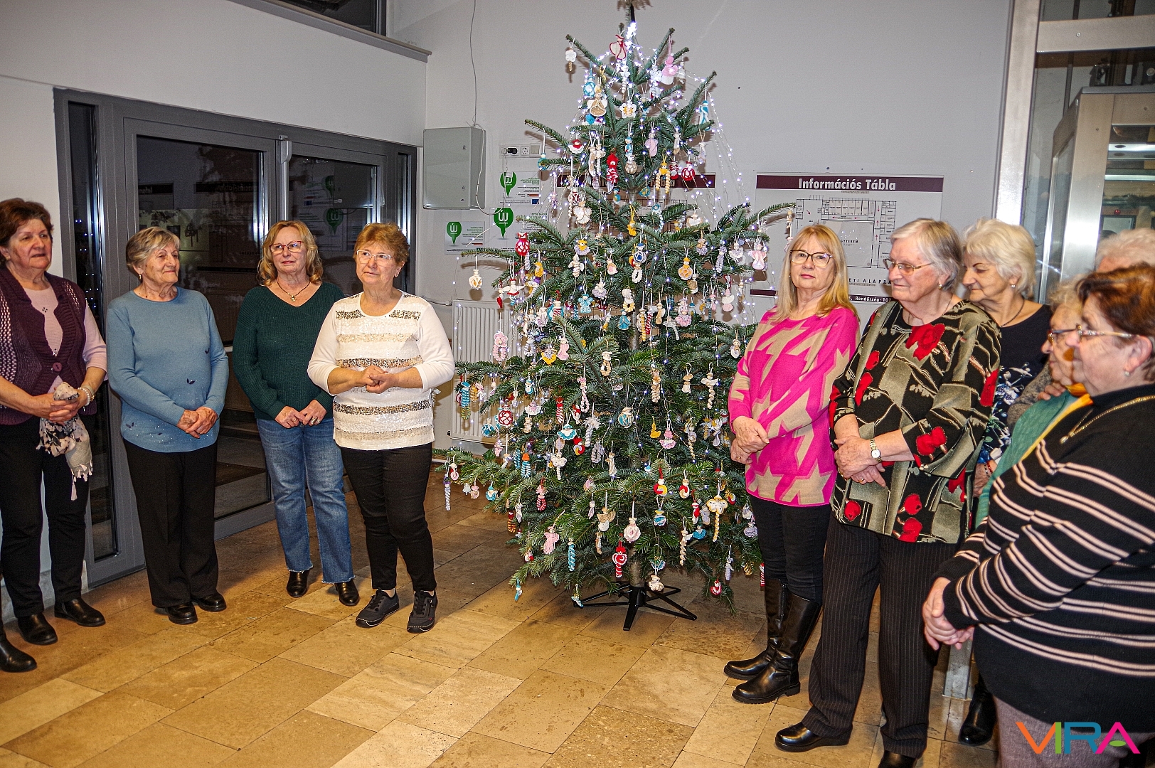 Az eseményen megjelenteket a Kiskörös Rózsája Horgolókör vezetője Grünwaldné Takács Aranka köszöntötte, aki elmondta, hogy tagjaik több hetes munkája áll a szép díszek mögött.