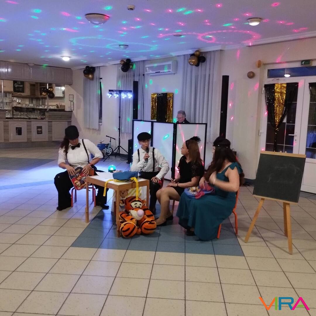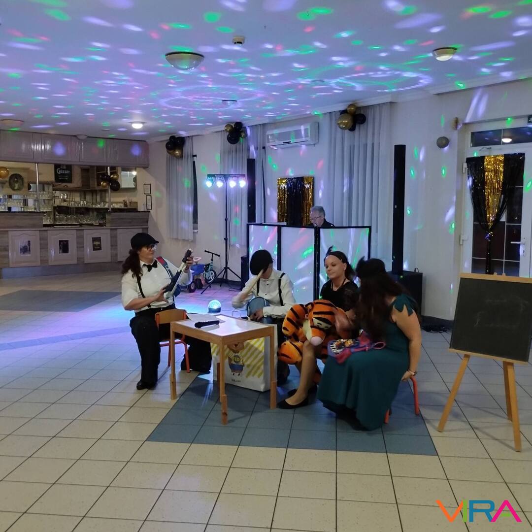 Belépéskor a welcome drink mellé egy kártyát is húztak az érkezők, melynek az előadás közben lett szerepe. A műsorban óvodapedagógusok és szülők szervezték a nagy oviKRÉTA akciót. A feladatuk az volt, hogy illegális játékokat – óriás plüss, fegyverek, édesség – csempésszenek be az oviba. Ehhez azonban szükség volt egy elterelő akcióra, melyhez azokat a vendégeket kérték, akik Ász vagy Jolly Joker lapokat húztak.