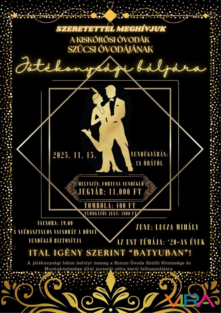 November 15-én este újra megtelt élettel a Fortuna vendéglő. A Kiskőrösi Óvodák Szücsi Óvodája várta vendégeit a jótékonysági szülők-nevelők báljára. A dekoráció a ’20-as évek hangulatát idézte, a 95 fő megjelent vendég közül többen is autentikus öltözékben jelentek meg. A vacsoráról most is császártöltési Dönci vendéglő, a zenéről pedig Lucza Mihály gondoskodott.