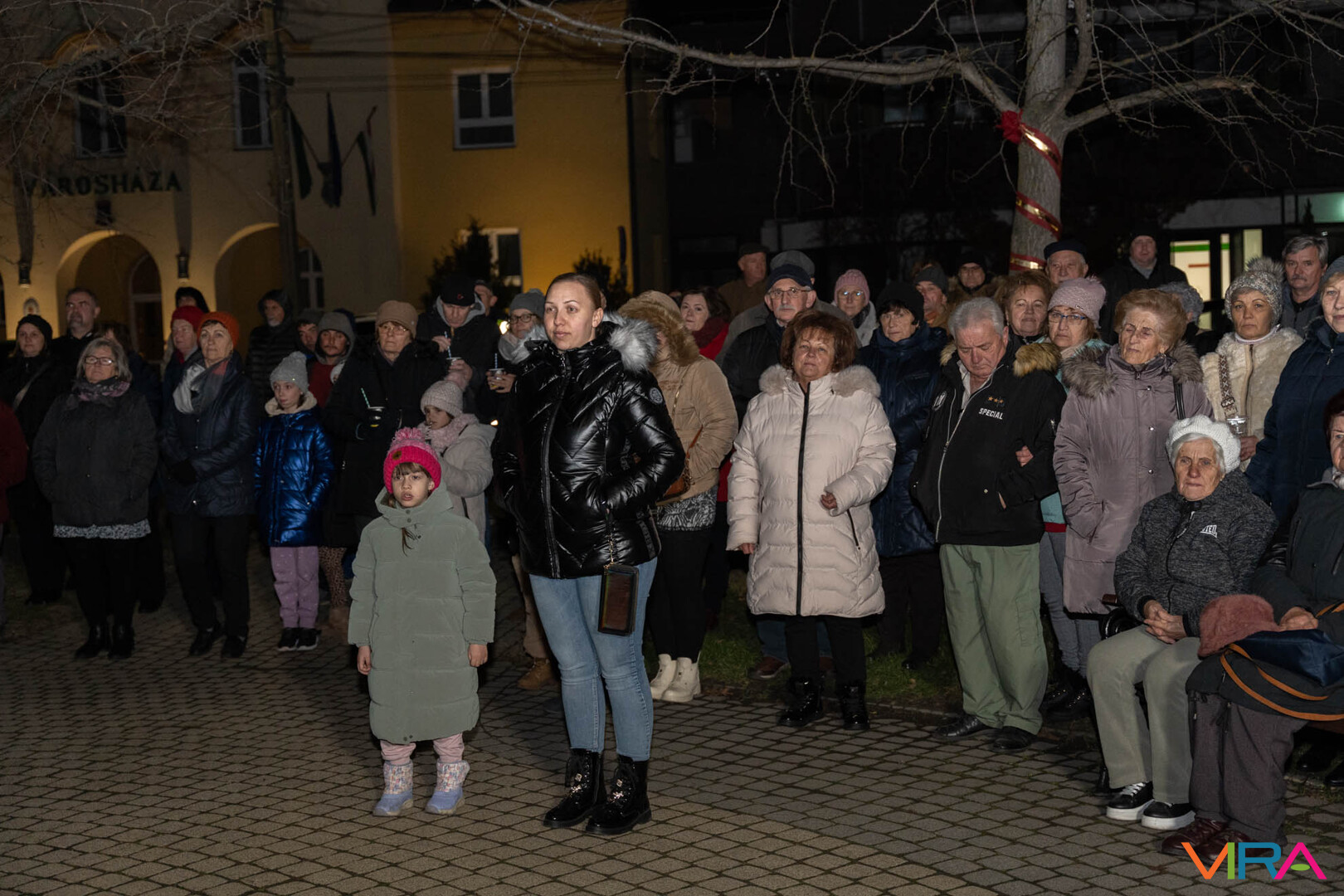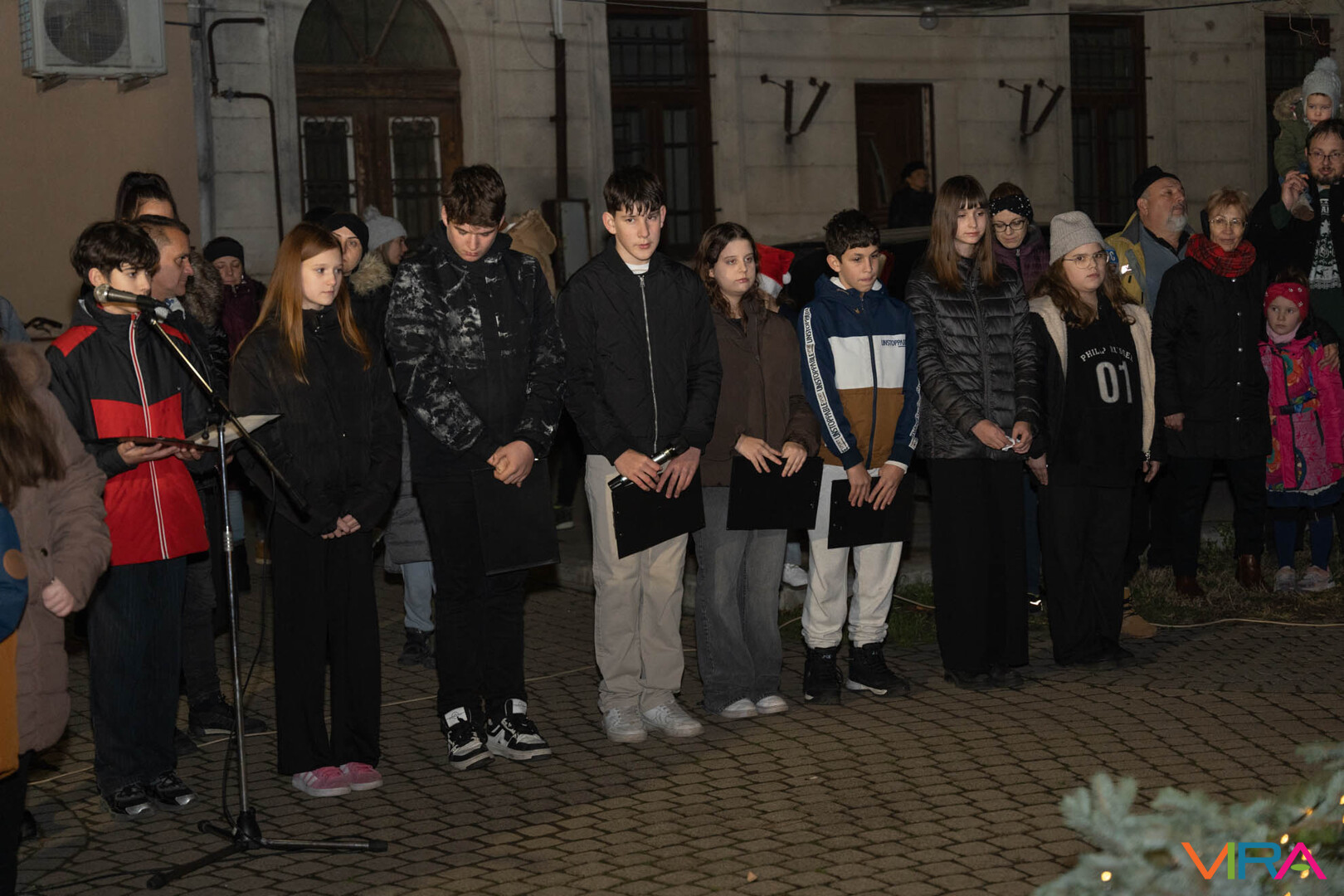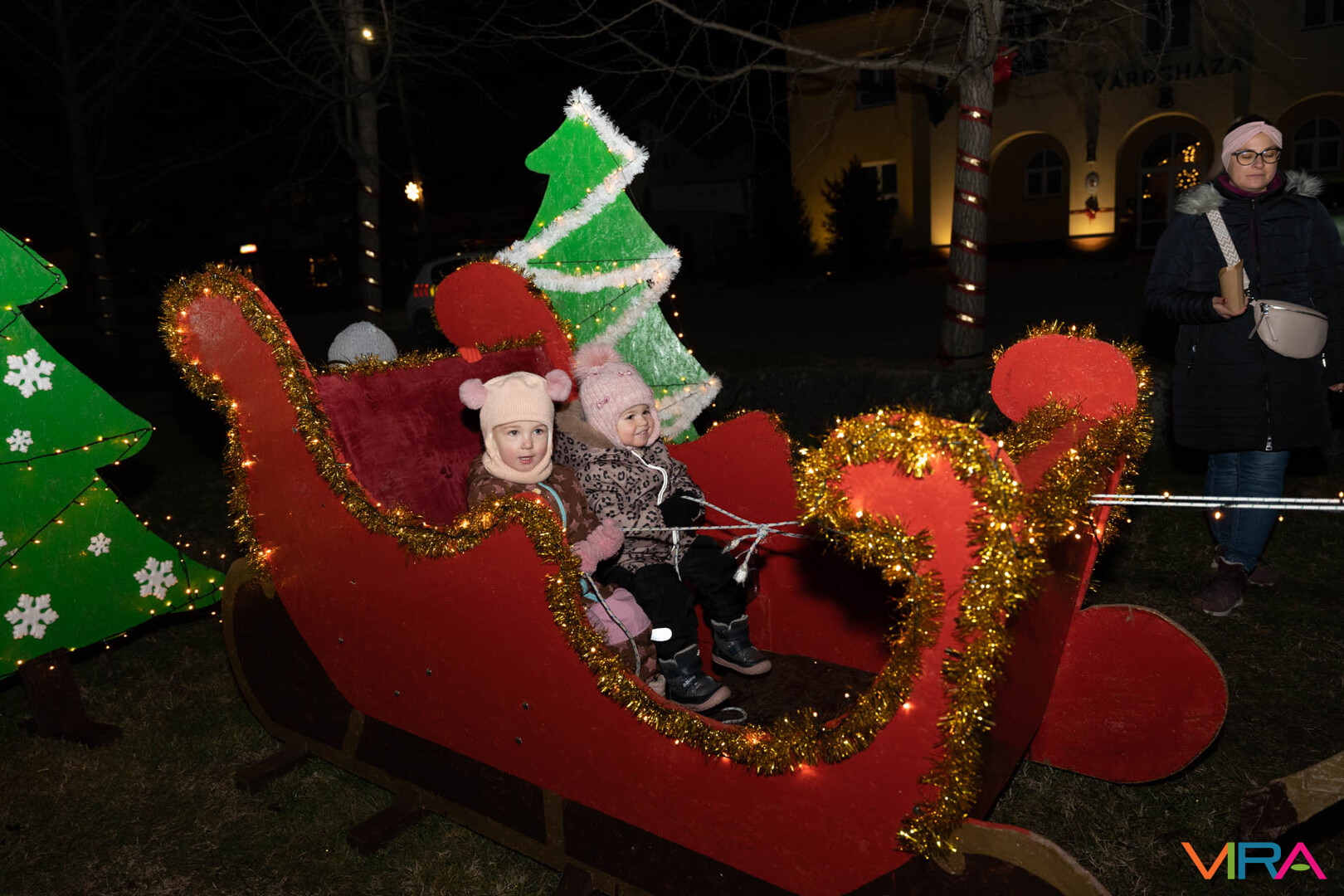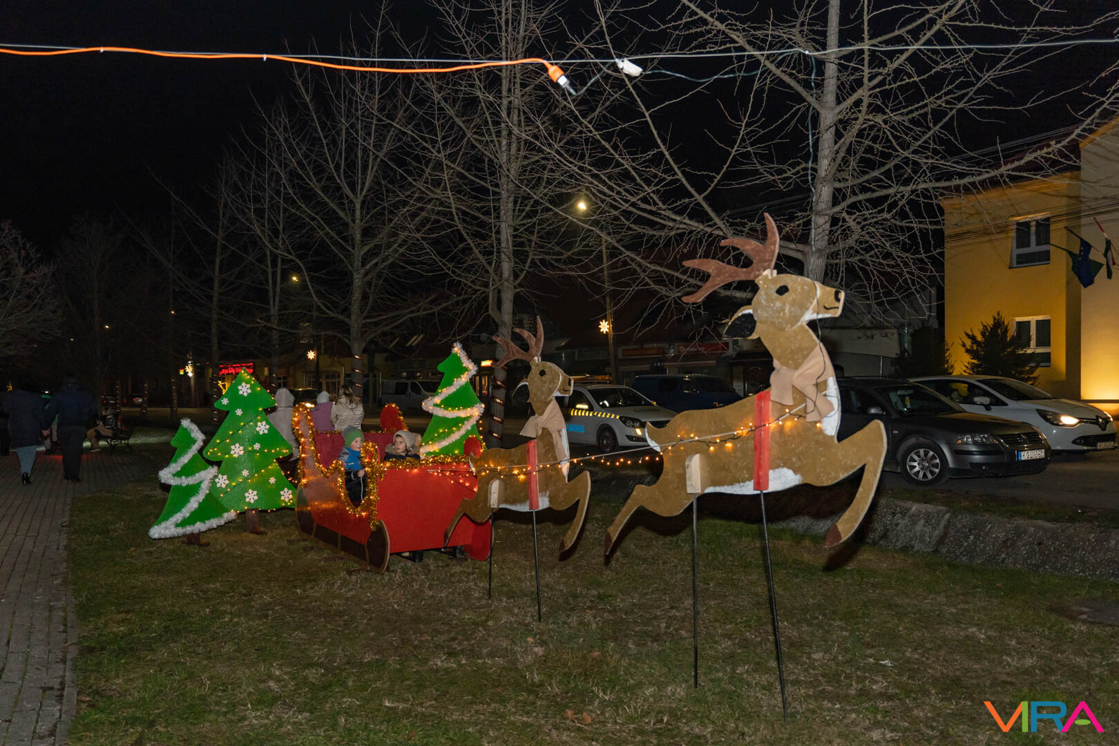 Ezt követően Tetézi Lajos, a rendezvény hosszú évek óta házigazdája köszöntötte a megjelenteket. Felidézte, hogy milyen különleges érzés látni, hogy 18. éve a főtér minden évben közösségi összefogásból születik újjá. Mint mondta, az idei látvány talán minden eddiginél szebb: a karácsonyfa, a jászol, a rénszarvasszán, az óvodások installációi és a fények mind-mind azt üzenik: van remény, és van még bennünk erő, hogy együtt tegyünk valami szépet.