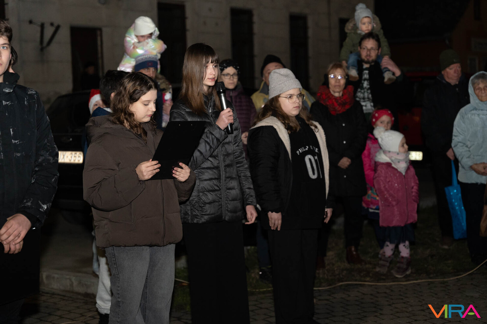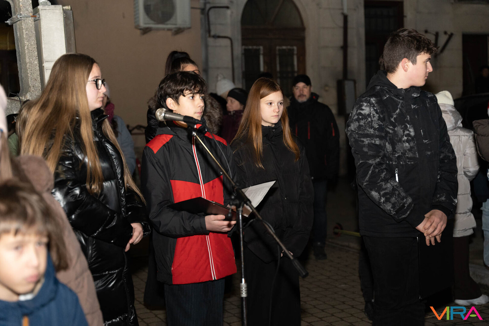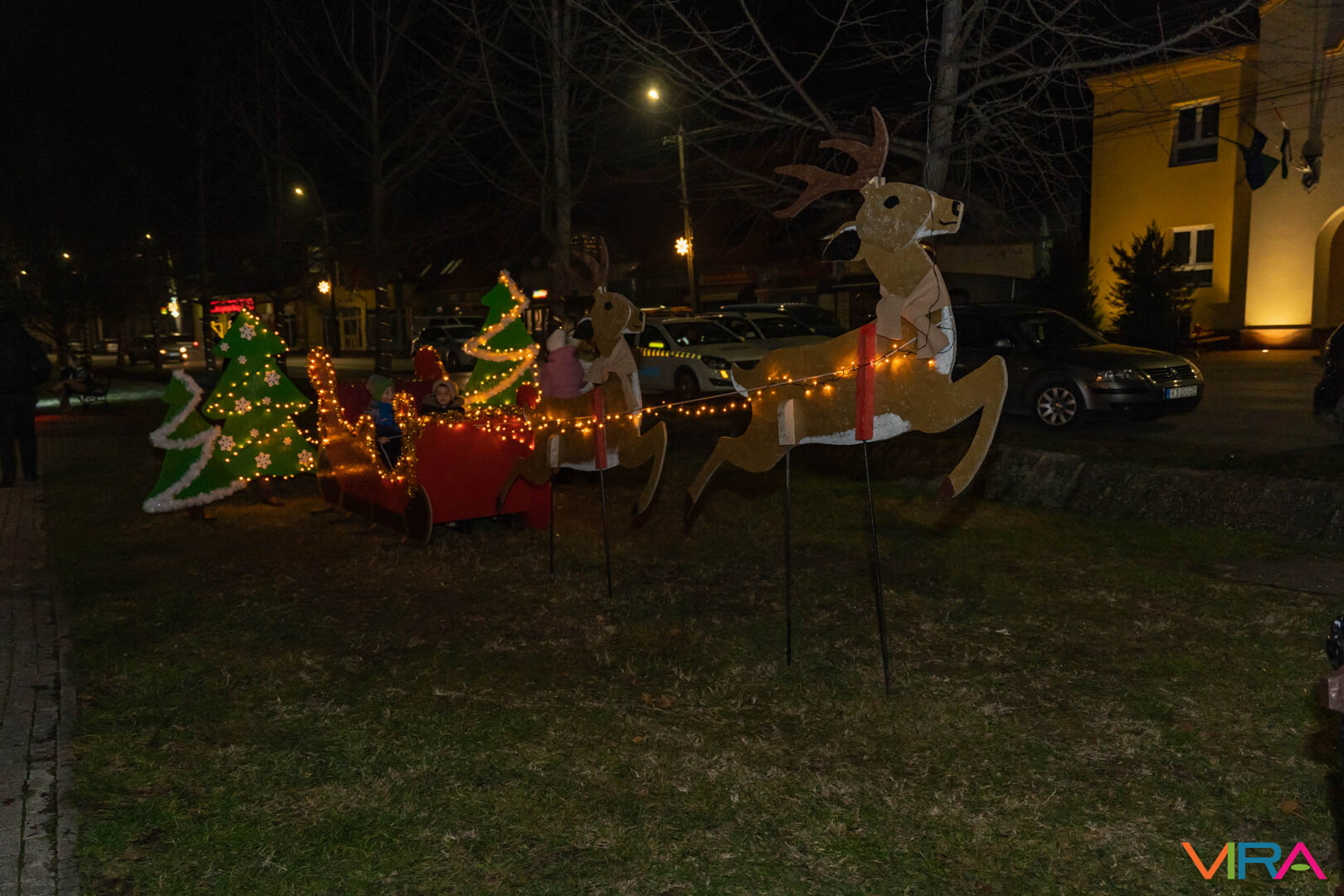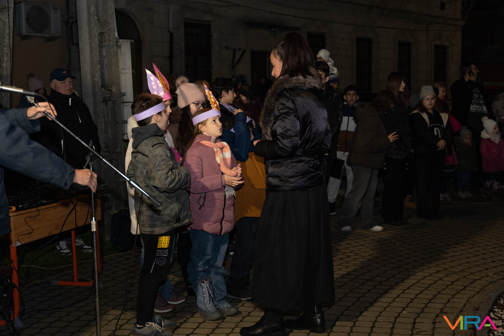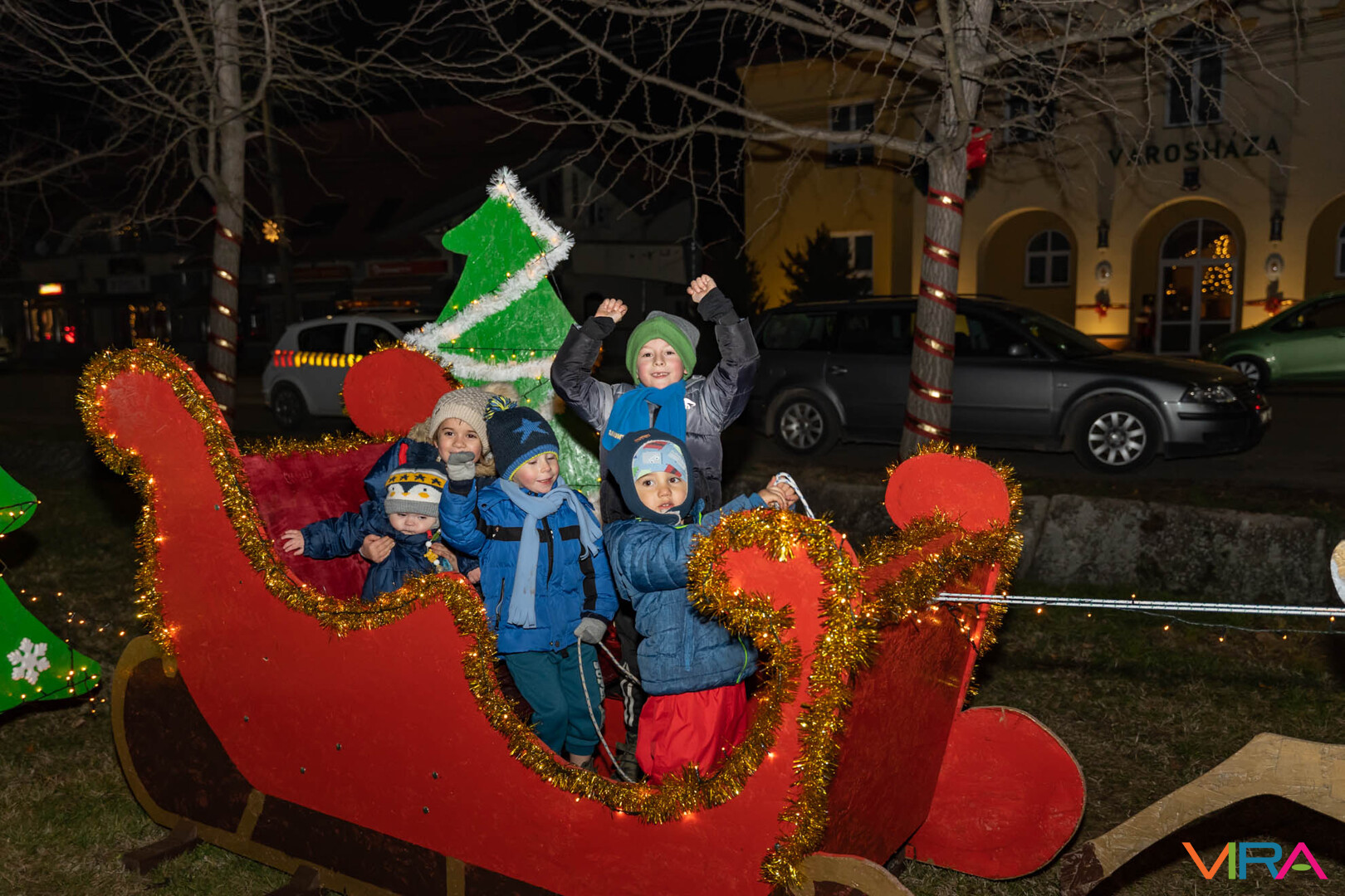 Ezt követően Tetézi Lajos, a rendezvény hosszú évek óta házigazdája köszöntötte a megjelenteket. Felidézte, hogy milyen különleges érzés látni, hogy 18. éve a főtér minden évben közösségi összefogásból születik újjá. Mint mondta, az idei látvány talán minden eddiginél szebb: a karácsonyfa, a jászol, a rénszarvasszán, az óvodások installációi és a fények mind-mind azt üzenik: van remény, és van még bennünk erő, hogy együtt tegyünk valami szépet.