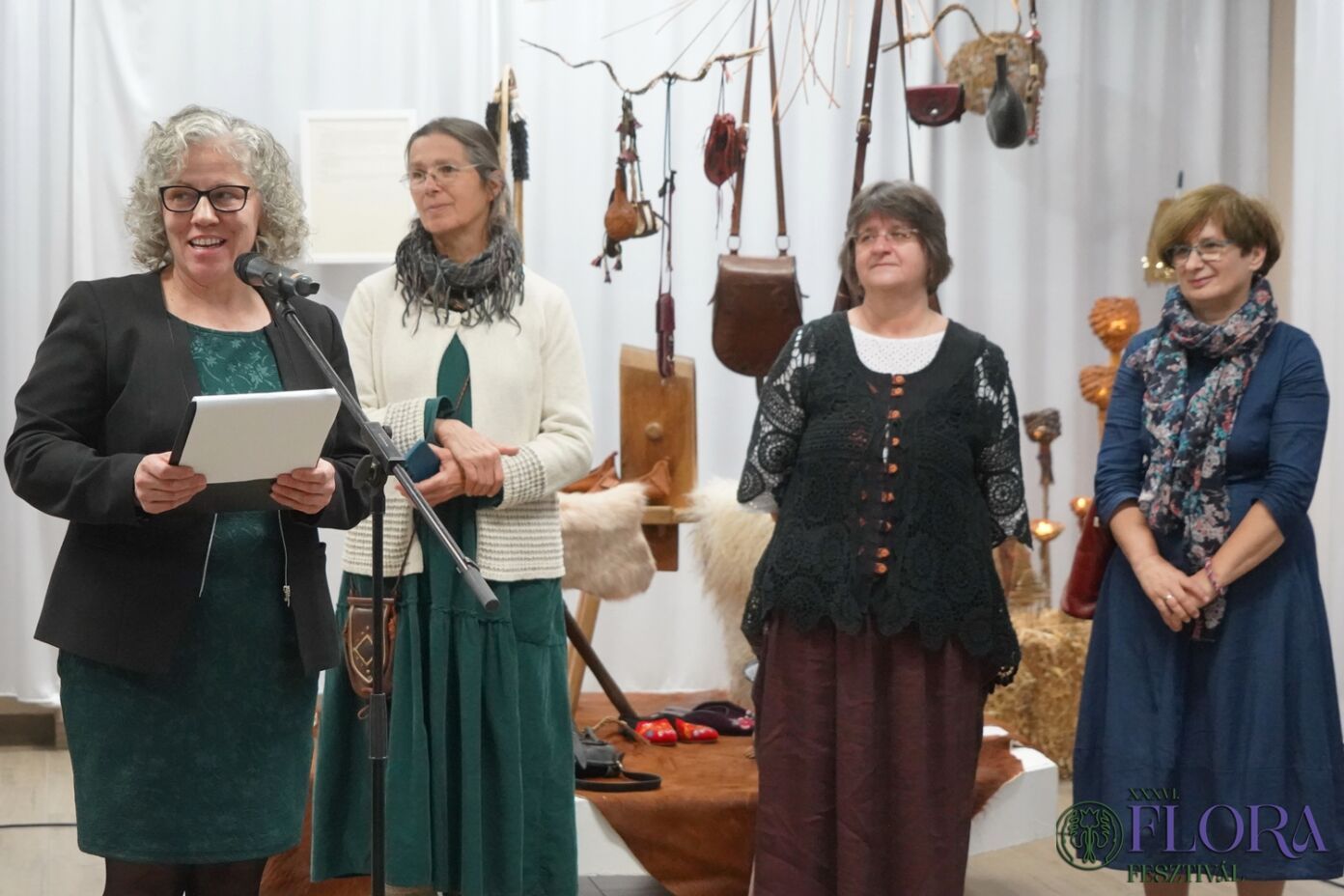 – Éva a természet anyagaival dolgozik. Fon, sző, csomóz, köt. Miközben alkotásain át a népi kézművesség alapvető értékei: a közösség, az időtlenség és a kéz munkájának becsülete szólalnak meg. Munkái azt üzenik, hogy a vessző és a fonal sosem csupán anyag, hanem kapcsolat, generációkat, hagyományt és közösséget köt össze. Dóra bőrmunkái a magyar népi bőrművesség gazdag formavilága mellett a világ népeinek hagyományait idézik. A bőr, ez az élő és lélegző anyag az emberi kéz nyomát hordozza magán. Minden vágás, minden díszítés személyes üzenet. A formákban, vonalakban és díszítésekben ott az a több évszázados tapasztalat, amelyet a mesterek nem könyvekből, hanem egymás kezéből tanulva adtak át – adta meg köszöntőjével a különleges kiállítás alaphangulatát az igazgatónő.