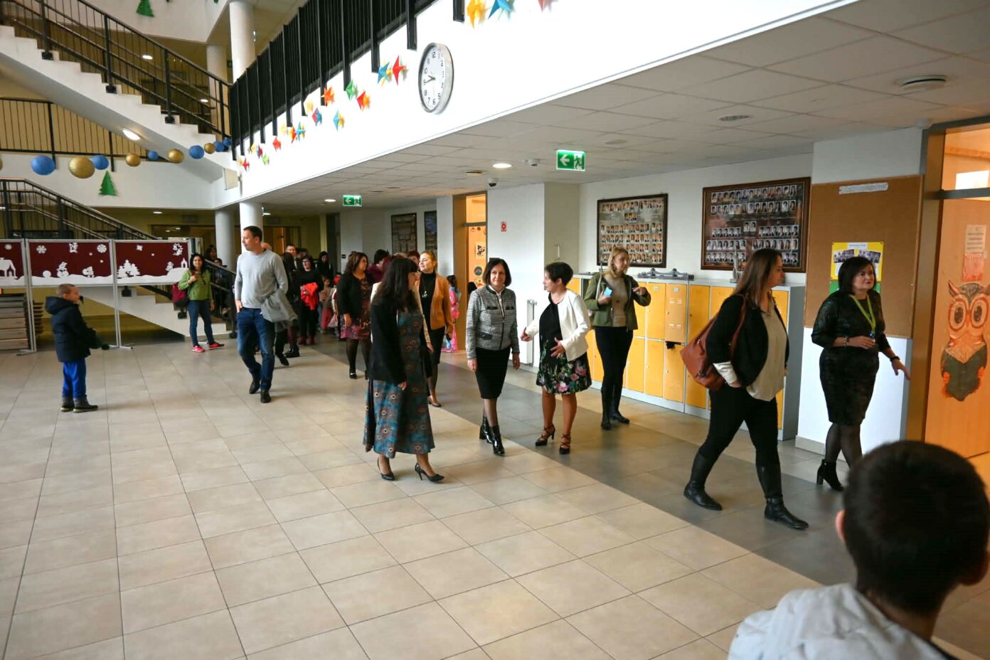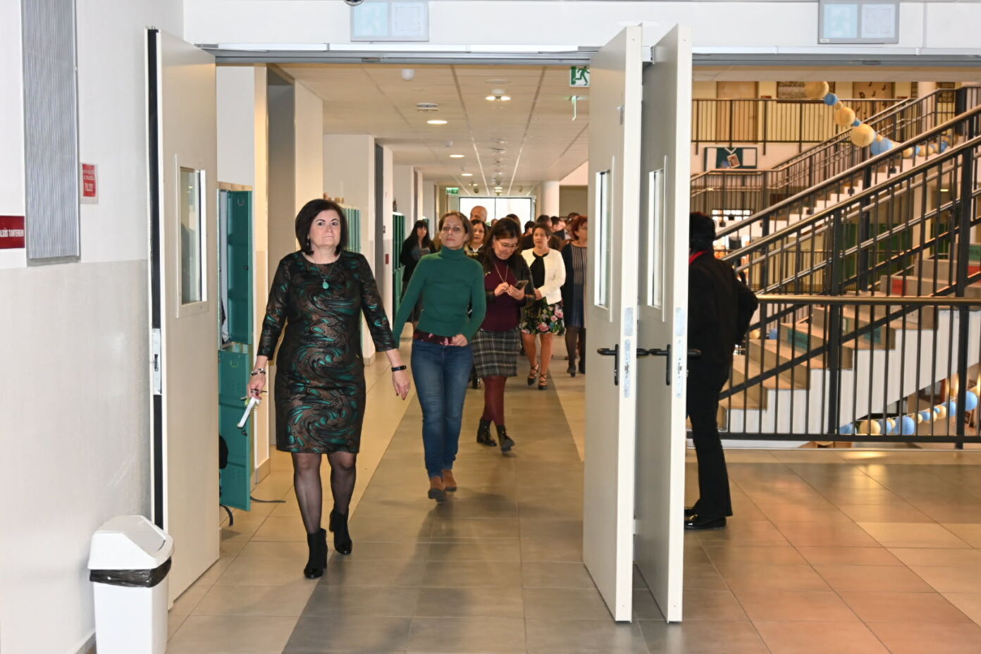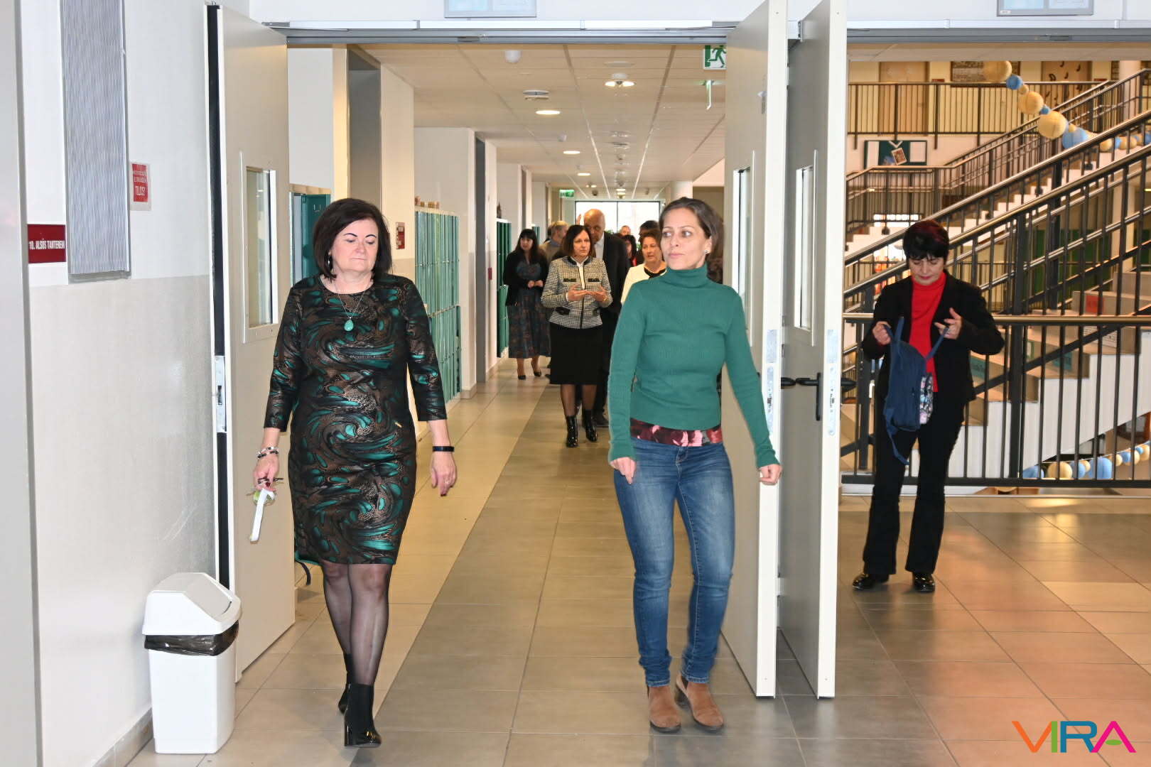 A meghívottak az épület bejárásával folytatták a programot, hiszen az izsáki iskola épülete olyan modern iskola, amelyre kevés példa van. A hagyományos tantermek mellett a vendégek olyan helyiségeket is láttak, amely az oktatás színvonalának emelését és az otthonosabb körülmények biztosítását segítik (fejlesztőtermek, informatikaterem, szaktantermek, sószoba, múzeum, Kölyök TV, sport létesítmények). Az épület megtekintése végén meglepetésként a 3. évfolyam tanulói a néptáncórákon tanult táncokból adtak ízelítőt a vendégeknek.