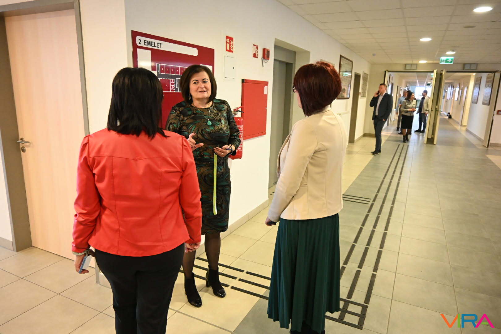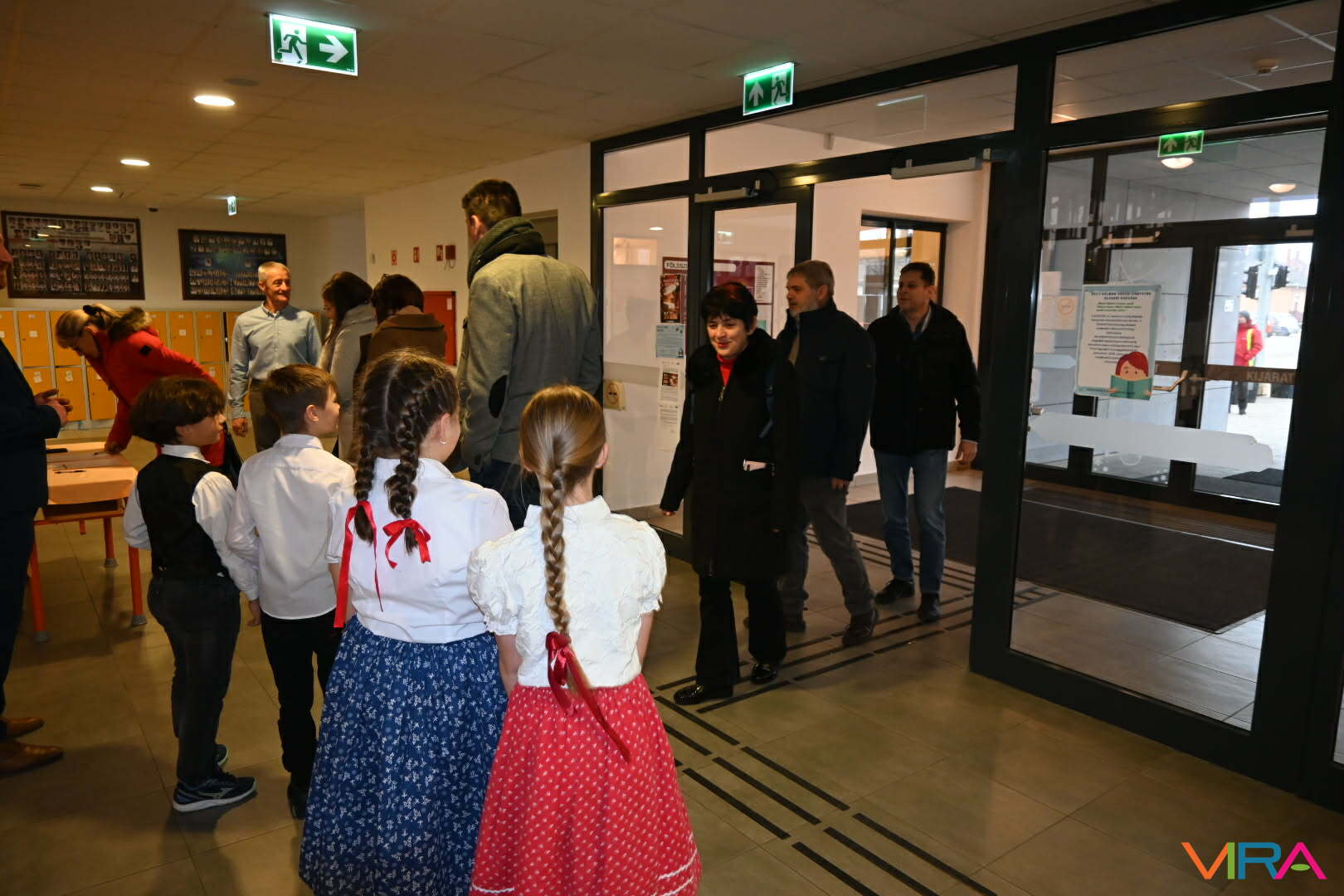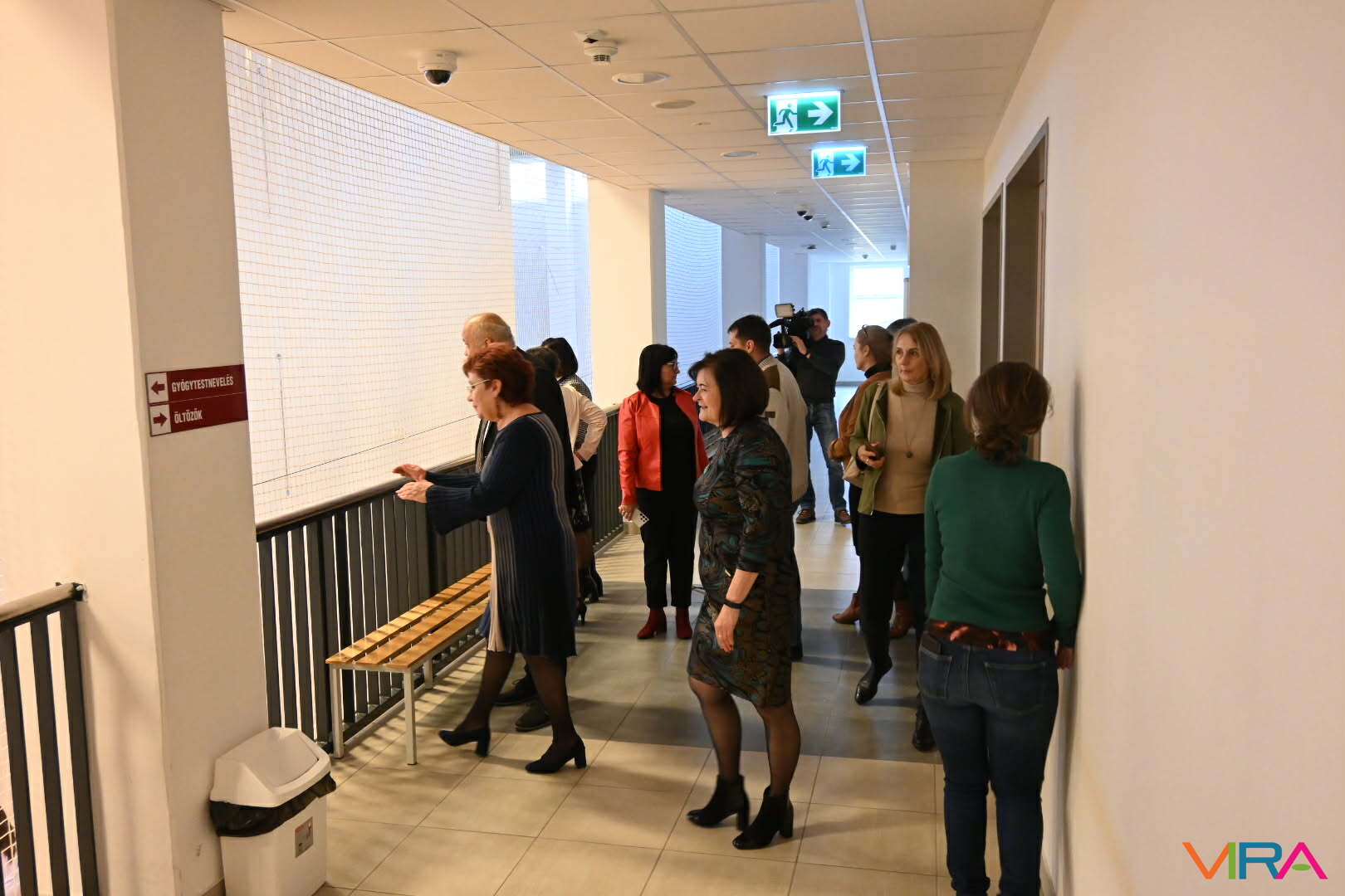 A meghívottak az épület bejárásával folytatták a programot, hiszen az izsáki iskola épülete olyan modern iskola, amelyre kevés példa van. A hagyományos tantermek mellett a vendégek olyan helyiségeket is láttak, amely az oktatás színvonalának emelését és az otthonosabb körülmények biztosítását segítik (fejlesztőtermek, informatikaterem, szaktantermek, sószoba, múzeum, Kölyök TV, sport létesítmények). Az épület megtekintése végén meglepetésként a 3. évfolyam tanulói a néptáncórákon tanult táncokból adtak ízelítőt a vendégeknek.