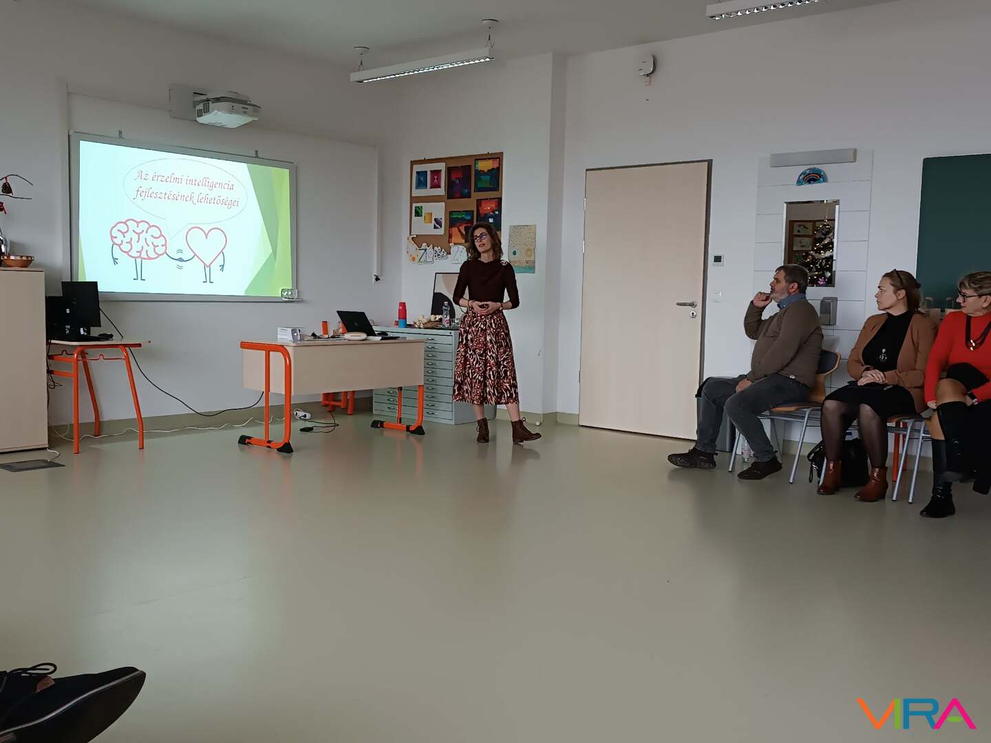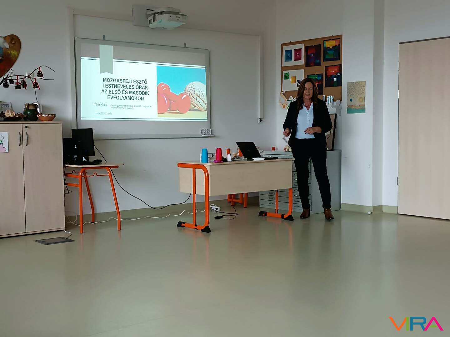 A nap az iskola szakmai munkájának bemutatásával folytatódott. Kapás Zoltánné igazgató beszélt az iskola életét színesítő programokról, hagyományokról, műsorokról, a délutáni elfoglaltságok tárházáról. Az élményelemek bemutatása mellett szó esett az iskolában megjelenő problémákról és ezek megoldási lehetőségeiről, az idei évben bevezetett újdonságokról, s a támogató, együttműködő, kreatív tantestületről.
