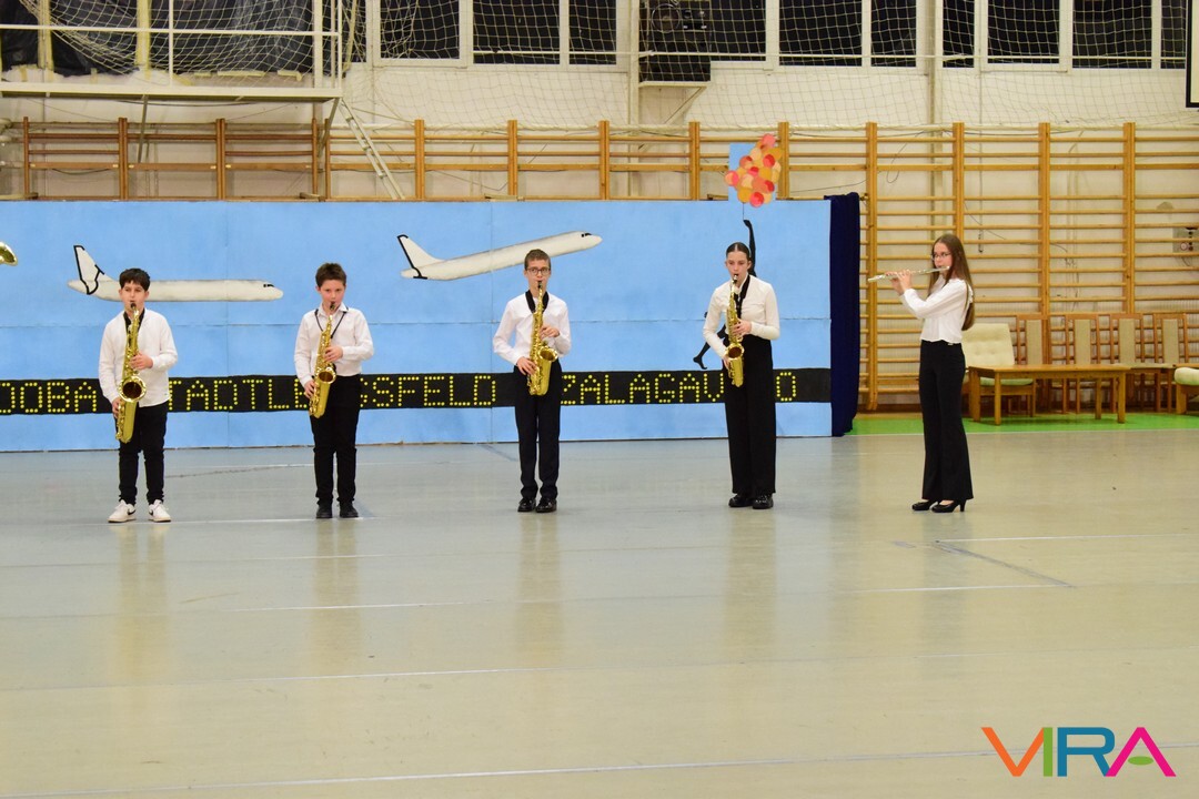 Az eseményt Gmoser István és tanítványainak fanfár játéka nyitotta meg, majd a végzős tanulók bevonultak az iskola sportcsarnokába. A bevonulás közben hallható zongoradarabot Suba Marcell 12/A osztályos tanuló szerezte. Előadták Mester Máté 10/A osztályos tanuló és Hajas Bence az intézmény nyolcadik osztályos diákja.