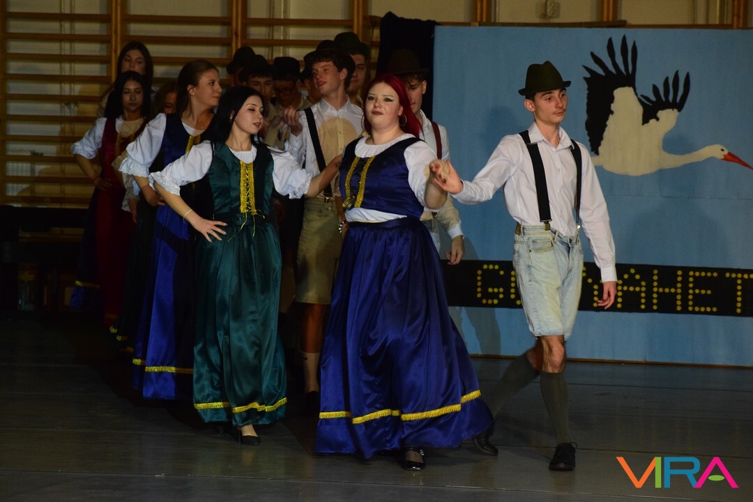 Kezdésként egy igazán különleges gitárszólóval indult a műsor, majd a gólyahét és a gólyatábor izgalmas programjai tárultak a nézők elé. Volt itt paprikás krumpli főzés, tűz körüli tánc és gólyaesküt is hallhattak a meghívottak. Előkerült a farsangi műsorra való előkészület is, annak próbái, amely az iskola egyik legjobban várt ünnepe minden évben, ahol az osztályok színes és látványos műsorokkal készülnek az iskolai farsangra. Éppen egy táncpróba kellős közepébe kalauzolták el a vendégeket a tizenegyedik évfolyamosok.