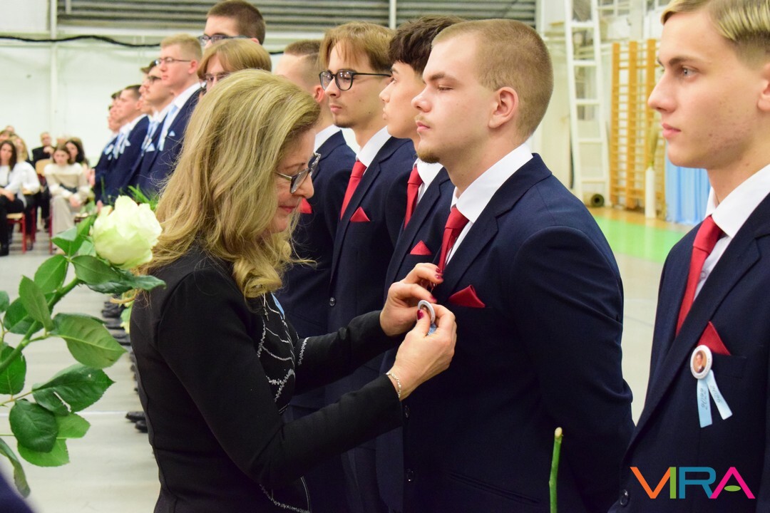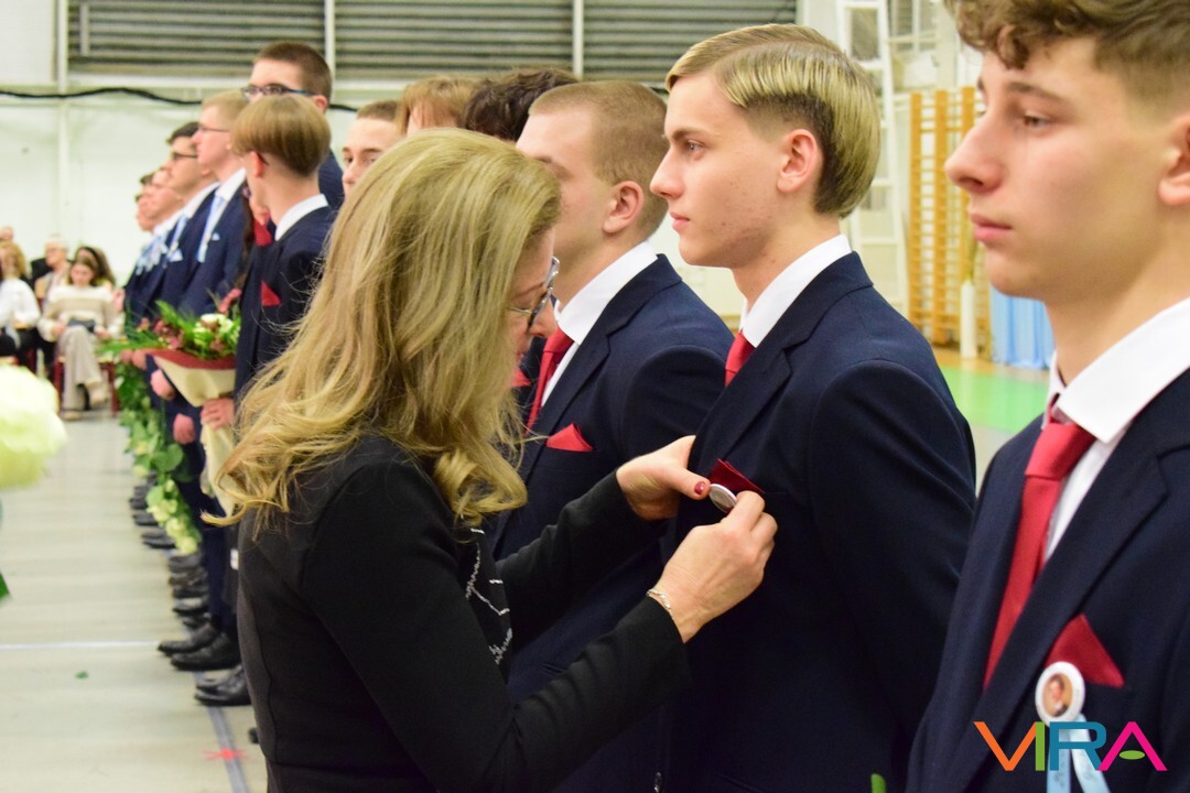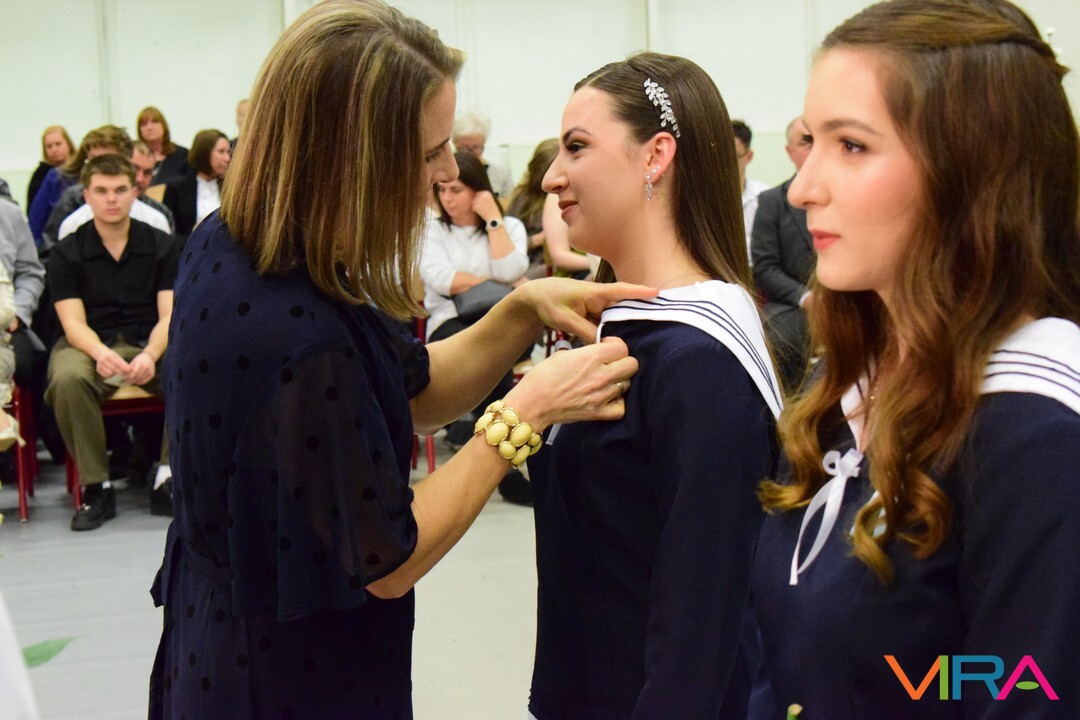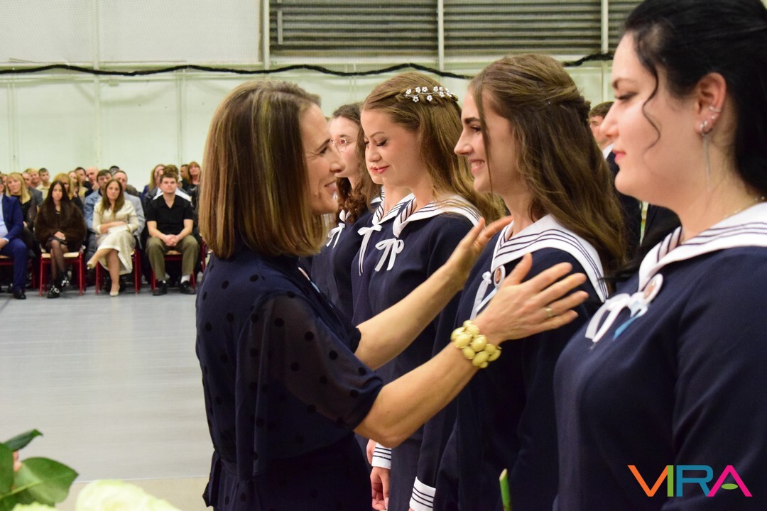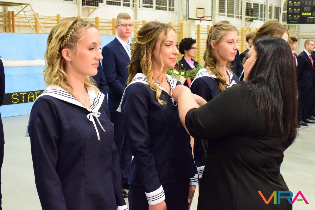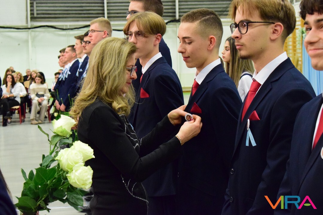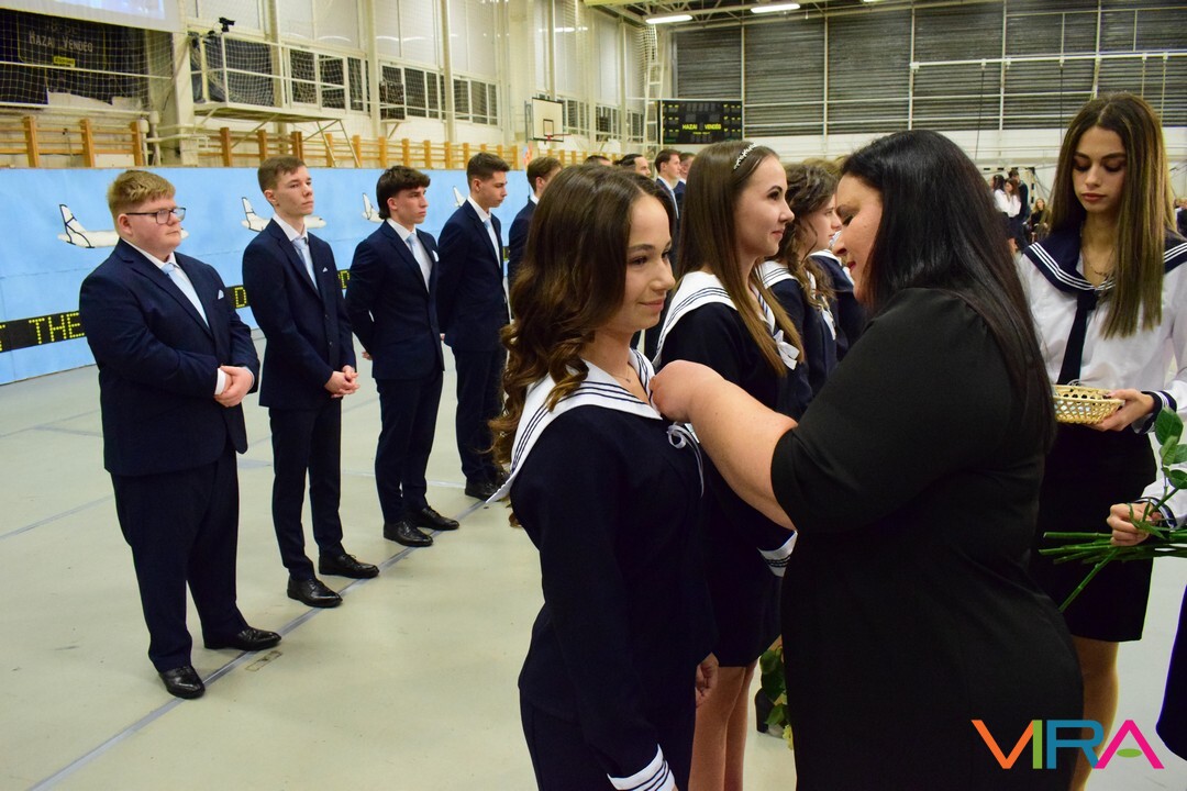 A különleges műsor után Pfeiffer-Dömök Krisztina iskolalelkész osztotta meg köszöntő gondolatait és mondott áldást a végzős diákokra. Ezt követően került sor a szalagtűzésre, melyen jelképesen a végzős diákok osztályfőnökei tűzték fel a szalagot, illetve egy szál fehér rózsát is kaptak a tizenkettedik évfolyamos tanulók. Előbb a 12/C és 12/D osztály szalagtűzésére került sor, majd a 12/A osztályosok kapták meg a szalagot.