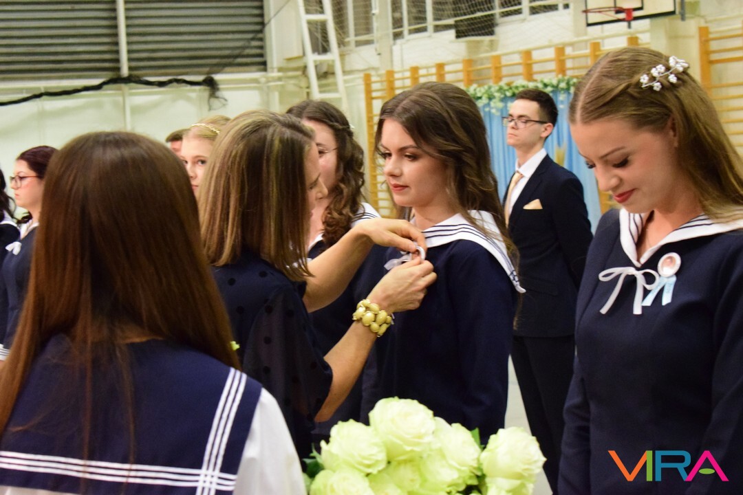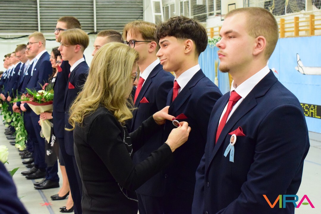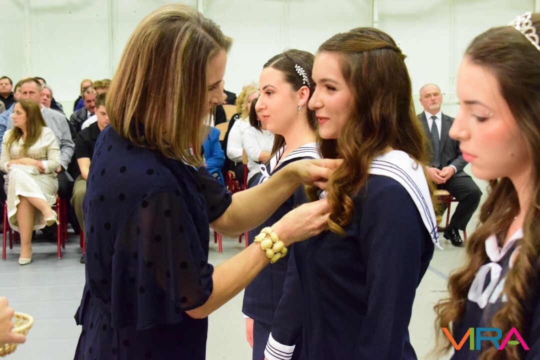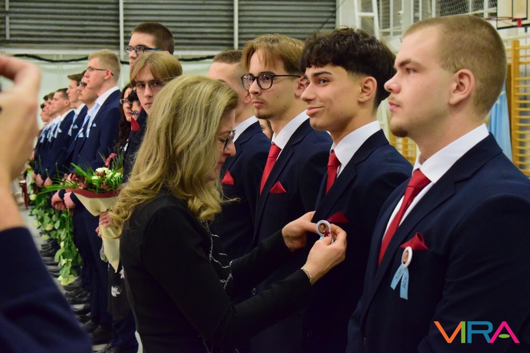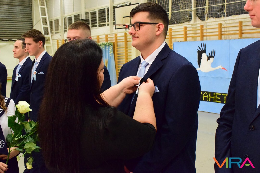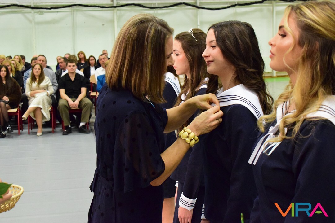 A különleges műsor után Pfeiffer-Dömök Krisztina iskolalelkész osztotta meg köszöntő gondolatait és mondott áldást a végzős diákokra. Ezt követően került sor a szalagtűzésre, melyen jelképesen a végzős diákok osztályfőnökei tűzték fel a szalagot, illetve egy szál fehér rózsát is kaptak a tizenkettedik évfolyamos tanulók. Előbb a 12/C és 12/D osztály szalagtűzésére került sor, majd a 12/A osztályosok kapták meg a szalagot.