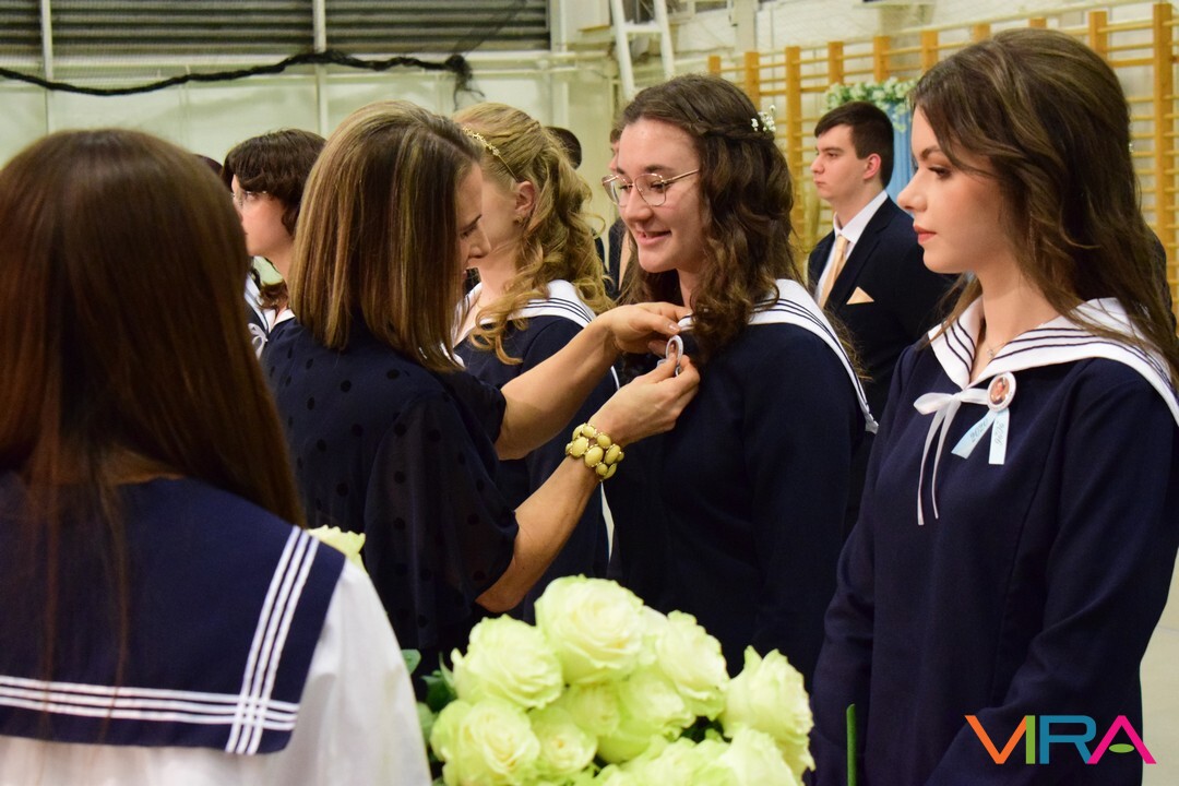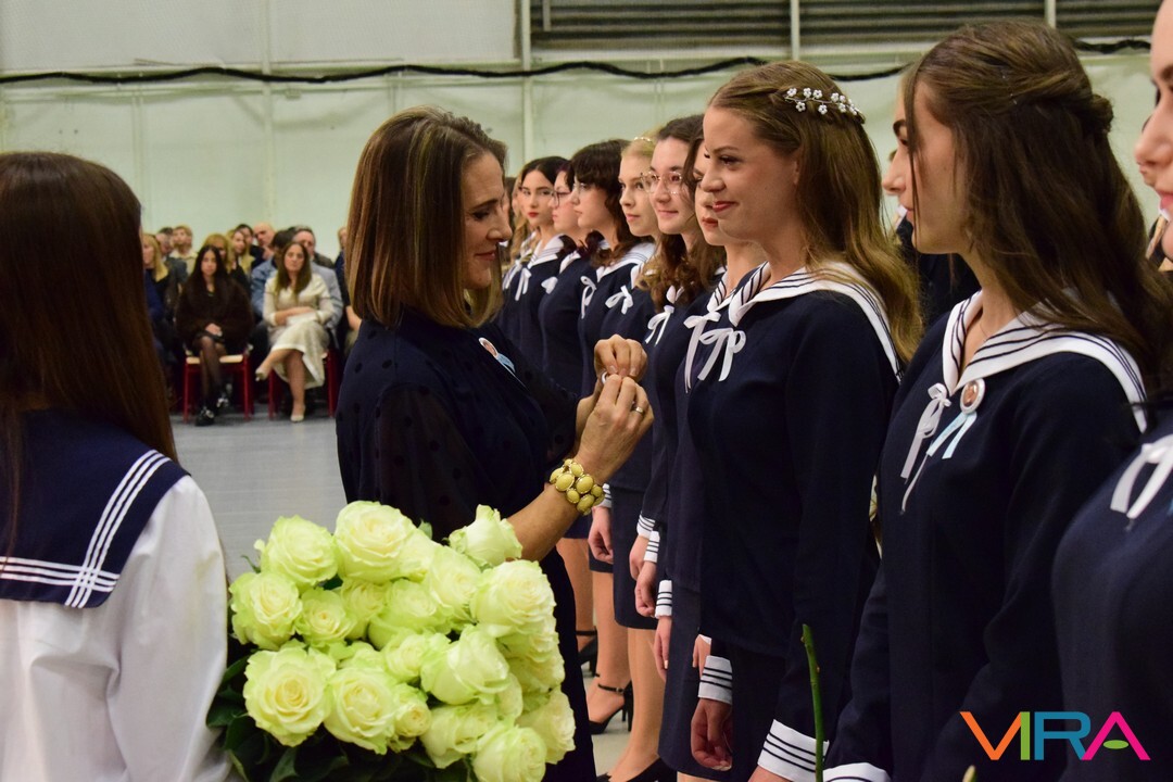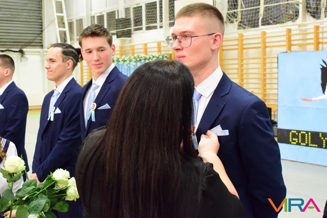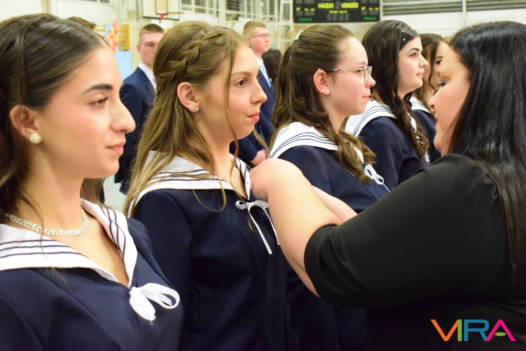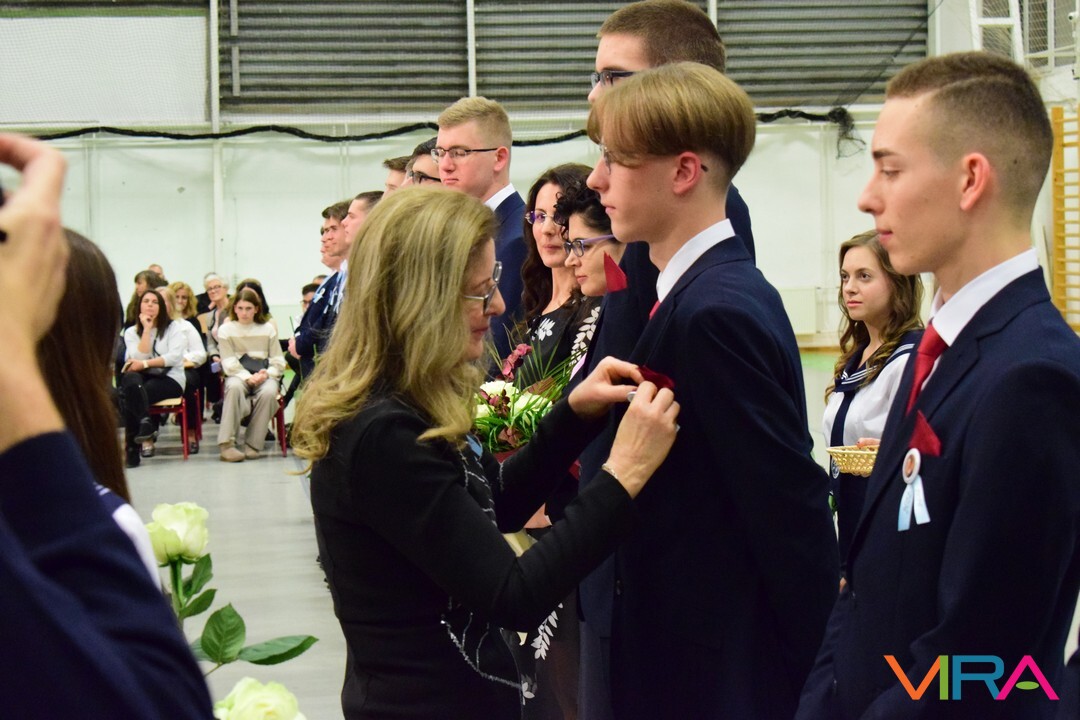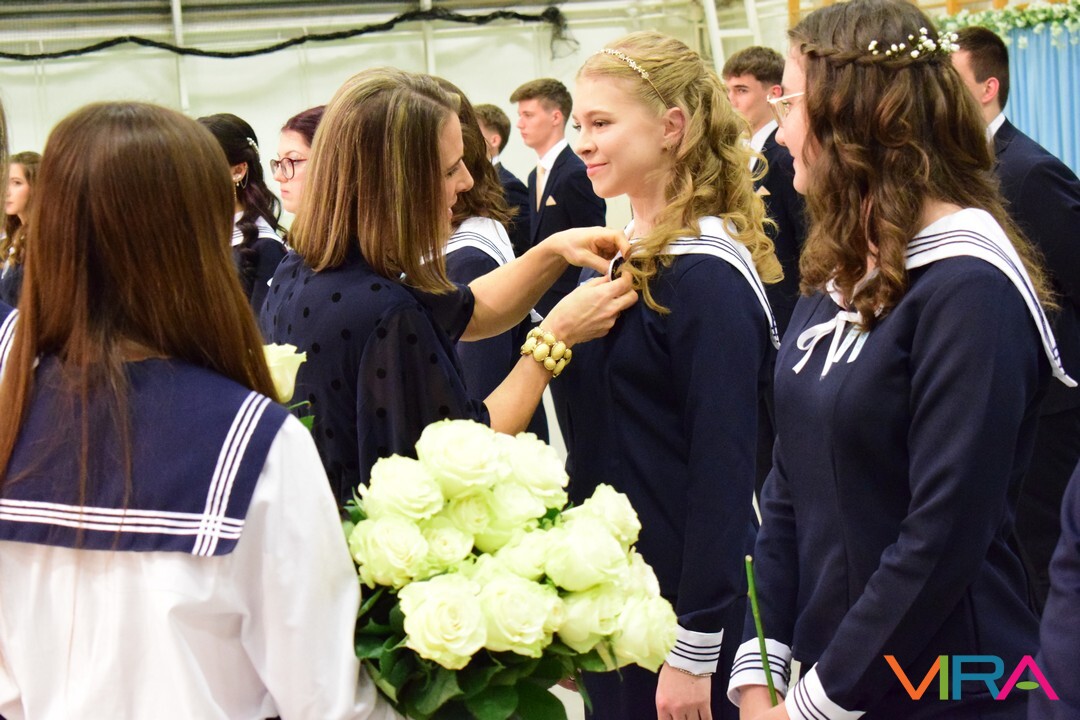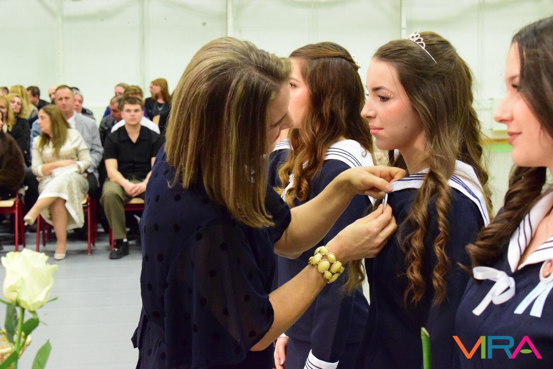 A különleges műsor után Pfeiffer-Dömök Krisztina iskolalelkész osztotta meg köszöntő gondolatait és mondott áldást a végzős diákokra. Ezt követően került sor a szalagtűzésre, melyen jelképesen a végzős diákok osztályfőnökei tűzték fel a szalagot, illetve egy szál fehér rózsát is kaptak a tizenkettedik évfolyamos tanulók. Előbb a 12/C és 12/D osztály szalagtűzésére került sor, majd a 12/A osztályosok kapták meg a szalagot.