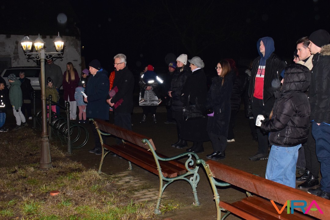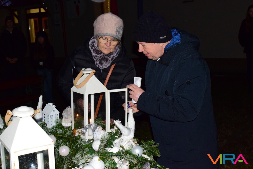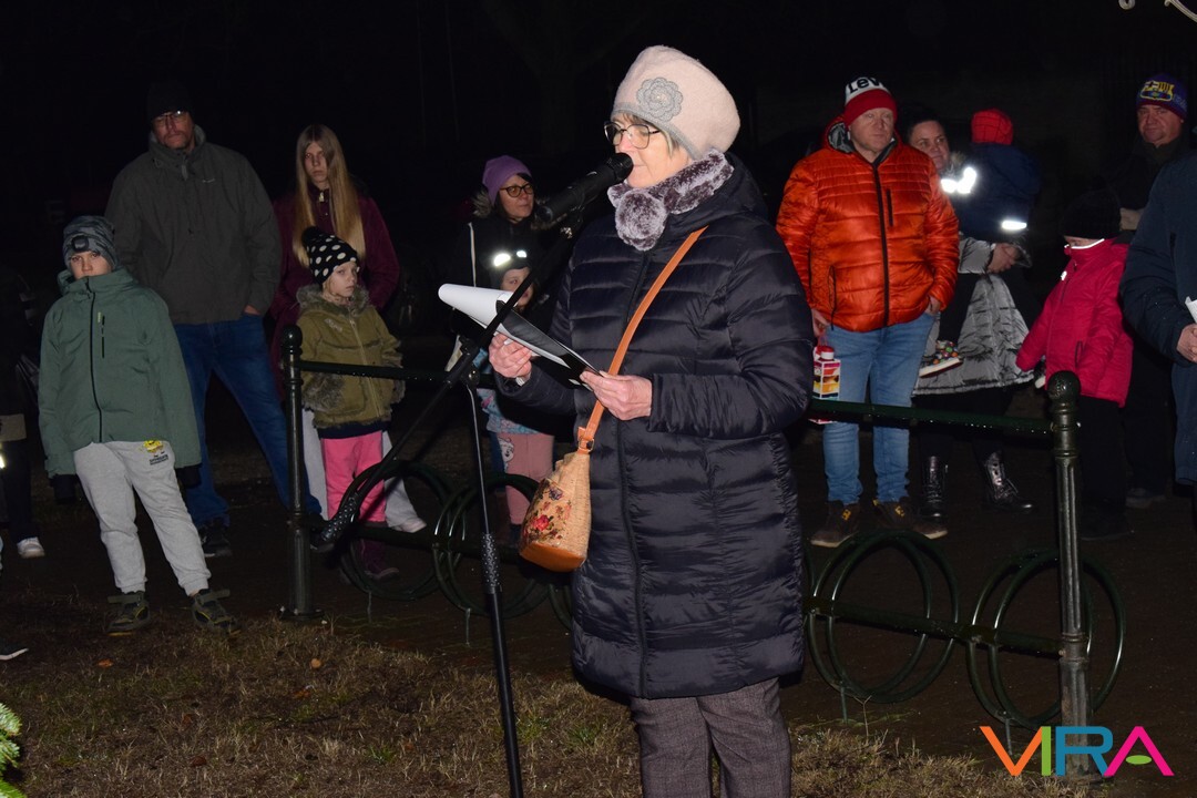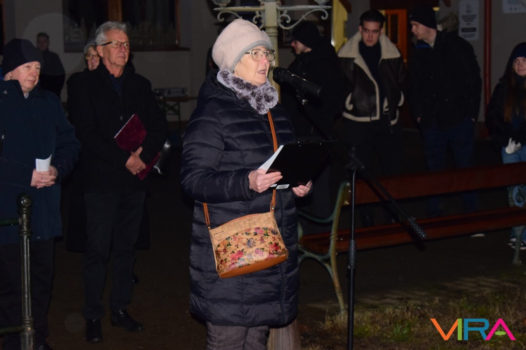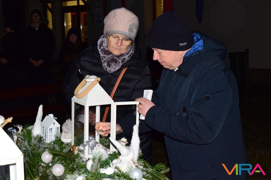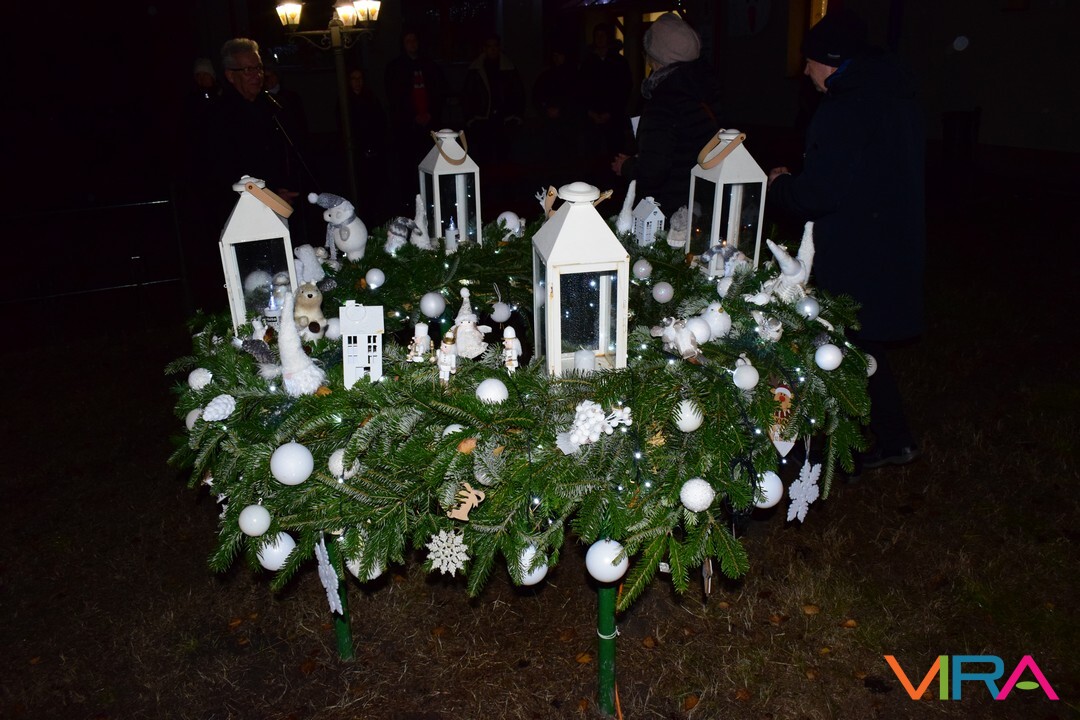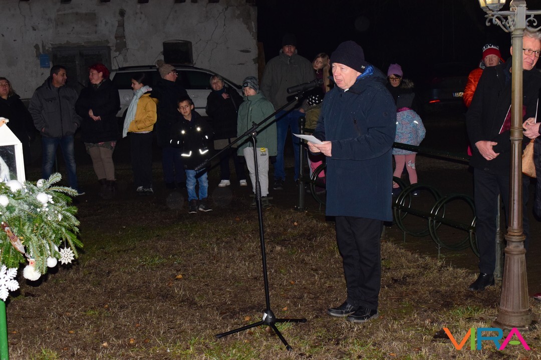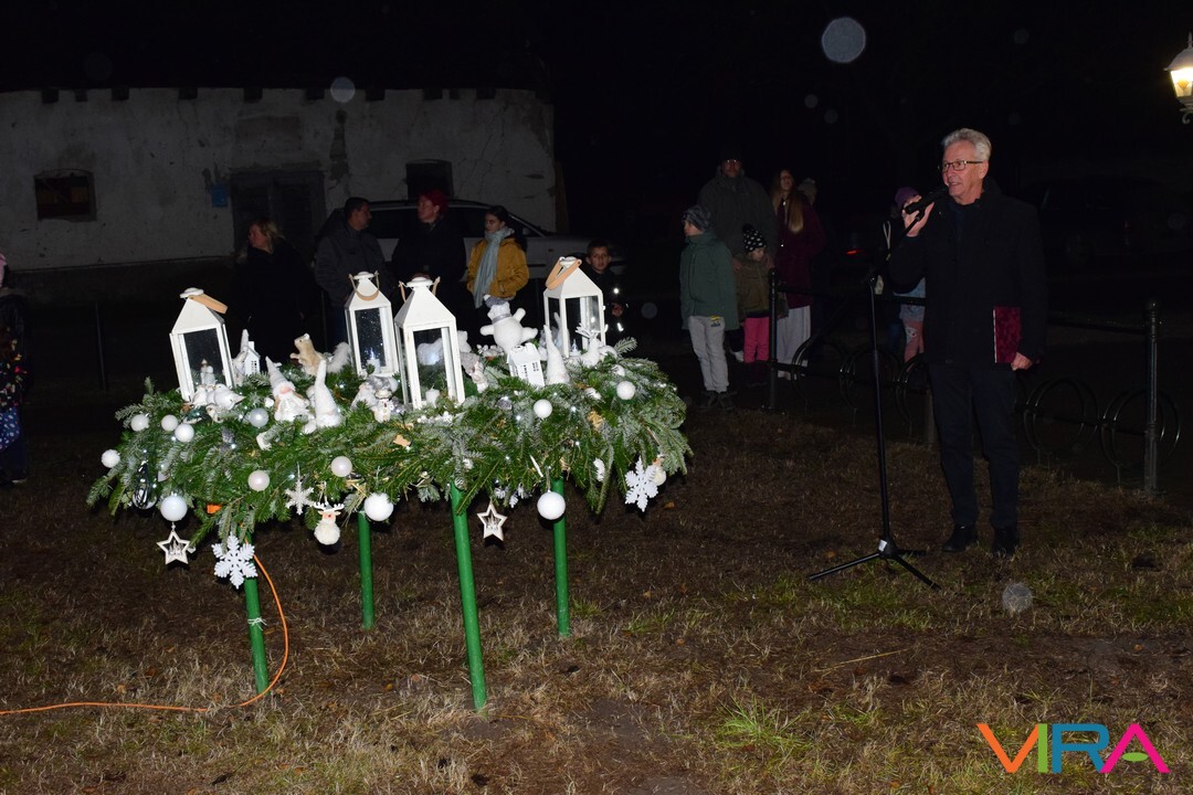 Ezt követően az emberek átvonultak a Közösségi Ház előtti térre, ahol a település alpolgármestere Hajnalné Szőke Marianna mondott köszöntő beszédet. Ezután Havris György katolikus plébános hirdetett igét és áldást mondott. Ezt követően gyújtották meg az adventi koszorún a harmadik gyertyát, mely az örömet szimbolizálja.
