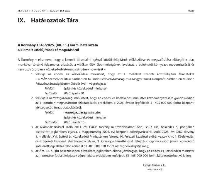 Forrás: Magyar Közlöny 2025. évi 152. szám