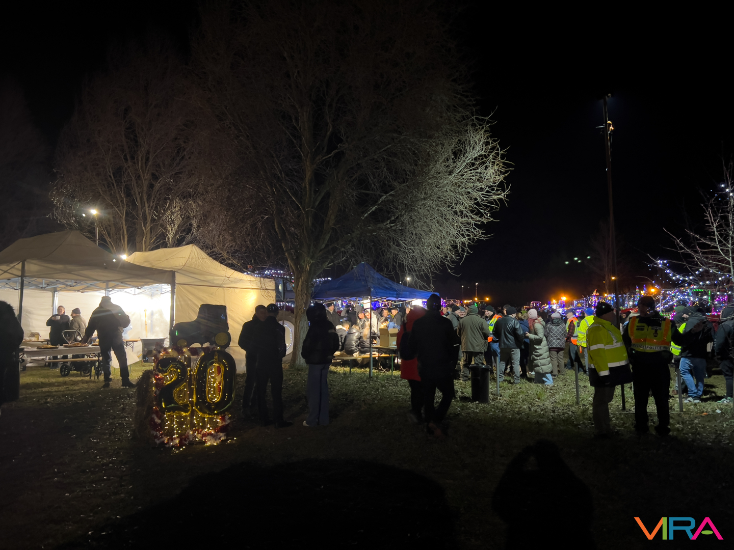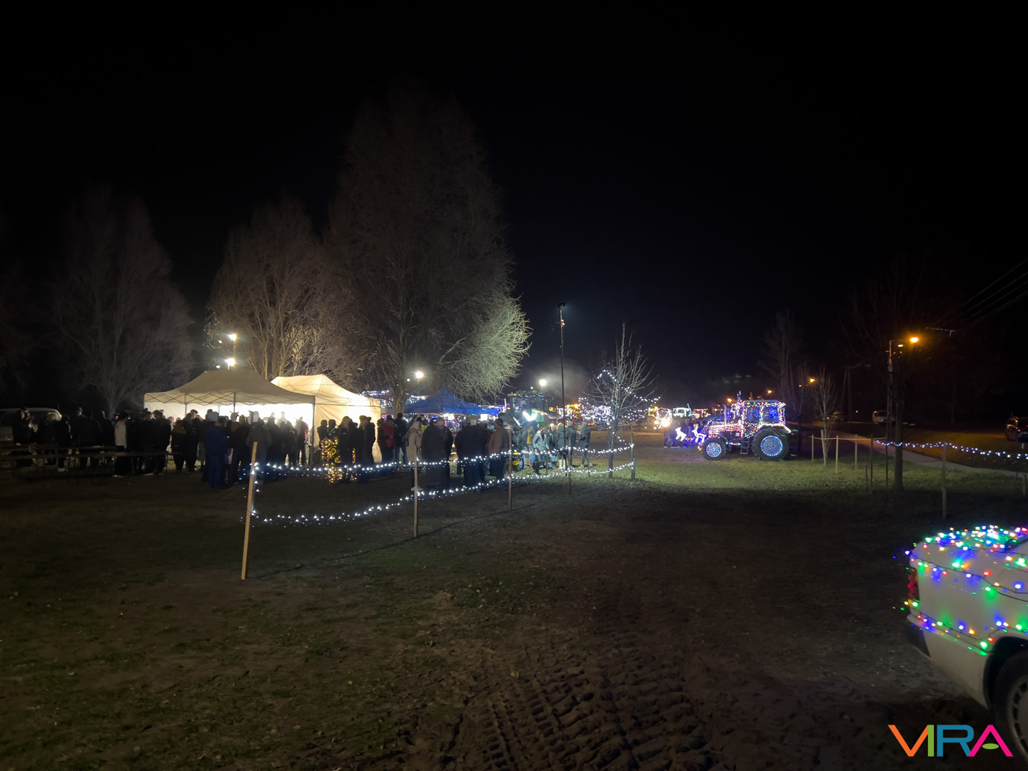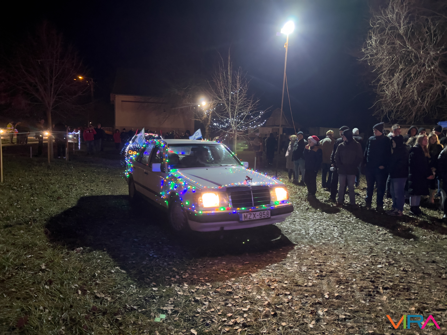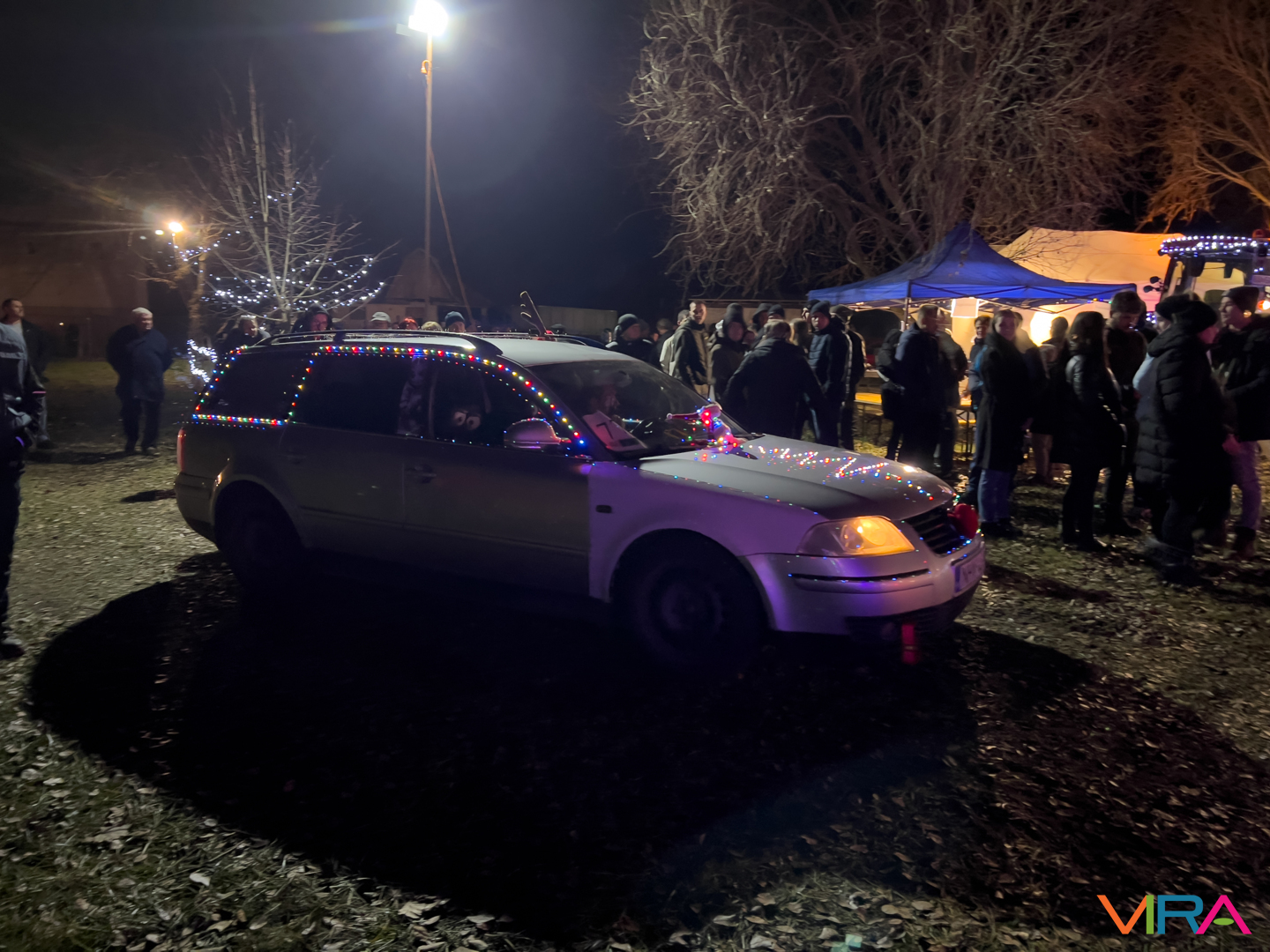 Amíg a járművek sorban érkeztek, a hangulatról vidám zene gondoskodott. A felvonulásra várakozók forralt borral, meleg teával és zsíros kenyérrel melegedhettek fel, ami tovább erősítette az esemény barátságos, családias jellegét. A rendezvénysátor mellett kapott helyet az Adventi Ablaknyitogató 20-as száma is, amely ünnepi fényével különleges légkört teremtett.