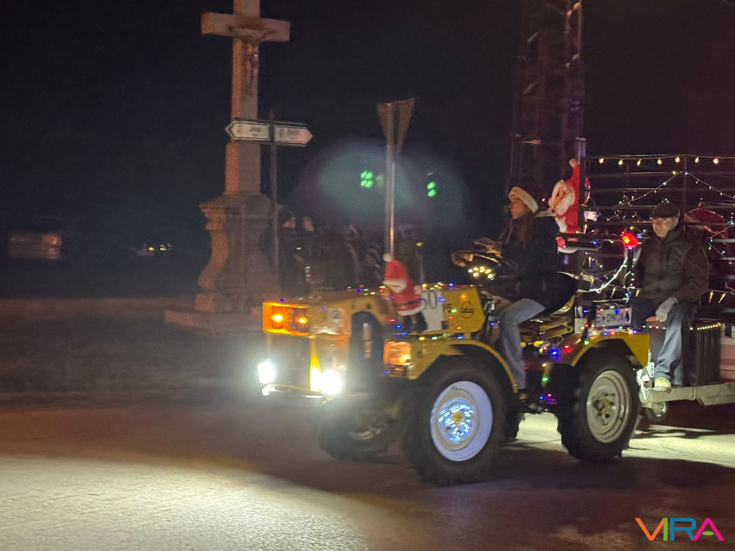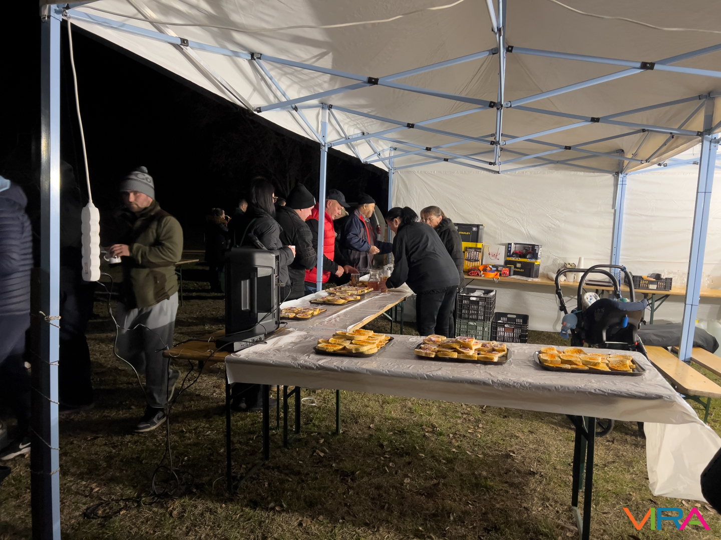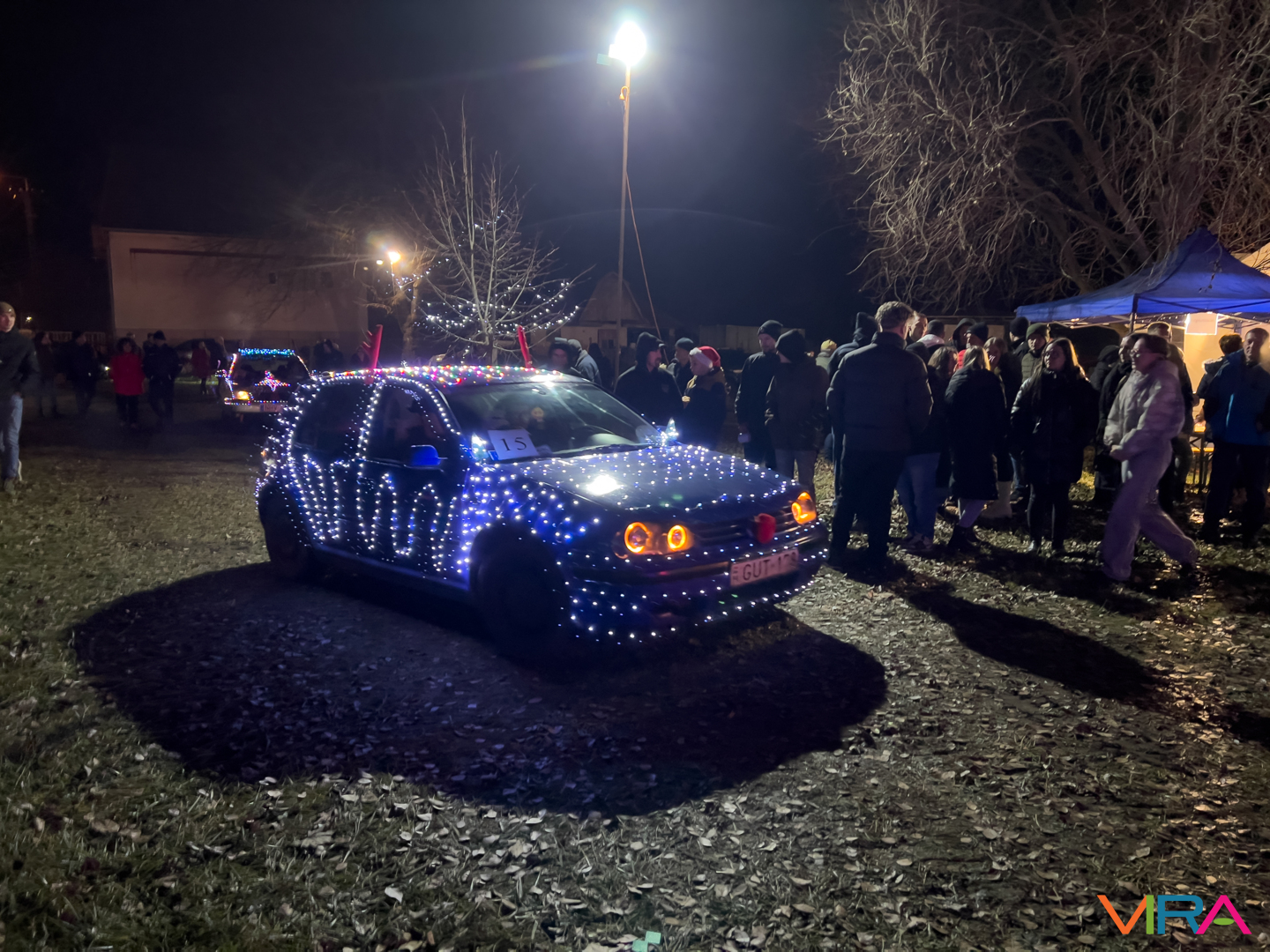 Amíg a járművek sorban érkeztek, a hangulatról vidám zene gondoskodott. A felvonulásra várakozók forralt borral, meleg teával és zsíros kenyérrel melegedhettek fel, ami tovább erősítette az esemény barátságos, családias jellegét. A rendezvénysátor mellett kapott helyet az Adventi Ablaknyitogató 20-as száma is, amely ünnepi fényével különleges légkört teremtett.
