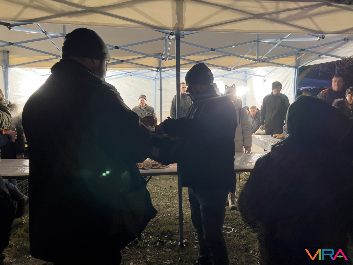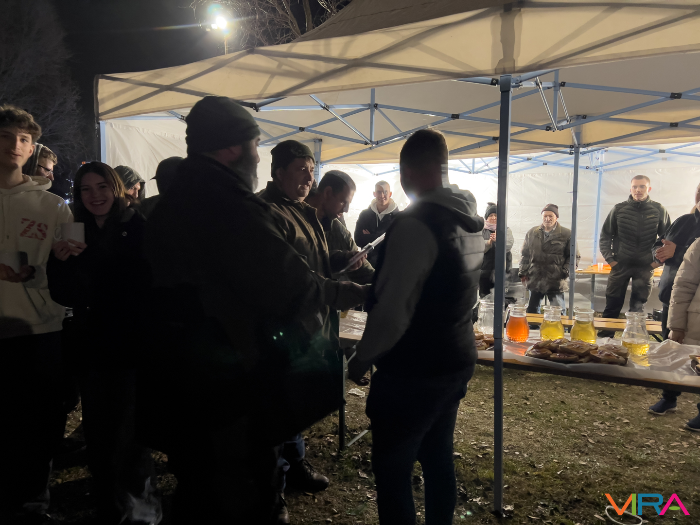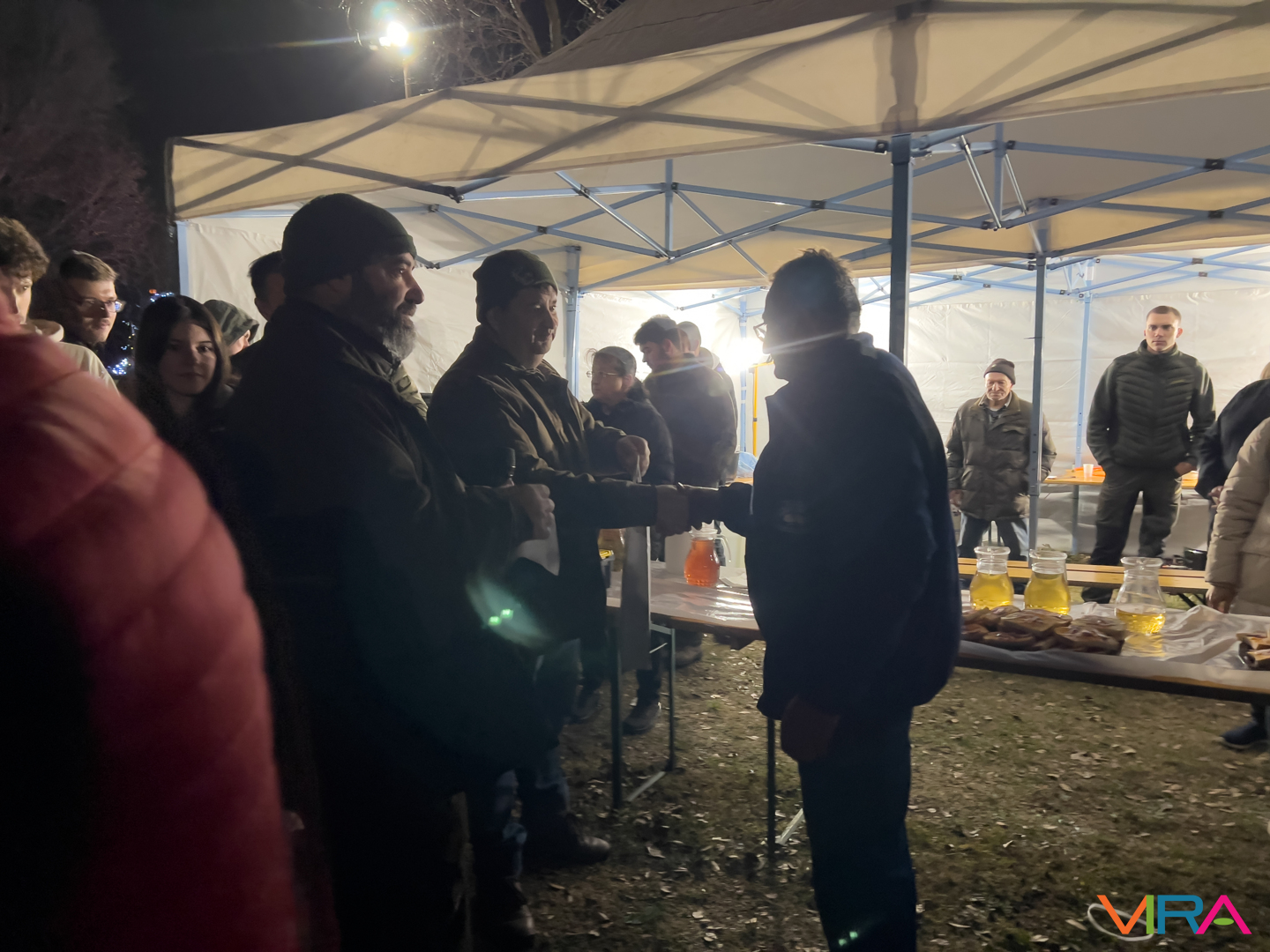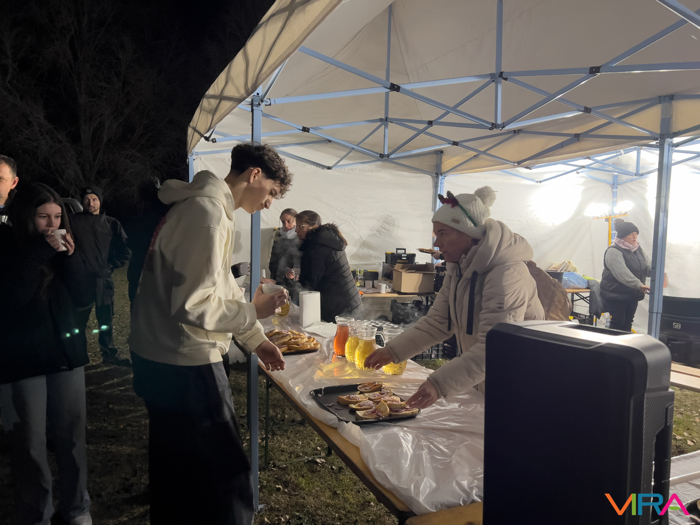 Amíg a járművek sorban érkeztek, a hangulatról vidám zene gondoskodott. A felvonulásra várakozók forralt borral, meleg teával és zsíros kenyérrel melegedhettek fel, ami tovább erősítette az esemény barátságos, családias jellegét. A rendezvénysátor mellett kapott helyet az Adventi Ablaknyitogató 20-as száma is, amely ünnepi fényével különleges légkört teremtett.