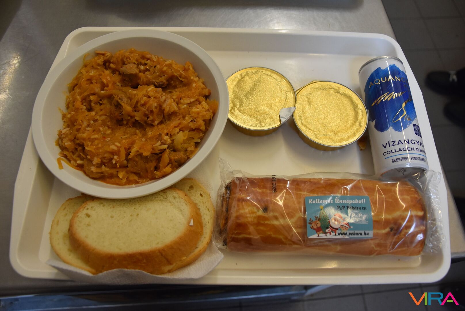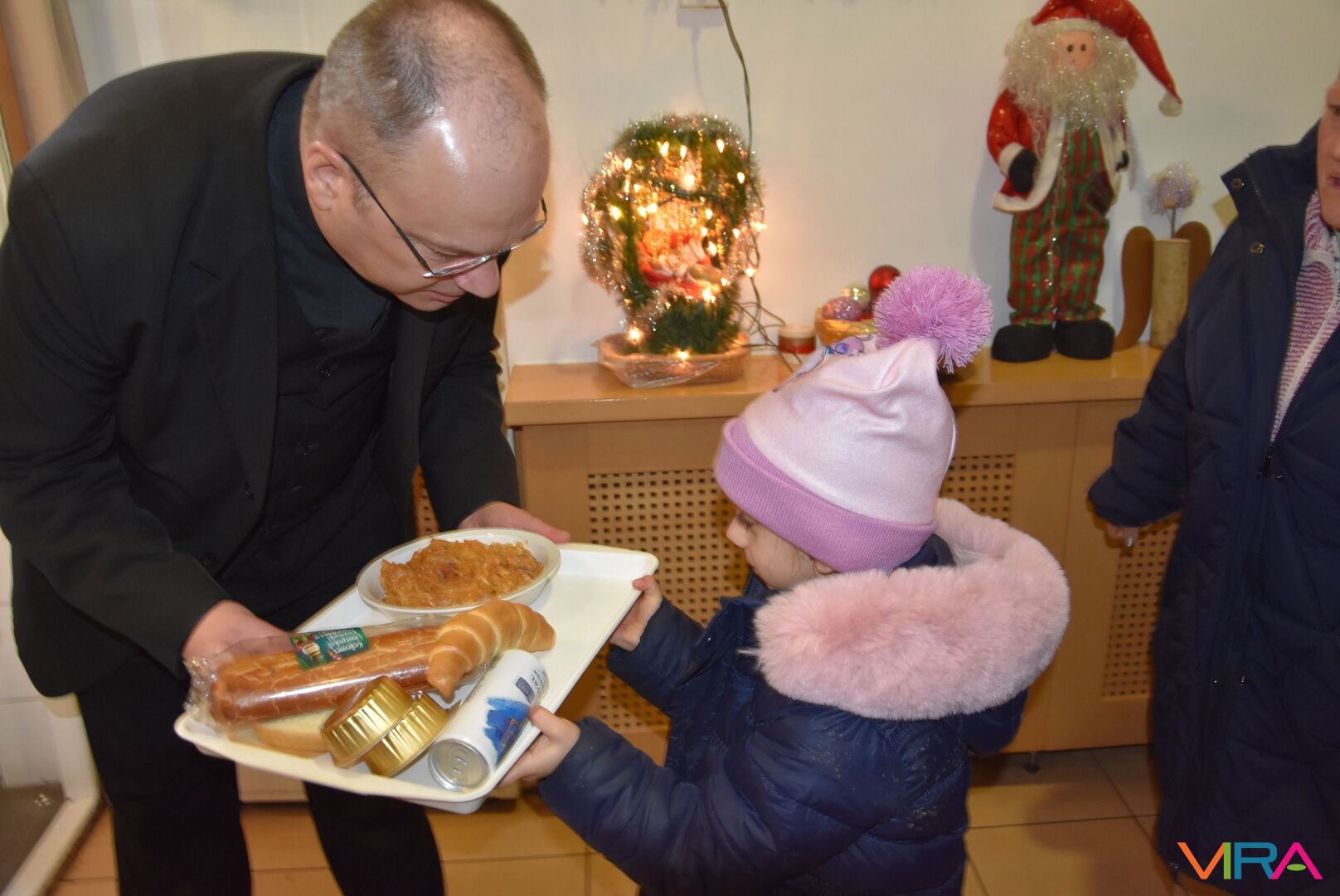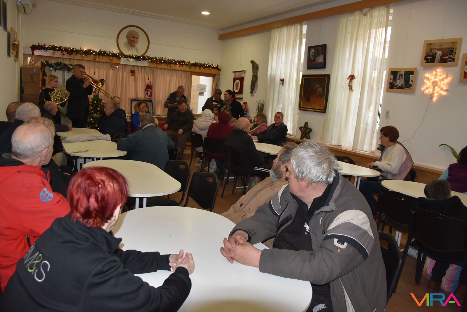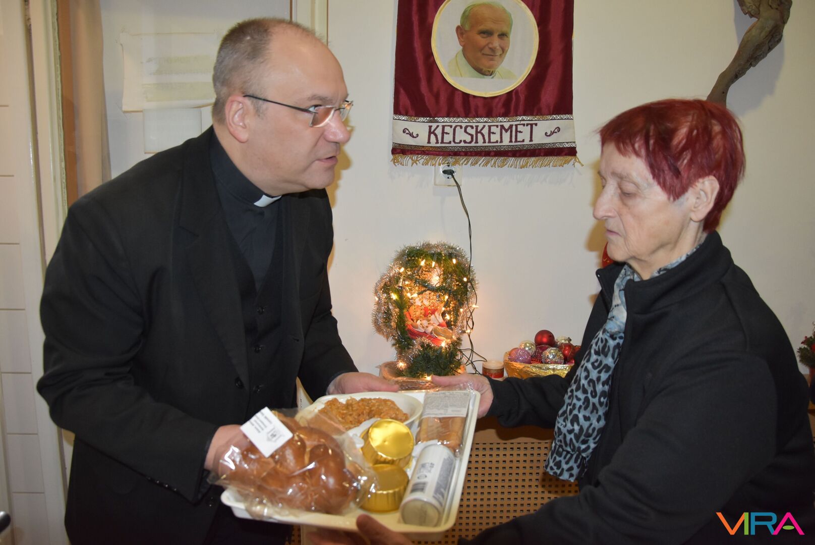 Kuna Lajos és ifjú zenésztársa második hangszeres szolgálatát követően kezdetét vette az ünnepi jótékonysági ebédosztás. A Szentcsalád Plébánia és Fekete Szabolcs atya felajánlásából székelykáposzta került a tányérokra, melyet a karitatív létesítmény önkéntesei szolgáltak fel, Szabolcs atya segítő közreműködésével.