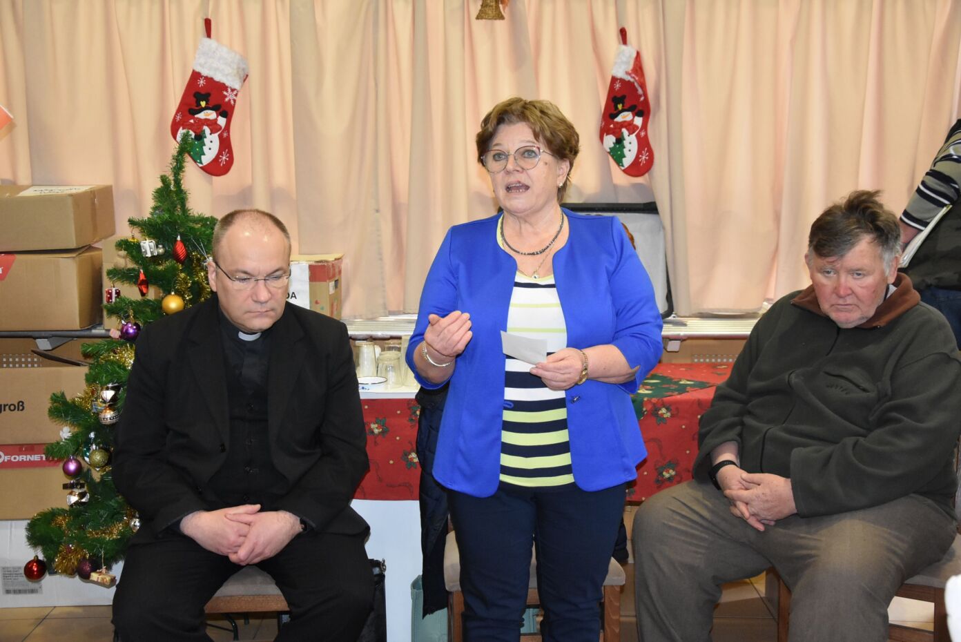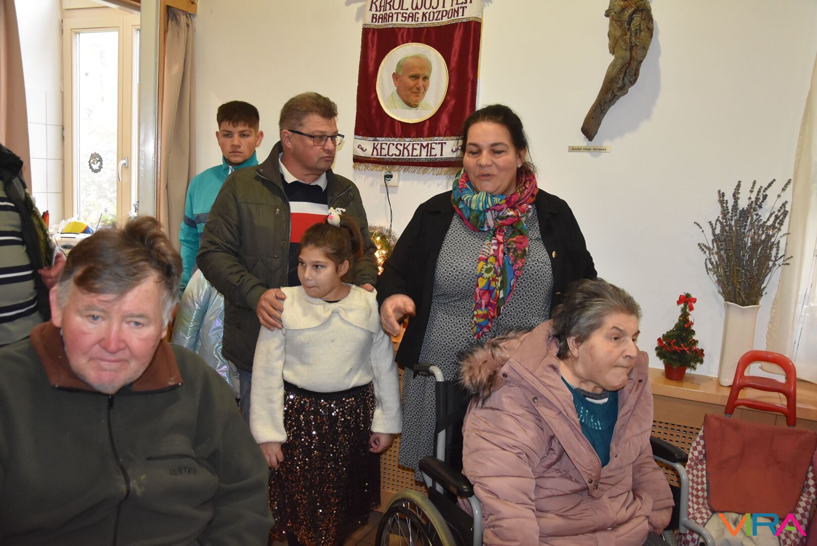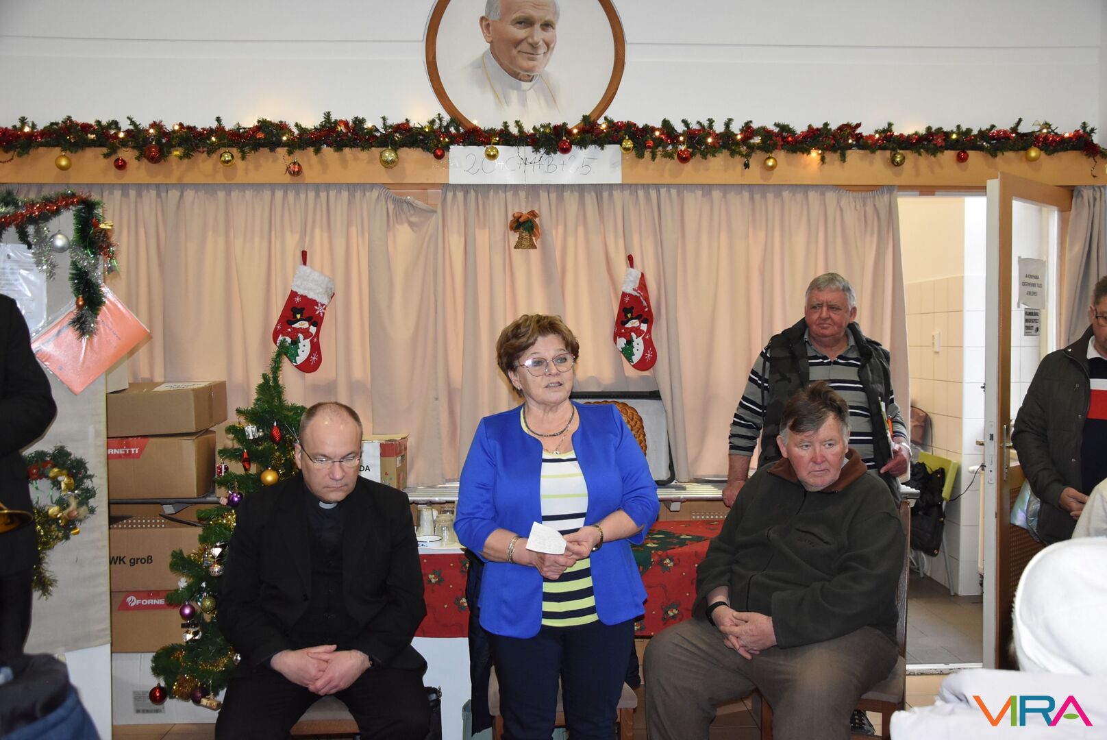 Az ünnepi alkalmon Lévai Jánosné tanácsnok, önkormányzati képviselő asszony is tiszteletét tette. Köszöntőjében elsősorban azokra irányította a figyelmet, akik az év legmeghittebb ünnepét egyedül élik meg. A Teremtés könyvéből idézve emlékeztetett: „Nem jó az embernek egyedül lenni…”. Szavai szerint: aki egyedül él, nem szükségszerűen magányos, hiszen a Wojtyla Ház közösségében bárki otthonra találhat. Egy őszinte, jóindulatú mosoly pedig – hangsúlyozta – semmibe sem kerül, mégis gazdagítja azt, aki adja, és azt is, aki kapja.
