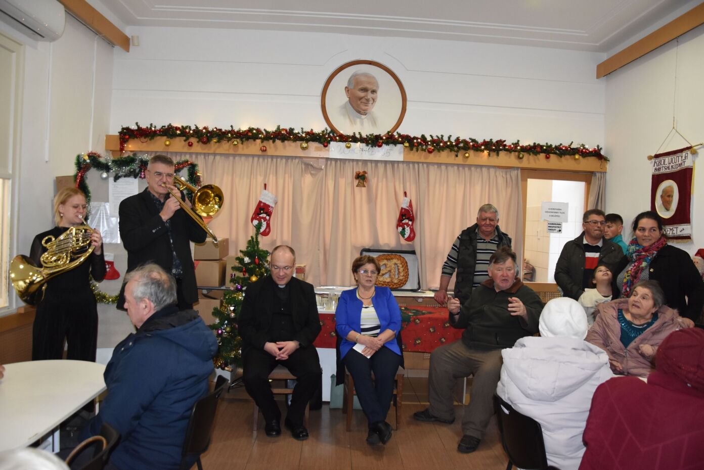 A nyitó napon – december 24-én – első mozzanatként Kuna Lajos zenetanár, mesterpedagógus és egyik kedves tanítványa, Bugya Kamilla karácsonyi dallamokat szólaltatott meg trombitán, majd Farkas Pál, a Wojtyla Barátság Központ programszervező munkatársa köszöntötte a vendégeket, valamint az ebédosztáson jelentős számban megjelent nélkülözőket.