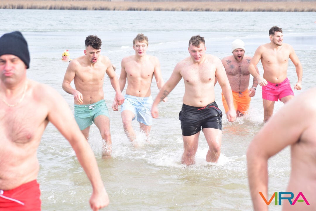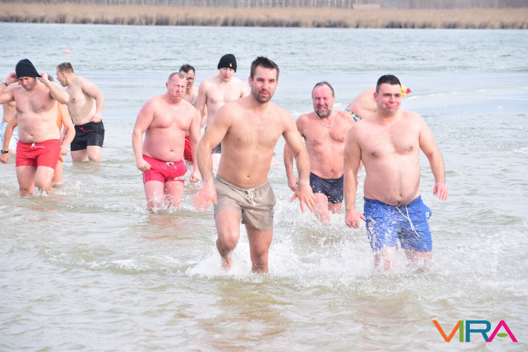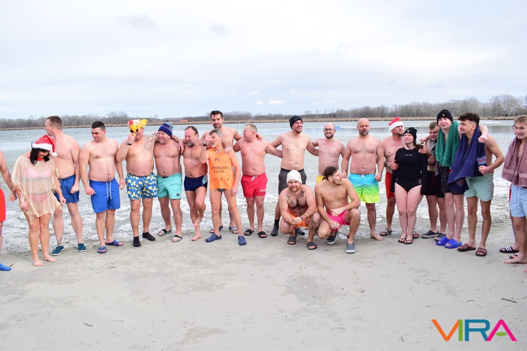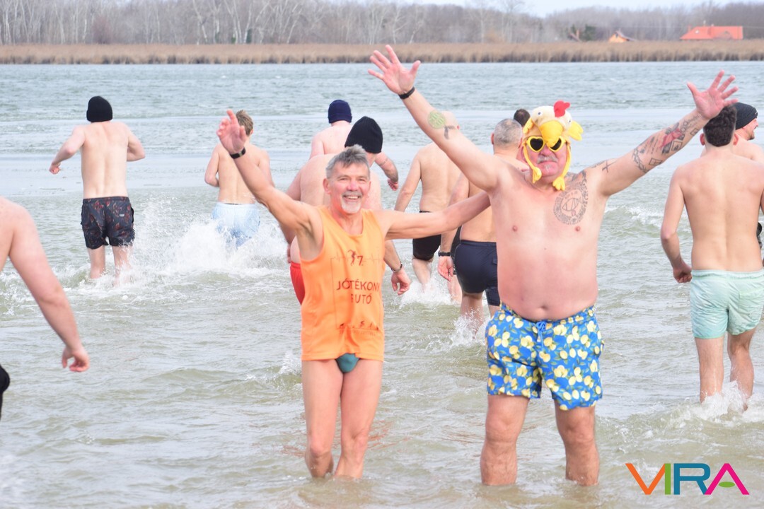 Futás után, 11 órát követően pedig a nap fénypontja következett, ugyanis sokan választották azt, hogy egy csobbanással a Vadkerti-tóban búcsúztatják az évet.