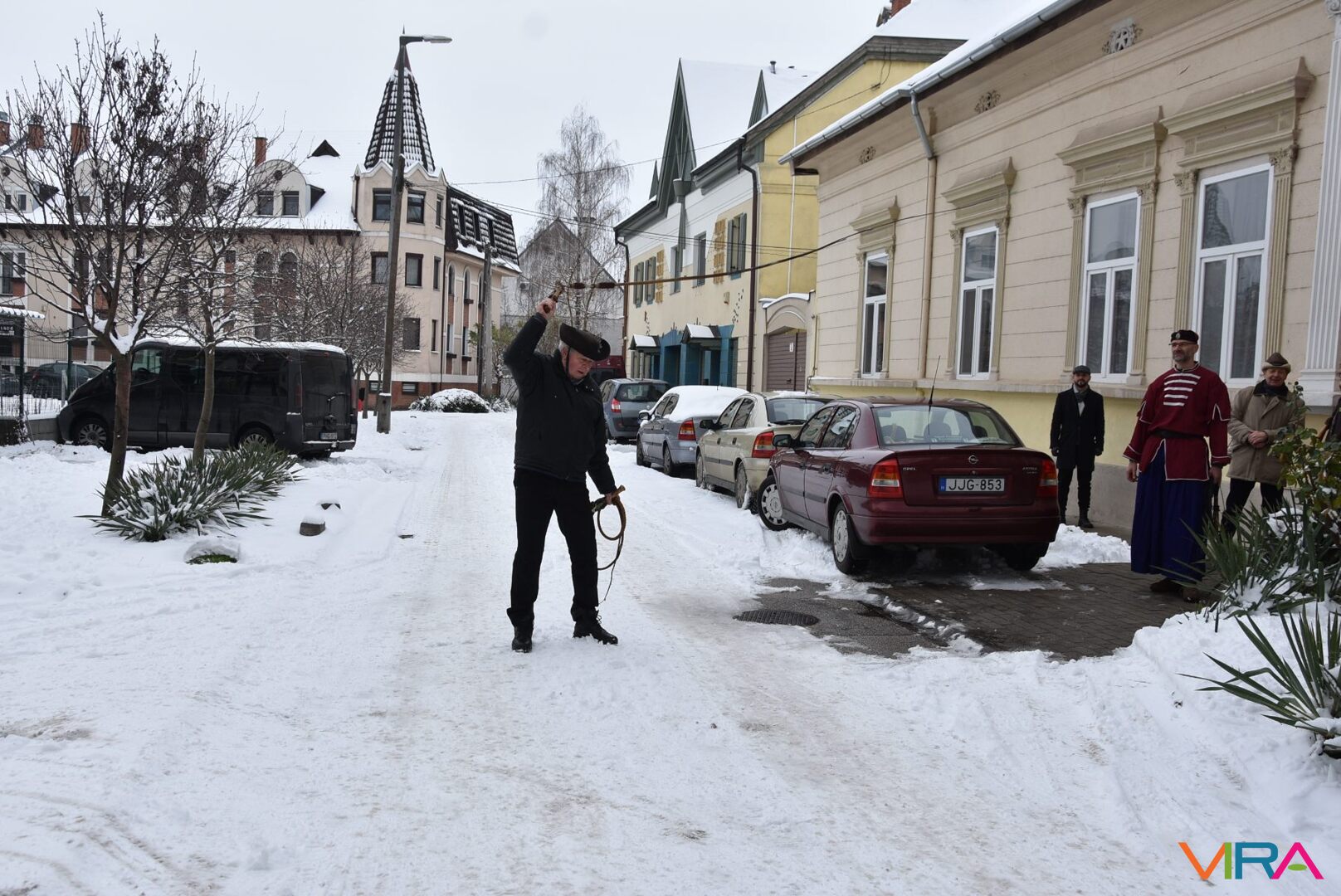 A köszöntők után egy ősi népi hagyomány kapott főszerepet. Csernus Lajos, a Hírös Rovókör alapítója – Kocsis János, Kovács Sándor és Csupor János társaságában – a tülkölés és az ostorcsattogtatás lényegi jelentését idézte fel. Szavai szerint a fény újjászületése utáni egyre zordabb téli időszak hajdanán cselekvésre ösztönözte az embereket: mozgásra, éberségre. A szürkemarha tülke és a karikás ostor nem puszta eszközök voltak, hanem serkentő jelek, melyek arra ösztönöztek, hogy hideg időben se gémberedjen meg a test és lélek. E gondolatok jegyében zendült fel a tülök hangja, majd pattant az ostor – a népi nyelv találó szavával: megkezdődött a csergetés.