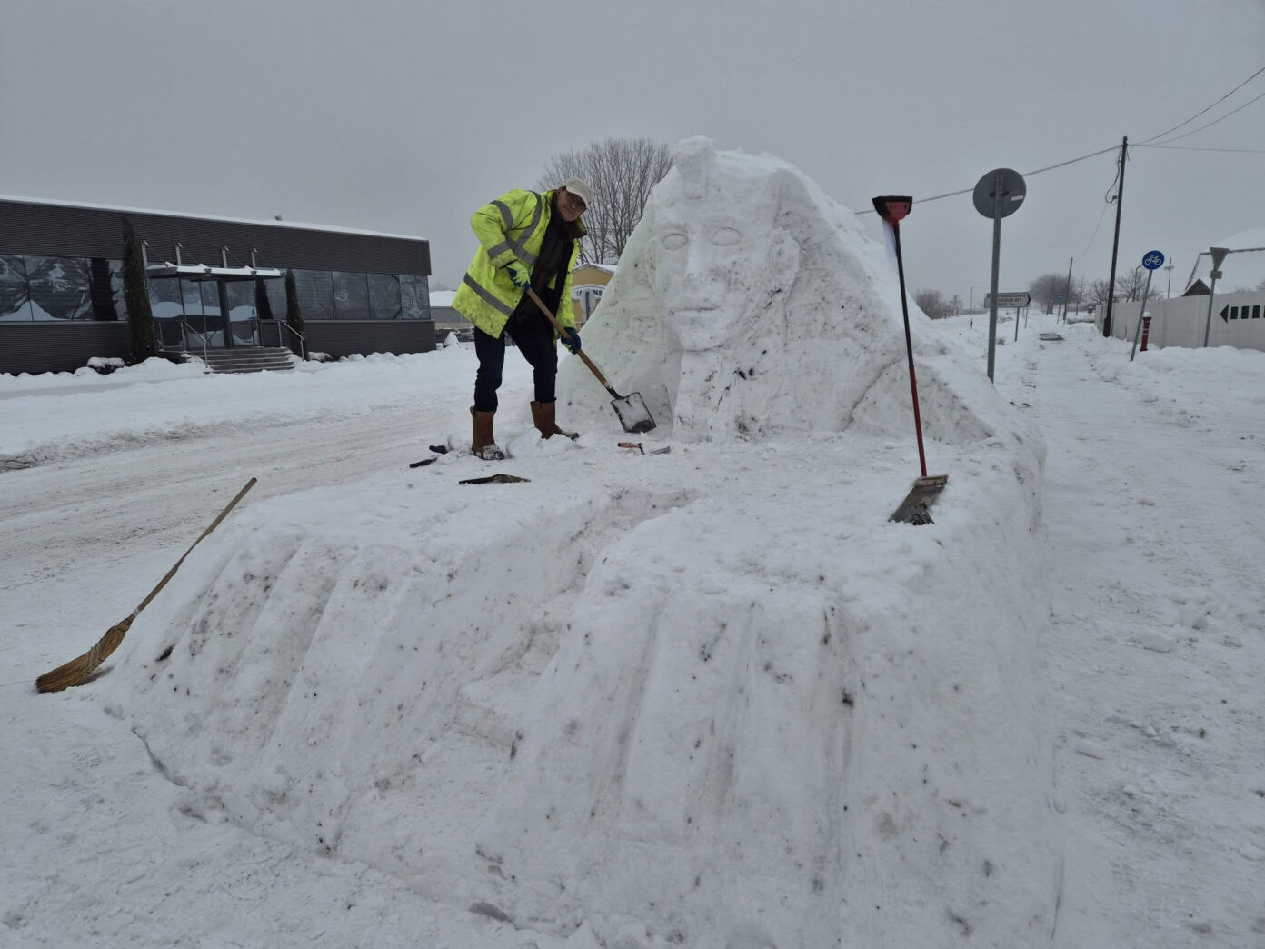 A projekt korántsem volt kicsi: a szfinx elkészítéséhez közel 80 köbméter hóra és mintegy 60 munkaórára volt szükség. A kőfaragásban jártas szakemberek számára a hó ugyan szokatlan alapanyag, a végeredmény azonban magáért beszél: az ókori Egyiptom ikonikus őrzője részletgazdagon, tekintélyt parancsoló méretben kelt életre Soltvadkerten.