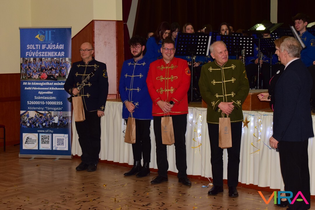 A hagyományoknak megfelelően a koncert előtt a település polgármestere Suhajda Antal köszöntötte a jelenlévőket. Beszédében elmondta, hogy nagyon jó kapcsolatot ápol Akasztó, Solt városával. Nemcsak a pályázatok miatt, hanem a fúvósmuzsika terén is, hiszen annak idején egy akasztói zenetanár, Fuchs Attila kezdte meg Solton is az oktatást, mely több mint húsz éve működik már a városban. Mivel Attila névnap volt január 7-én, így a polgármester külön is köszöntötte a karnagyot, aki még most is a zenekar rendelkezésére áll, ahogy tette azt az akasztói újévi koncerten is.