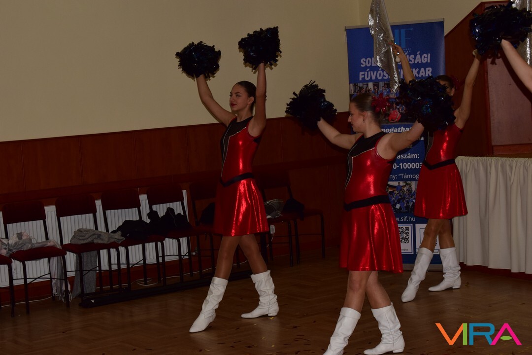 Itt mutatkozott be újra az akasztói közönségnek a Solti Mazsorett Egyesület Szivárvány csoportja. A Szántóné Lehoczki Luca és Kelemen Kata vezetésével működő egyesület már több díjat is bezsebelt az elmúlt évek során. Idén 25 éves a mazsorett oktatás Solton, ahol májusban Mazsorett verseny is megrendezésre kerül majd. A kezdő műsorszám alatt botos, pom-pomos és zászlós koreográfiákból összerakott egyveleget adtak elő.