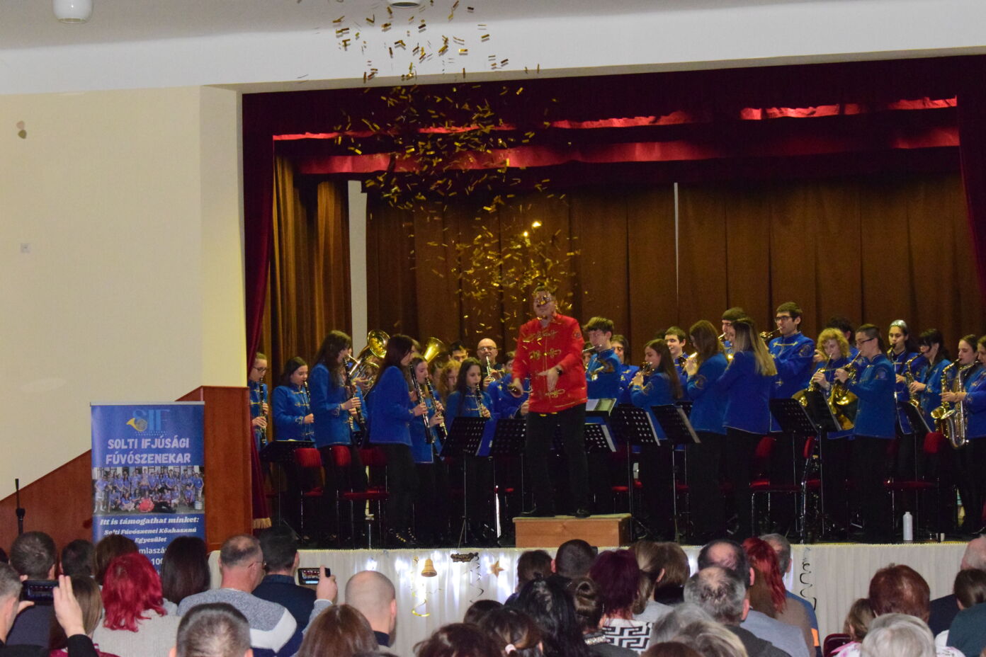 Ezt követően lépett a színpadra Solti Ifjúsági Fúvószenekar, akik most is ikonikus és lágyabb darabokkal készültek az akasztói közönségnek. Műsoruk első felében Johann Strauss műveiből hallhattak egy kis egyveleget, Nagy Máté karnagy vezetésével.