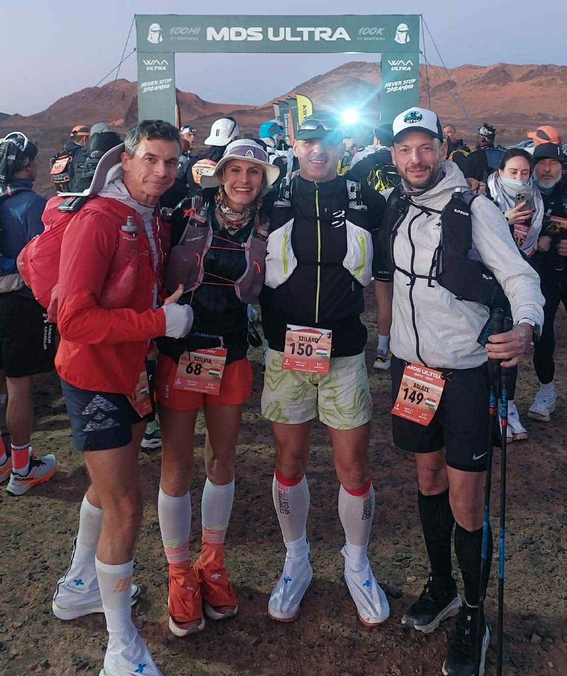Négyen voltunk kint magyarok. Lubics Szilvia és férje György, illetve Meretei Balázs és én. Szilvit a magyar futóknak nem kell bemutatni. Oszlopos tagja a magyar ultrafutó közösségnek. Neki már több sivatagi tapasztalata van, ami sivatag létezik a bolygón azt szerintem bejárta. Ő is érdekes tapasztalatokkal jött meg erről a 160 kilométerről, mivel eddig többnapos versenyeken volt. Mondta is, hogy teljesen más impulzus 160 kilométert egyben futni a sivatagban.