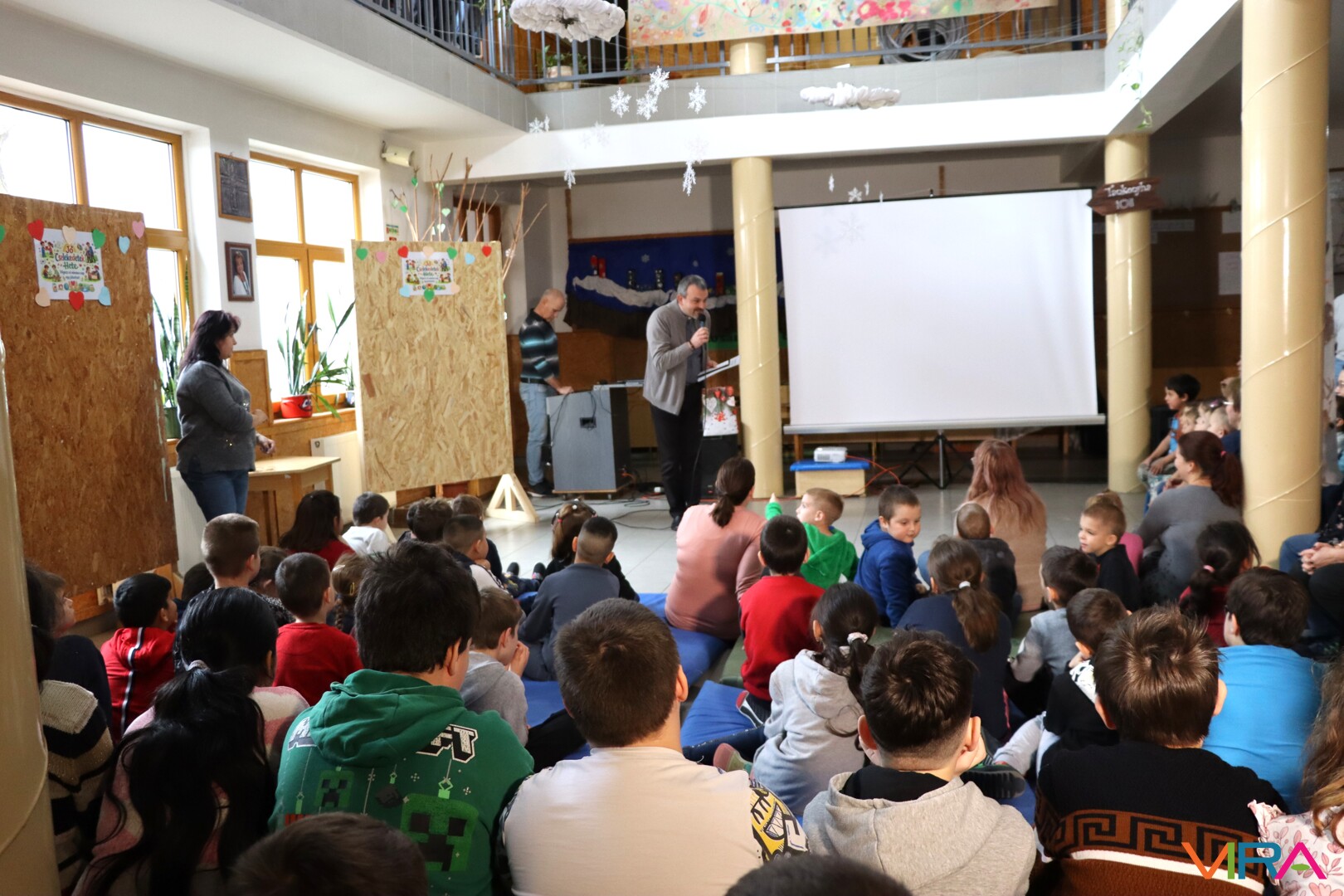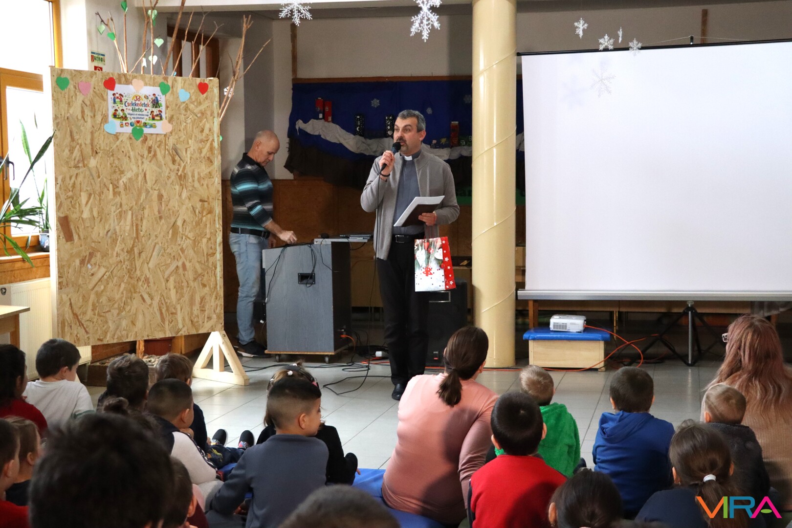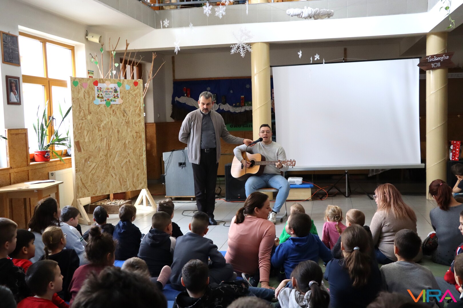 Ezt követően Seffer Attila atya köszöntötte a gyermekeket, majd egy játékos éneklés vette kezdetét Erdődi Imre, a plébánia munkatársának gitárkíséretével. A tanulók örömmel kapcsolódtak be a közös éneklésbe.