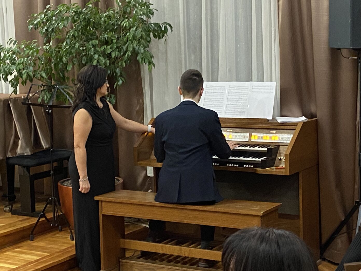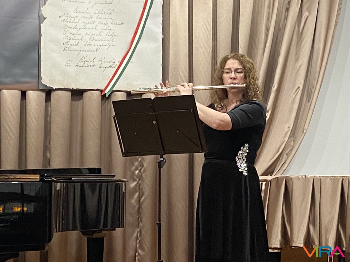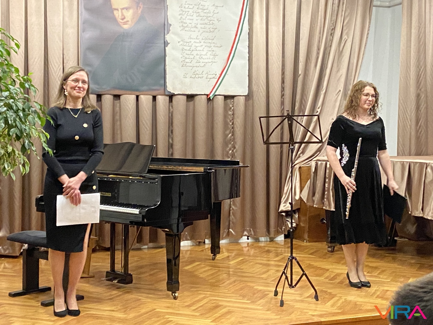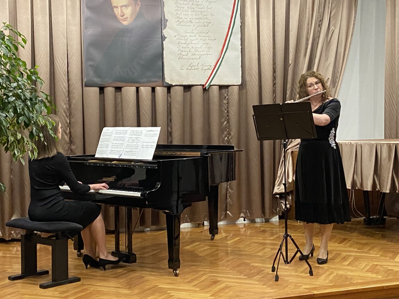 Ezután egy különleges hangszeres mű szólalt meg, az F-moll Passacaglia, amelyet fuvolára és zongorára írt a szerző. A darabot az iskola tanárai, Balázs-Nagy Gabriella és Szűcsné Hegedűs Orsolya előadásában hallhatta a közönség.