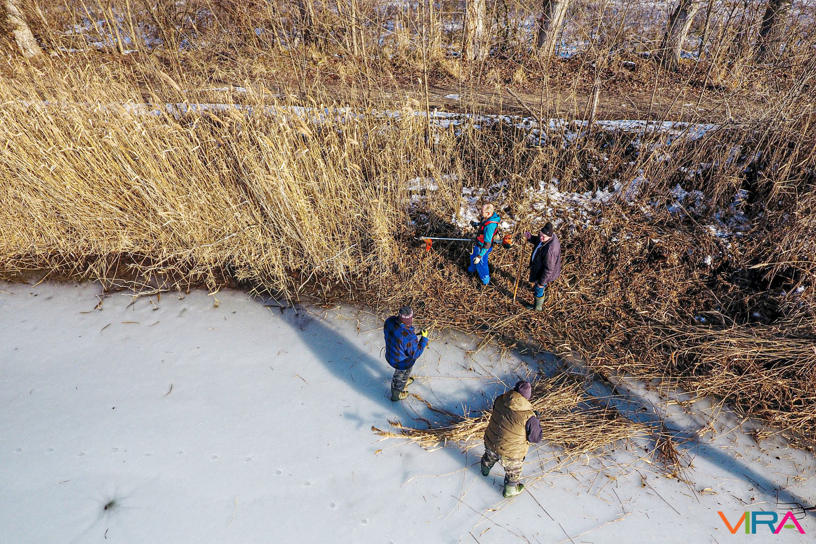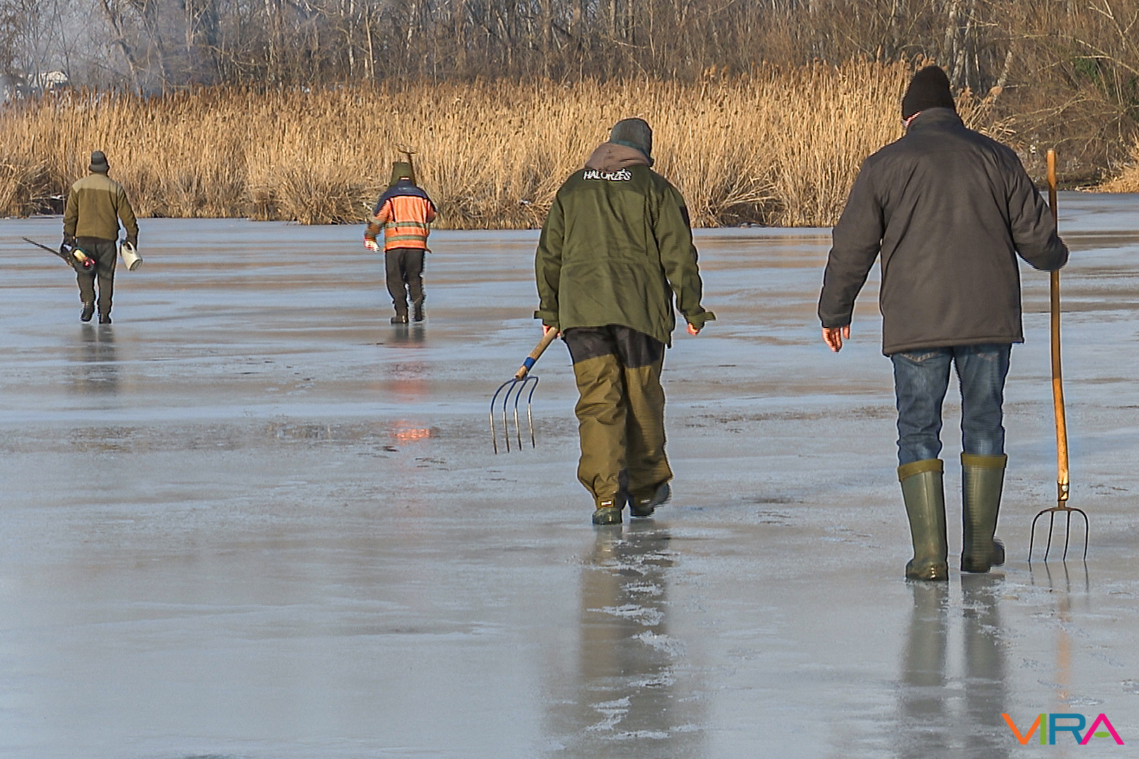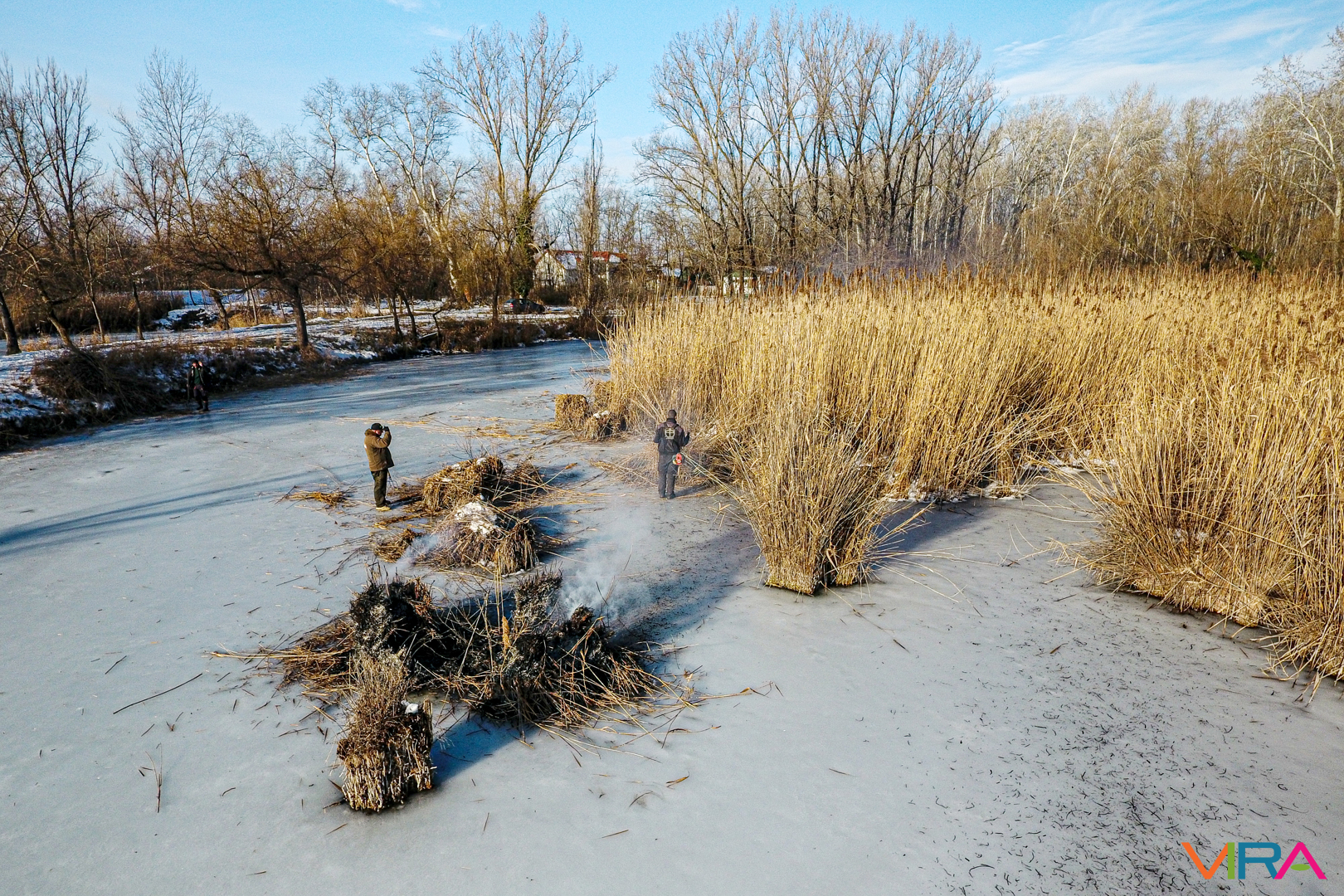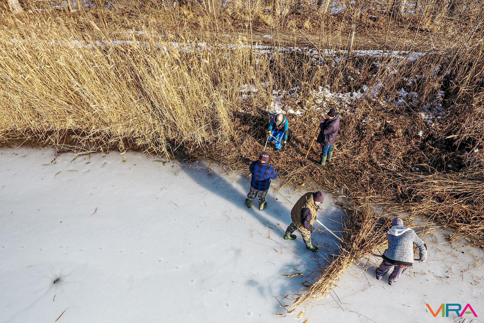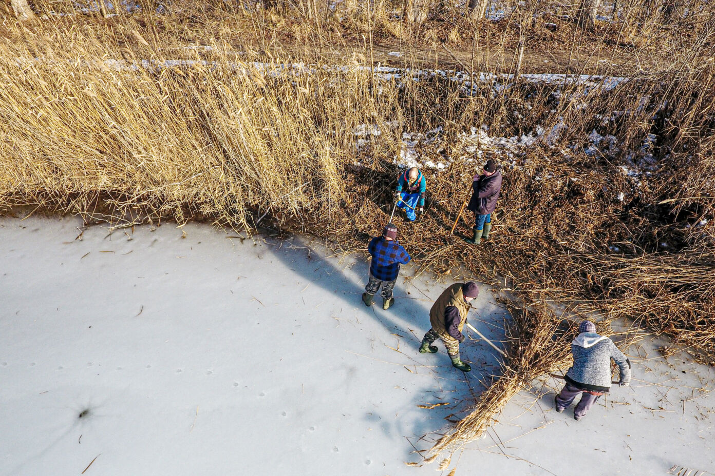 A munkálatokat különböző kézi eszközökkel hajtották végre, azonban a Vadkert Komszolg Kft. nádvágó gépe alatt sajnos beszakadt a jég, így az nem tudott nagymértékben hozzájárulni a nádvágáshoz.