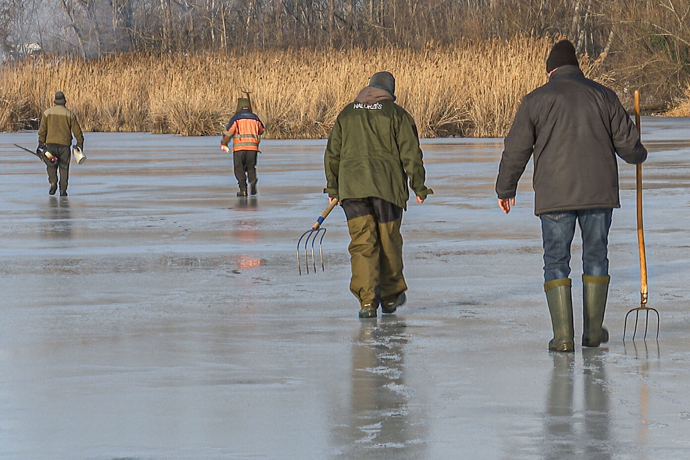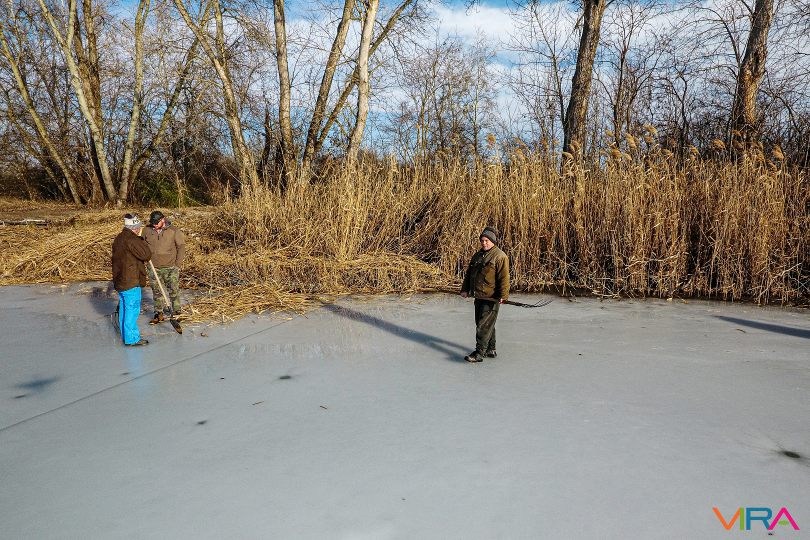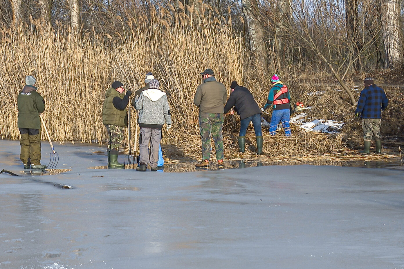 Idén a hideg időjárás kegyes volt a horgászokhoz és a befagyott annyira a tó vize, hogy január 24-re nádvágási munkálatokra várta a tagságot az egyesület. Az említett napon reggel 8 órakor gyülekezett a csapat a közösségi kiülőnél.