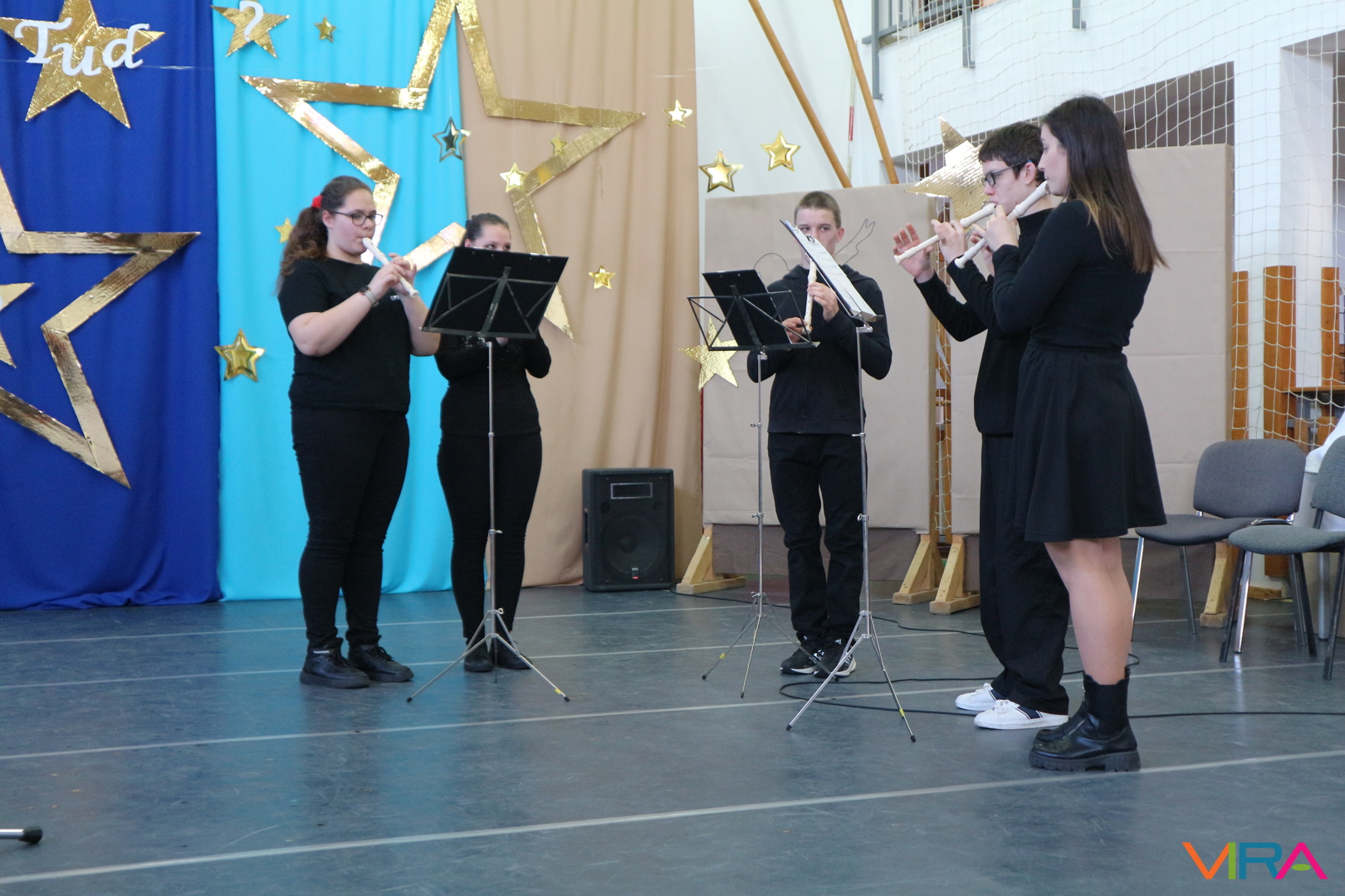 A színdarabok között szerepelt a „Buli a suliban”, „Az óriás kesztyű”, „A lap túloldalán” és a „Városi asszony és parasztasszony” vicces, szórakoztató előadása. A zenei produkciók között hallhattuk a Csilingelő Csillagok csoport előadását, furulyazenekart, zongoratanoncokat, tehetséges fiútriót és egyéni zenei produkciót is.