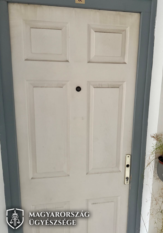 A csatolt fotón a megrongált bejárati ajtó látható.