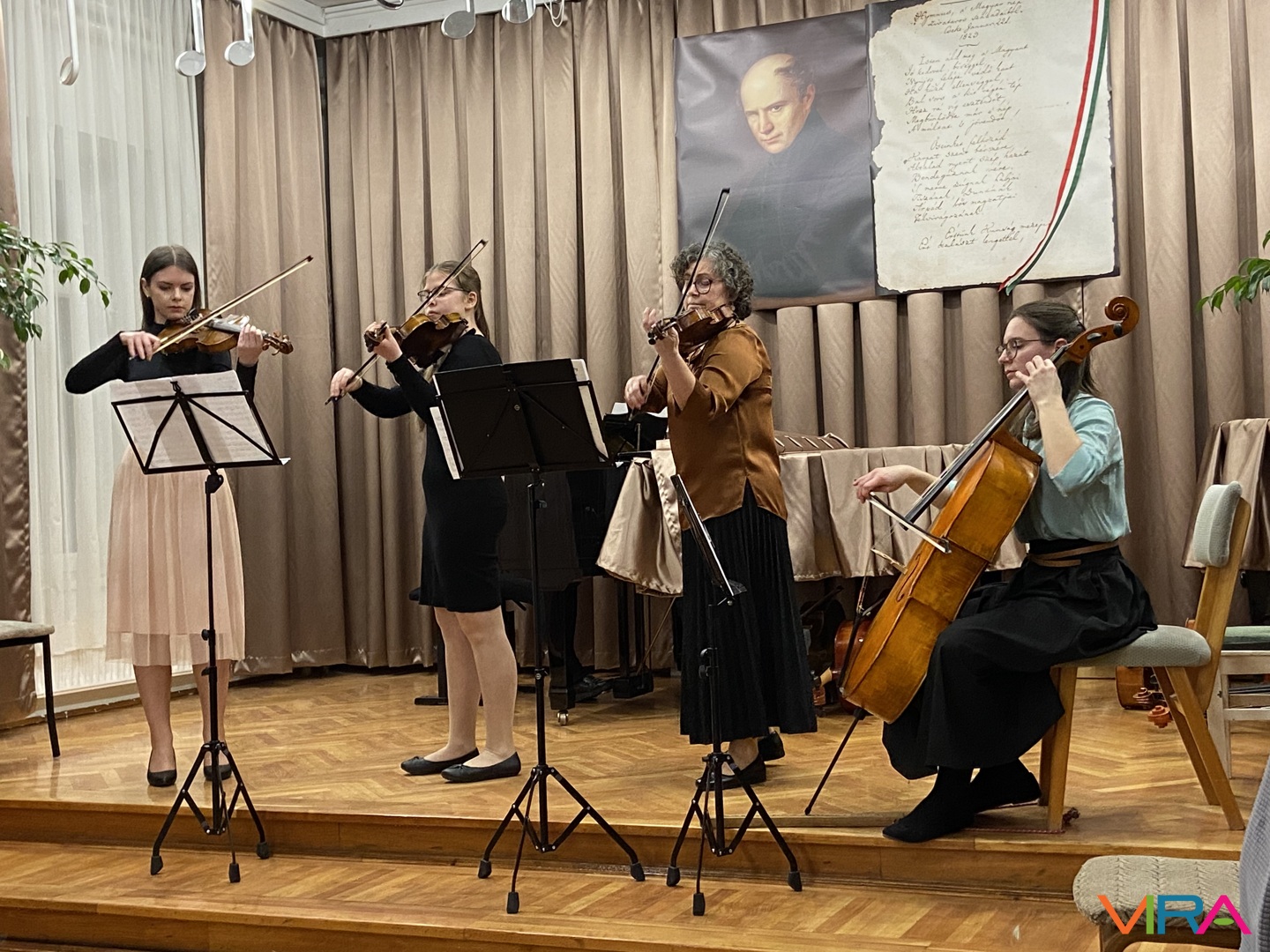 A cselló, a hegedű és a brácsa kapta a főszerepet a Kiskőrösi SZÓ-LA-M Alapfokú Művészeti Iskola vonós tanszakának hangversenyén, melyet 2026. február 5-én, csütörtök este rendeztek meg az intézményben. A koncert műsora a klasszikus zenétől a népdalokon és modern feldolgozásokon át egészen a karácsonyi dallamokig terjedt, a fellépők sora pedig a legfiatalabb növendékektől a felnőtt tanulókig ívelt. Az esemény ismét bebizonyította, hogy a zene tanulása és gyakorlása nem kor kérdése, hanem elszántság és kitartás dolga.