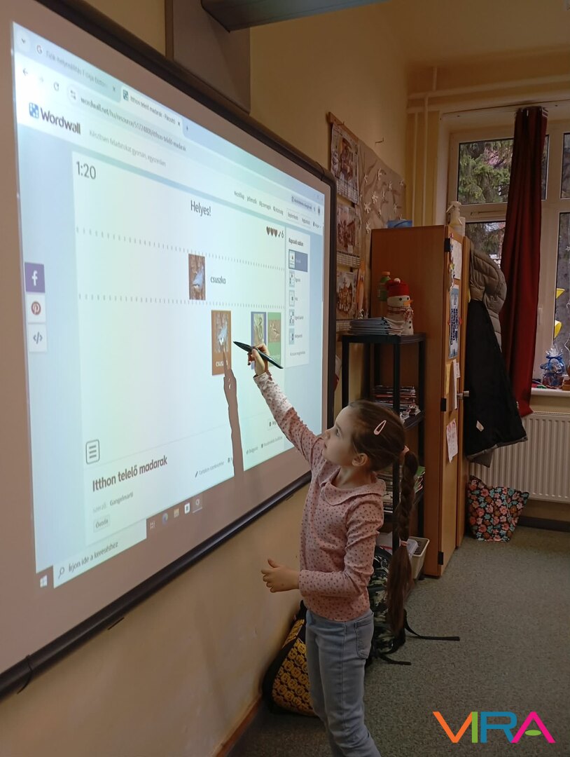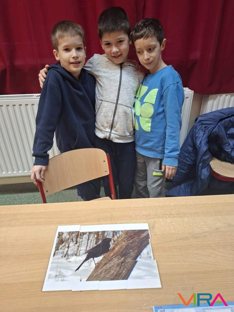 Az 1. évfolyam tanulói játékos feladatokon keresztül, puzzle kirakásával és kvíz kérdések megoldásával ismerkedtek meg a hazánkban télen is itt maradó madarakkal.