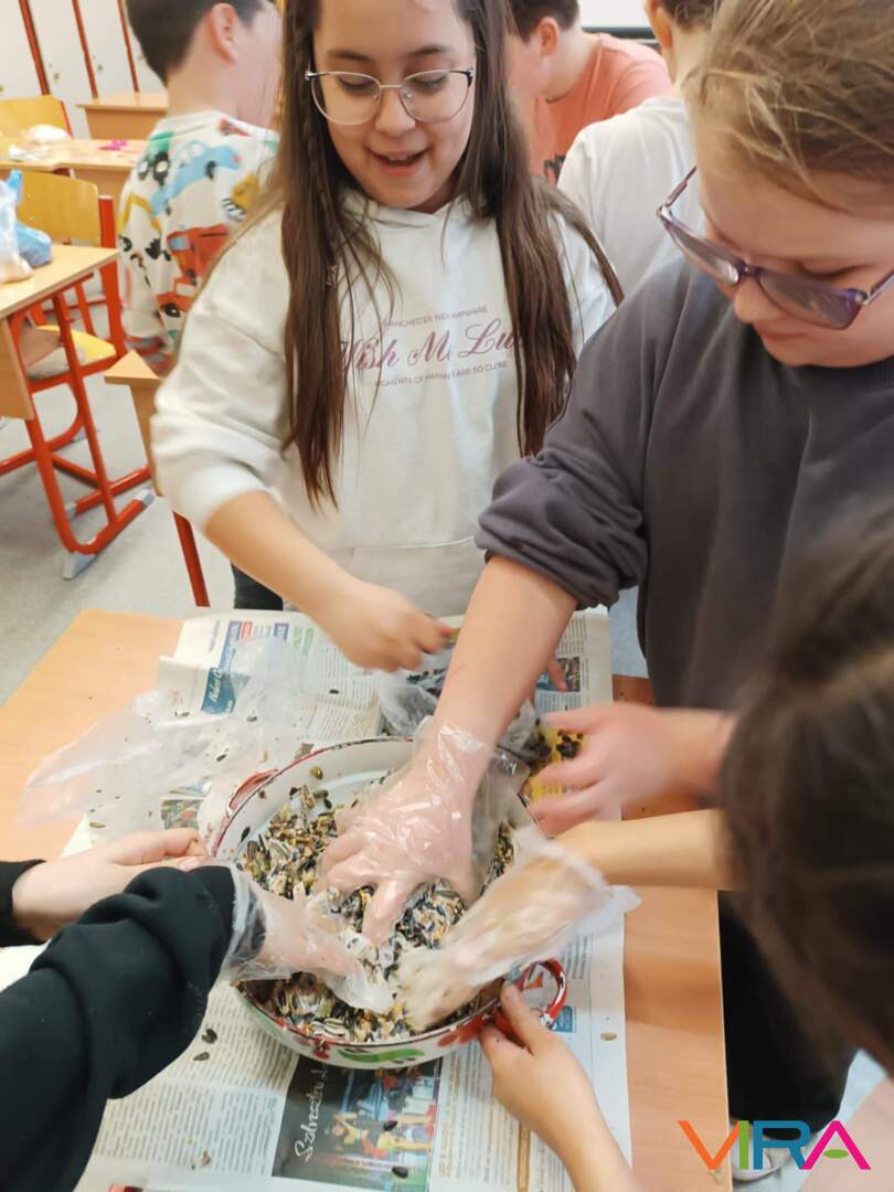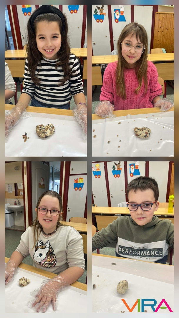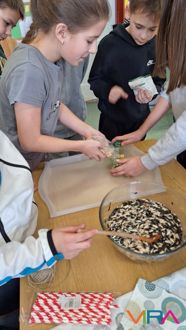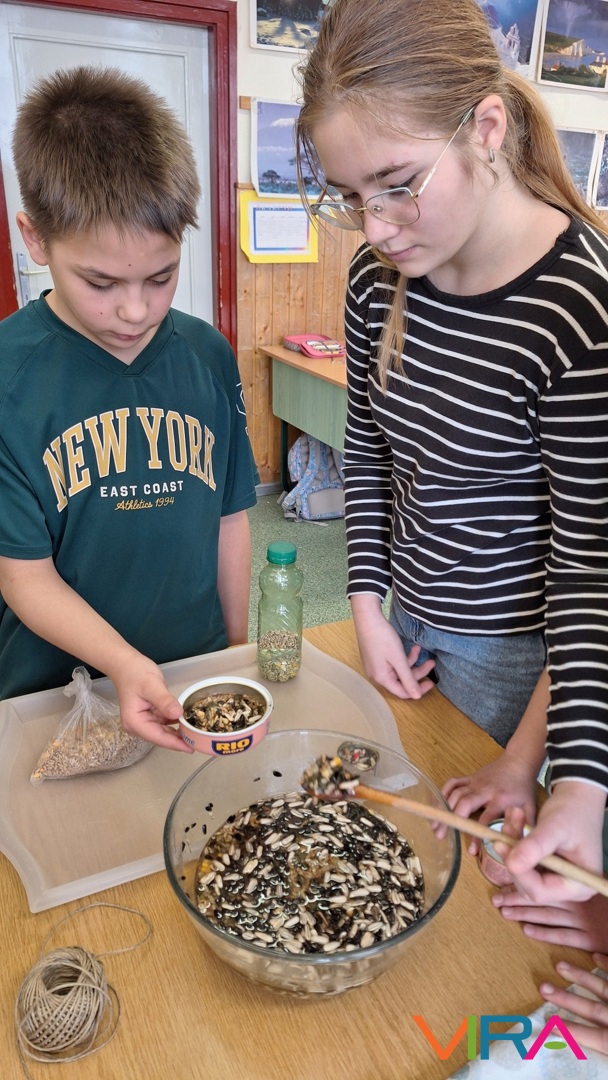 A 3. és 5. évfolyam diákjai madáreleséget és madárkalácsot készítettek, miközben megtanulták a helyes madáretetés szabályait.