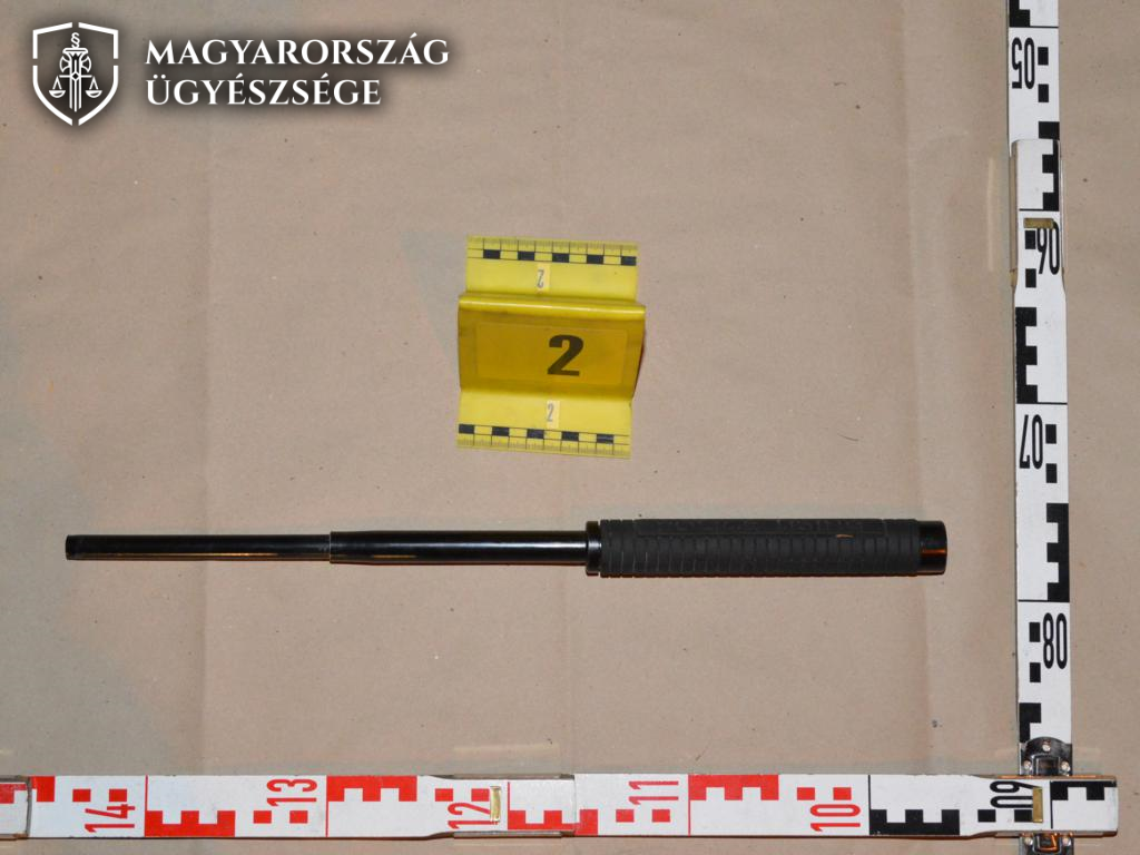 A csatolt rendőrségi szemlefotókon a bűncselekmény helyszíne és az elkövetéshez használt teleszkópos bot látható.