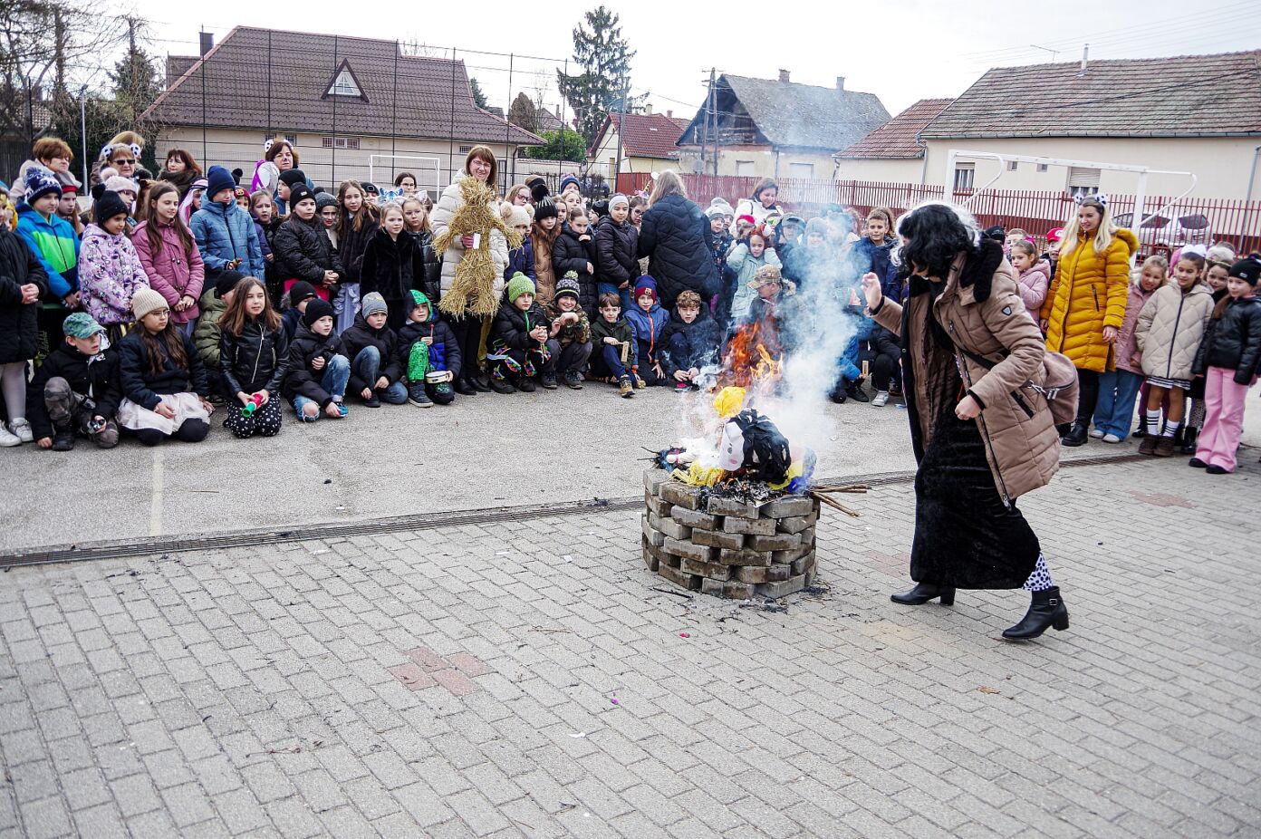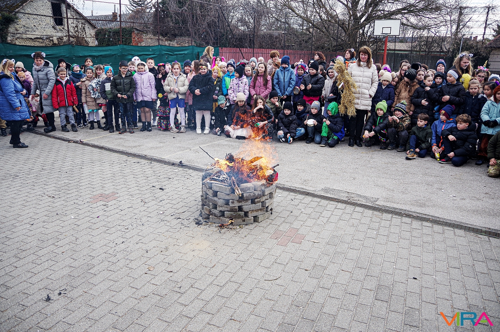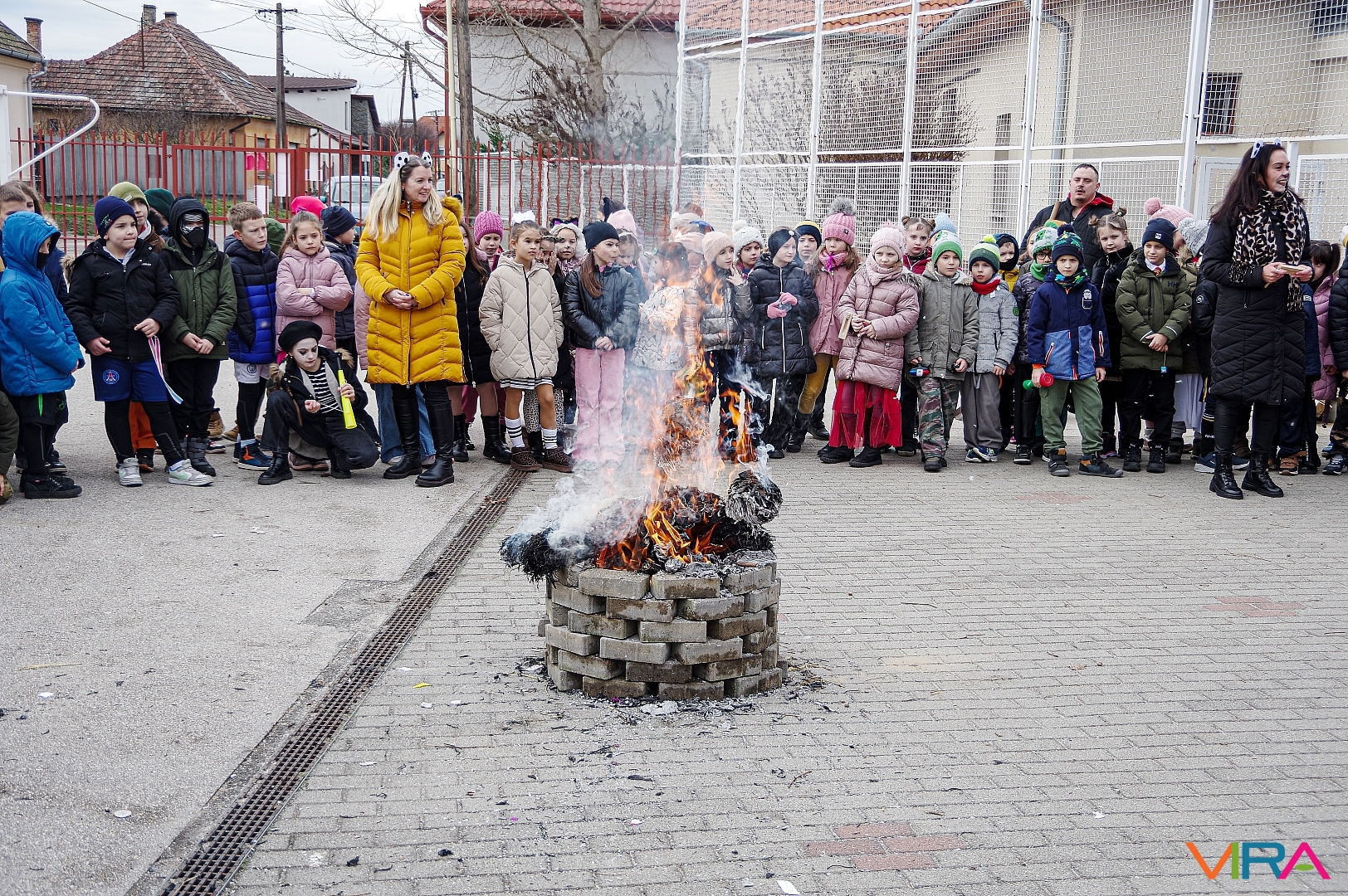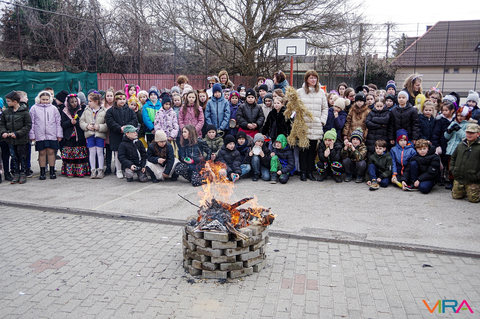 A télűzés hagyományaihoz kapcsolódva versikéket mondtak és az iskola udvarán minden osztály tűzre dobta a kiszebabáját. Most már jöhet a tavasz és a jó idő!