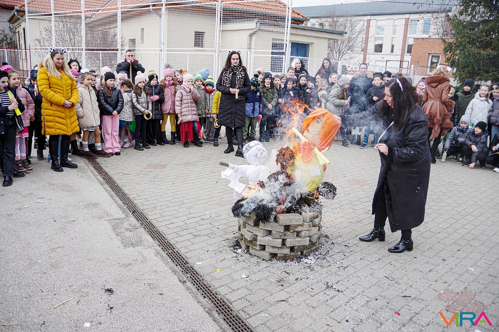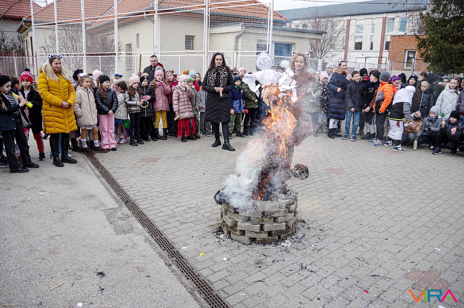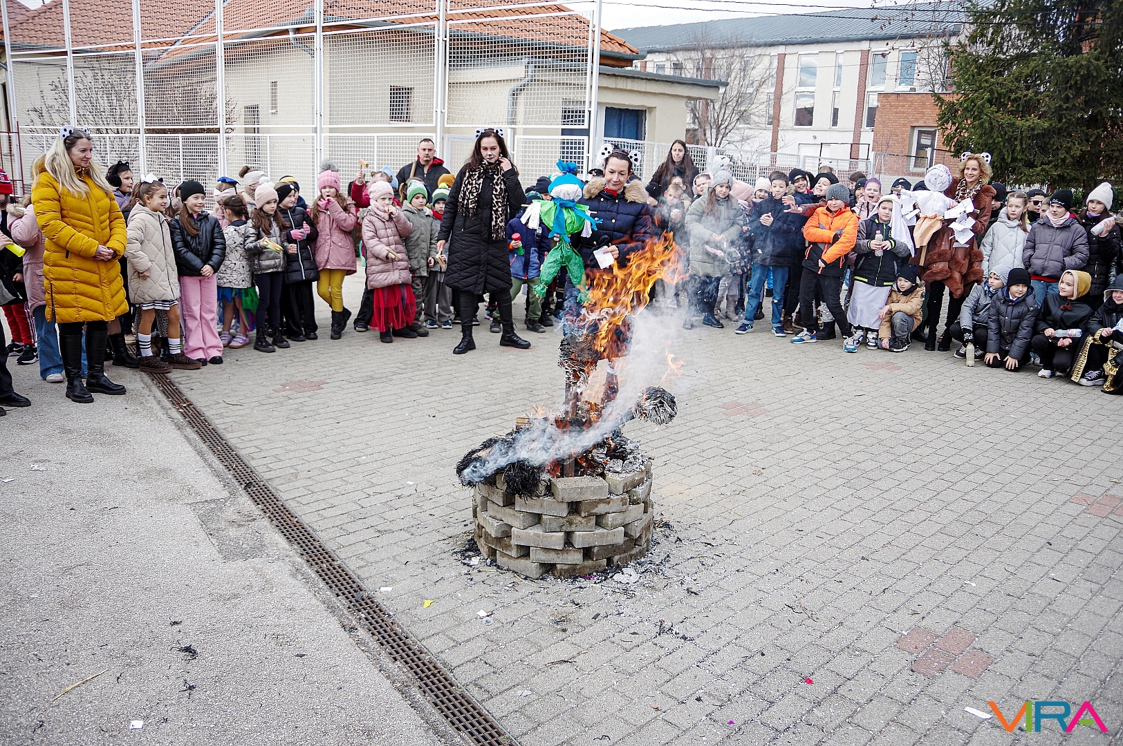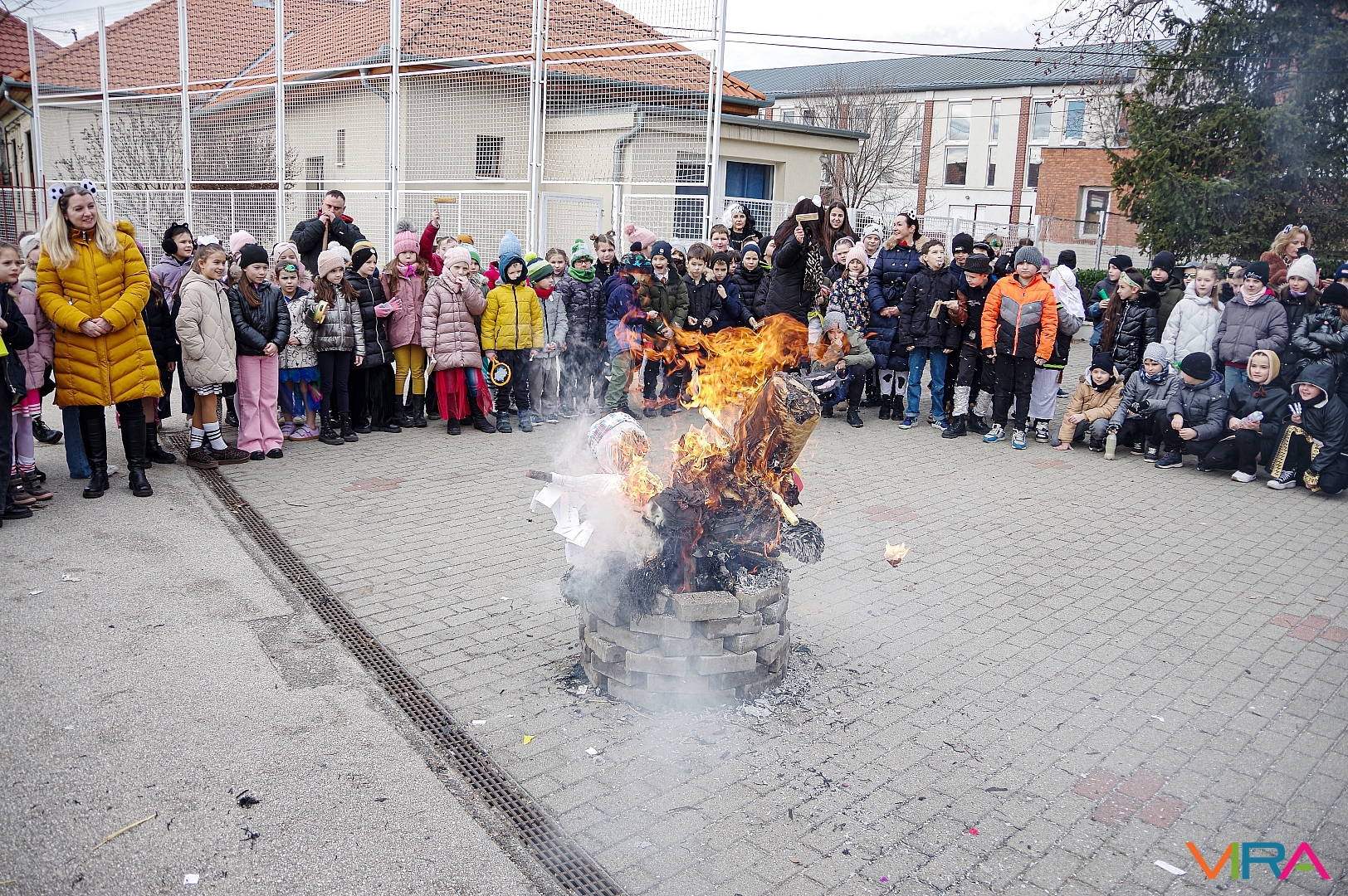 A télűzés hagyományaihoz kapcsolódva versikéket mondtak és az iskola udvarán minden osztály tűzre dobta a kiszebabáját. Most már jöhet a tavasz és a jó idő!