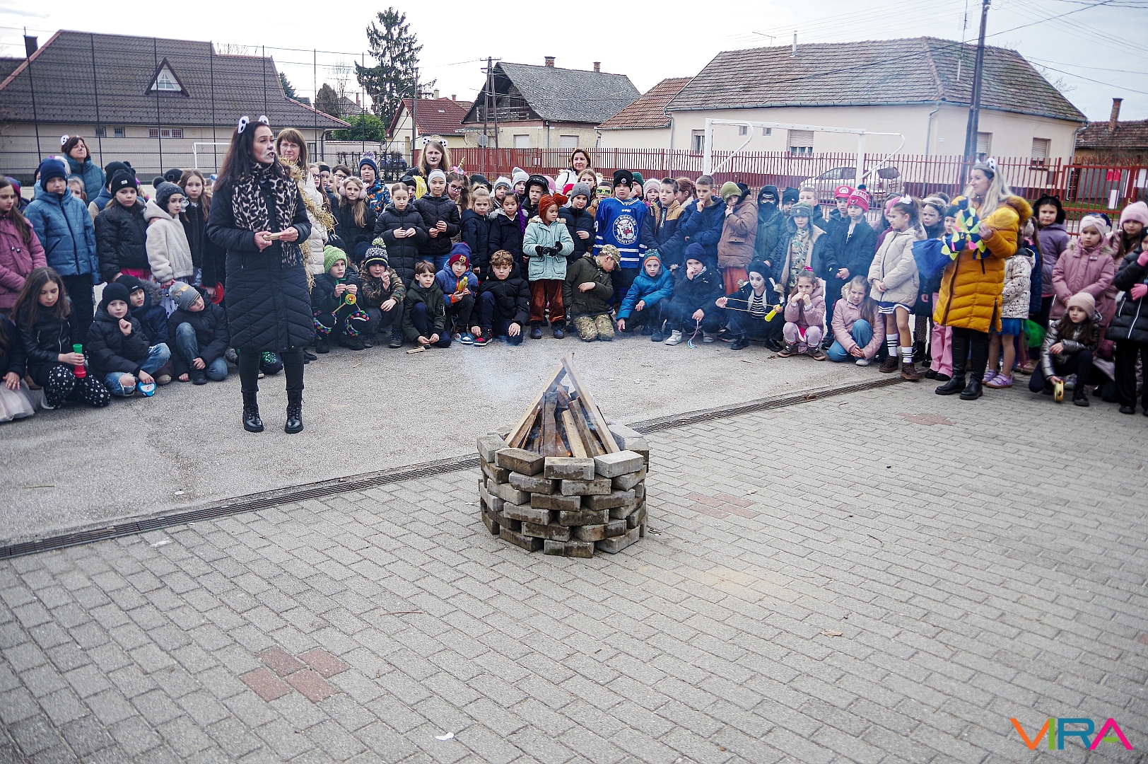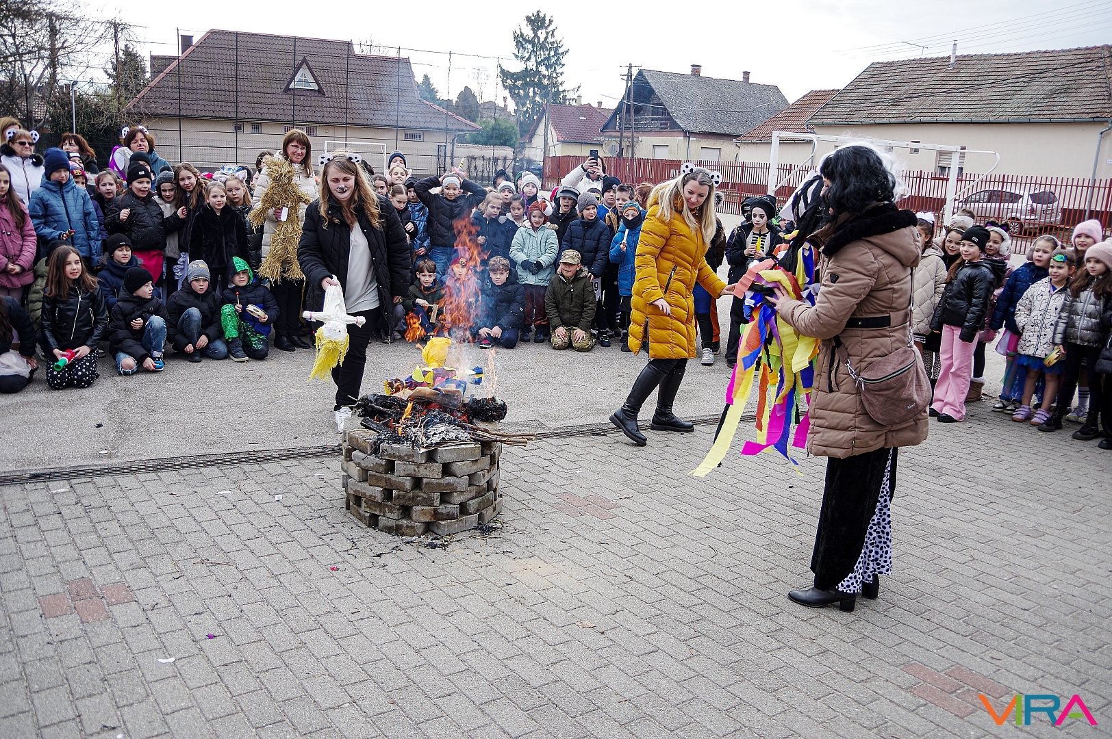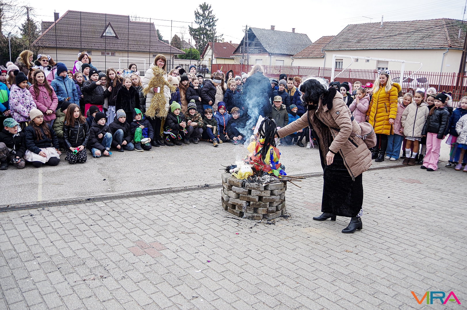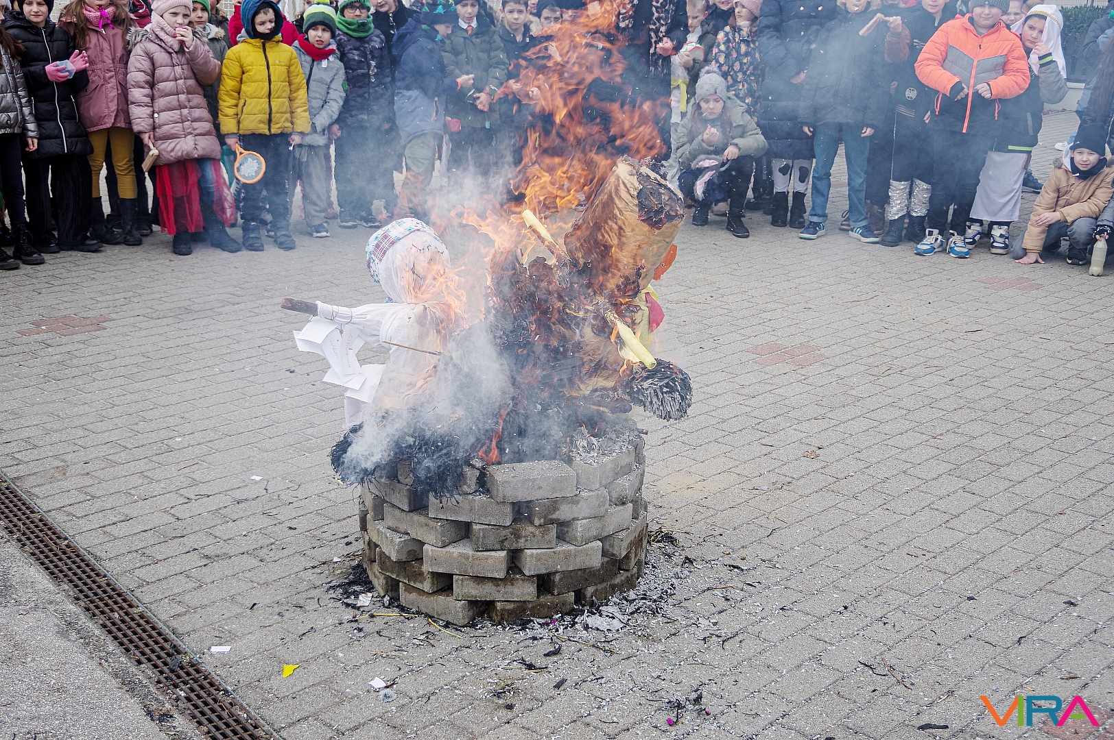 A télűzés hagyományaihoz kapcsolódva versikéket mondtak és az iskola udvarán minden osztály tűzre dobta a kiszebabáját. Most már jöhet a tavasz és a jó idő!