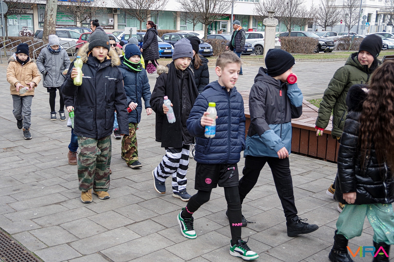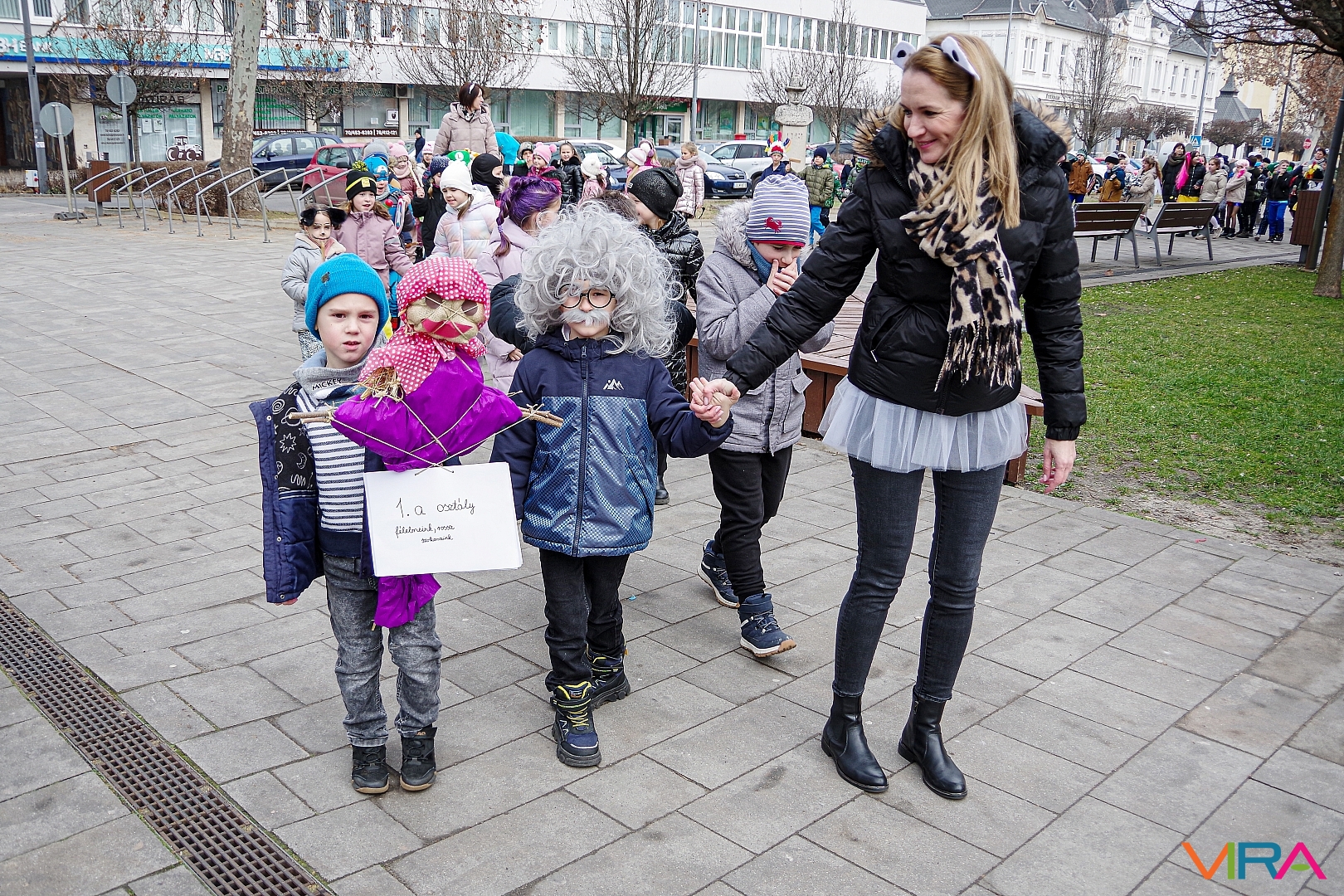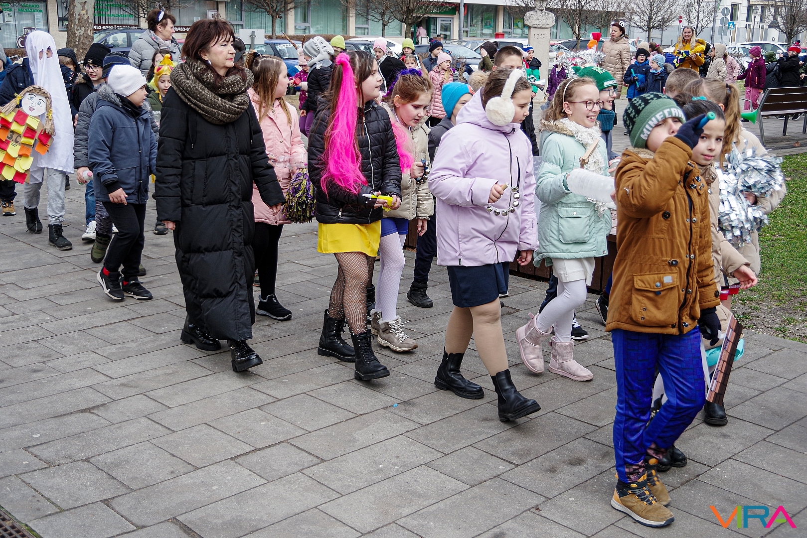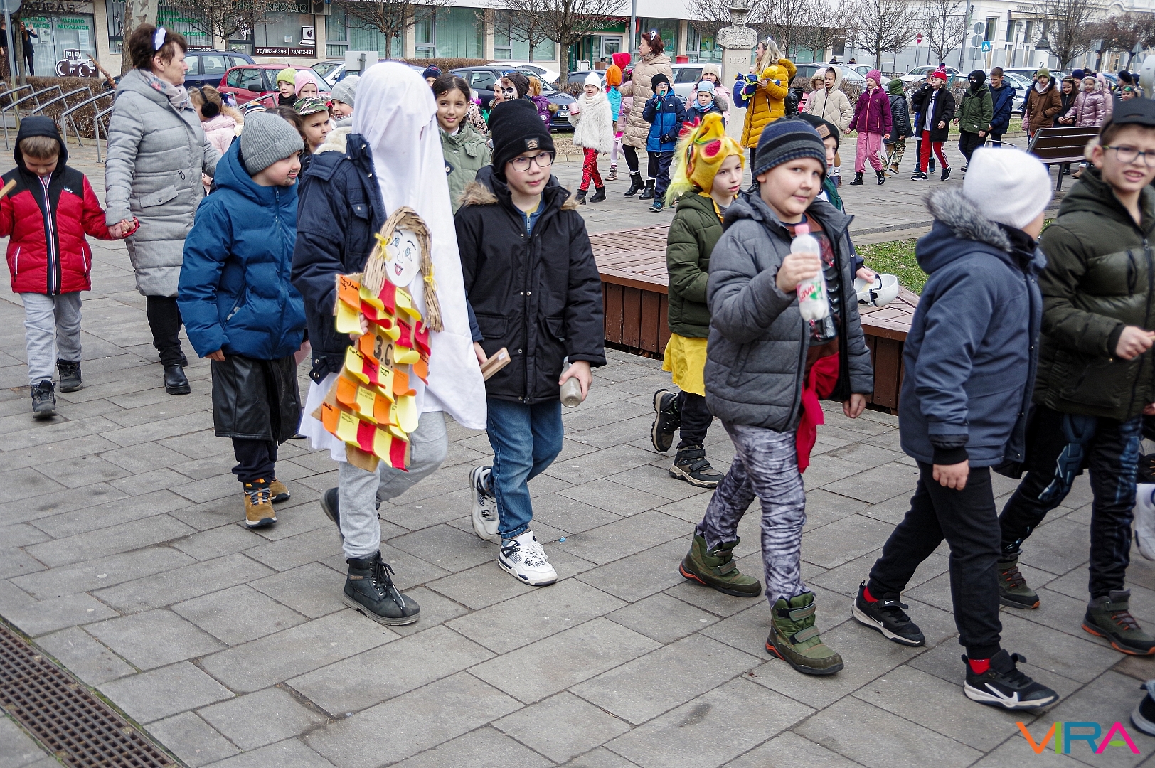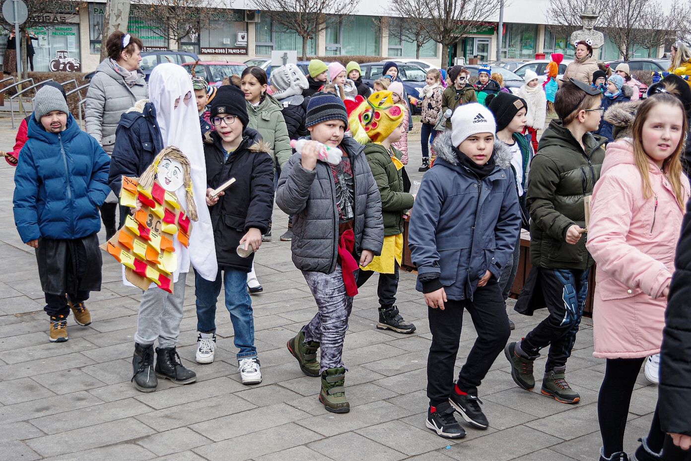A nap egyik látványos programja volt, amikor 10 órakor egy városi sétára indultak az osztályok kereplőkkel, különféle zajkeltő eszközökkel, hogy elűzzék a szürke, hideg telet. A város főterén egy közös télűző versikét is elmondtak a biztonság kedvéért…
