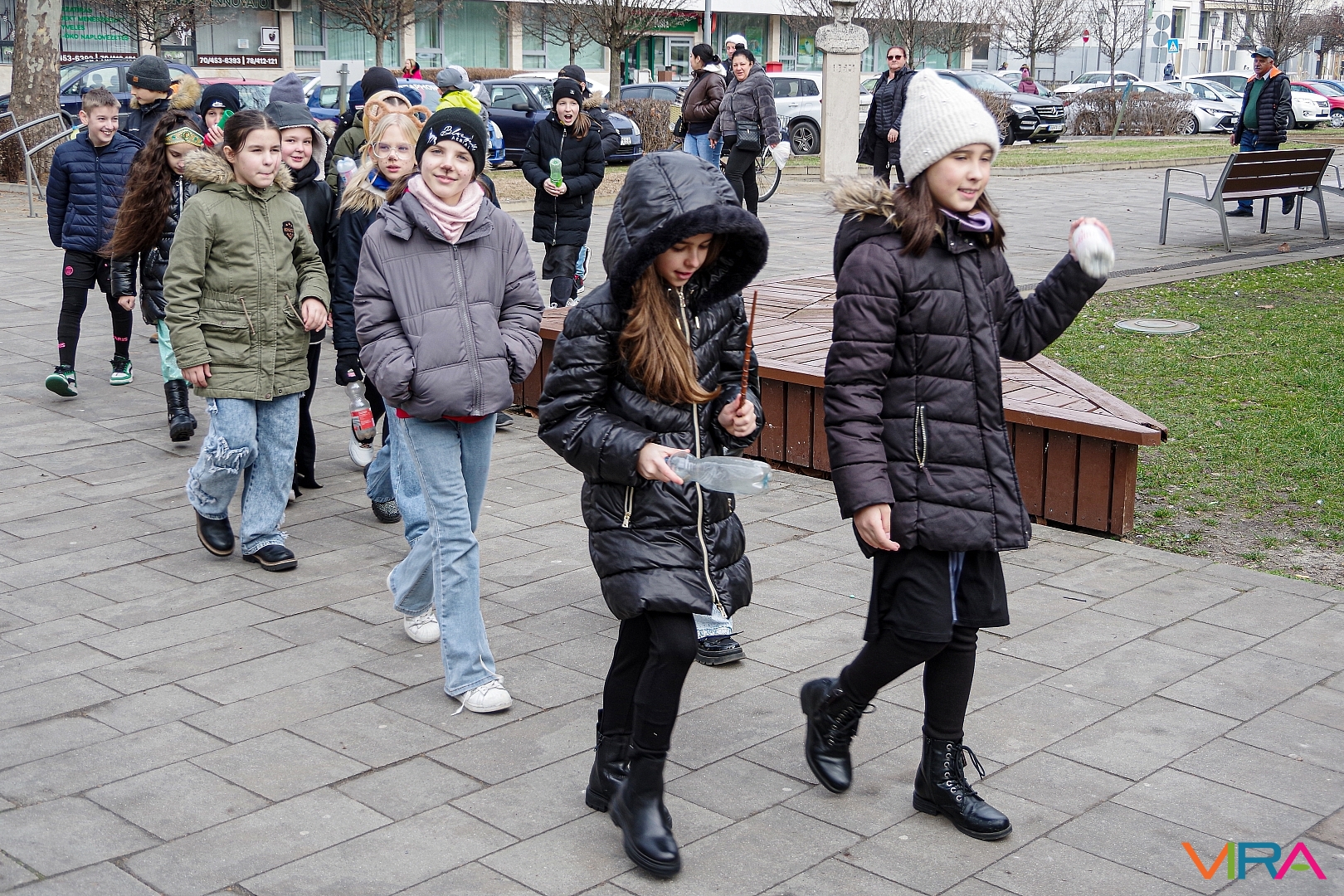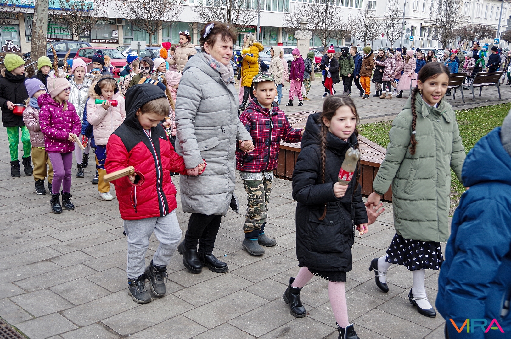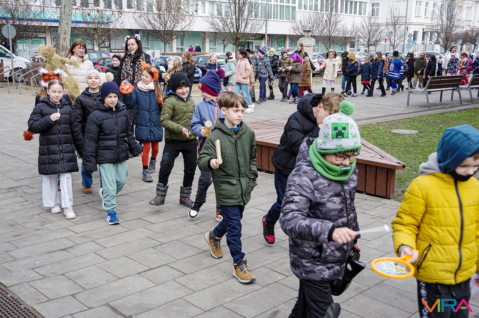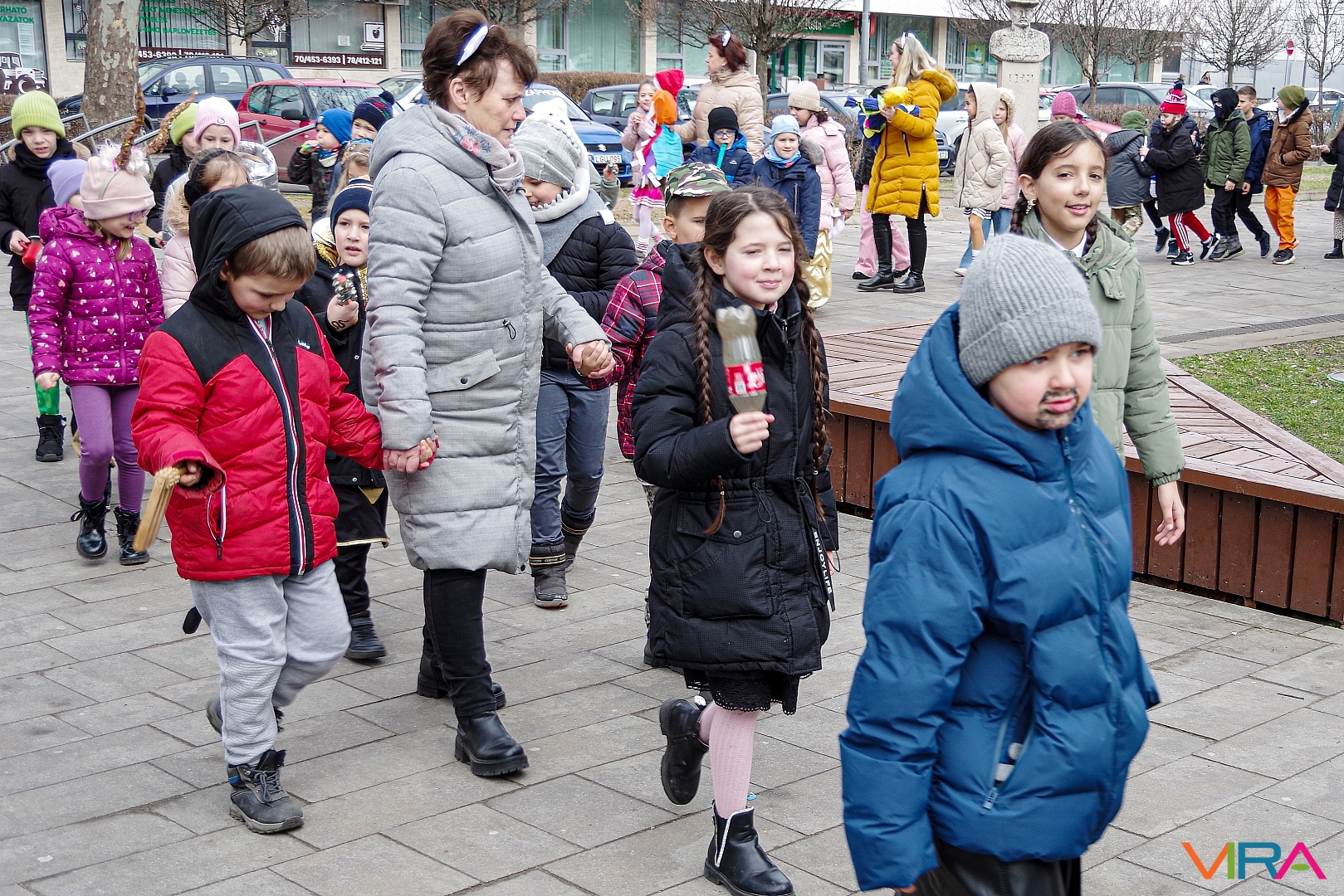 A nap egyik látványos programja volt, amikor 10 órakor egy városi sétára indultak az osztályok kereplőkkel, különféle zajkeltő eszközökkel, hogy elűzzék a szürke, hideg telet. A város főterén egy közös télűző versikét is elmondtak a biztonság kedvéért…