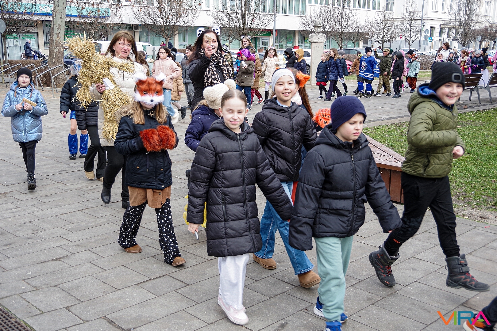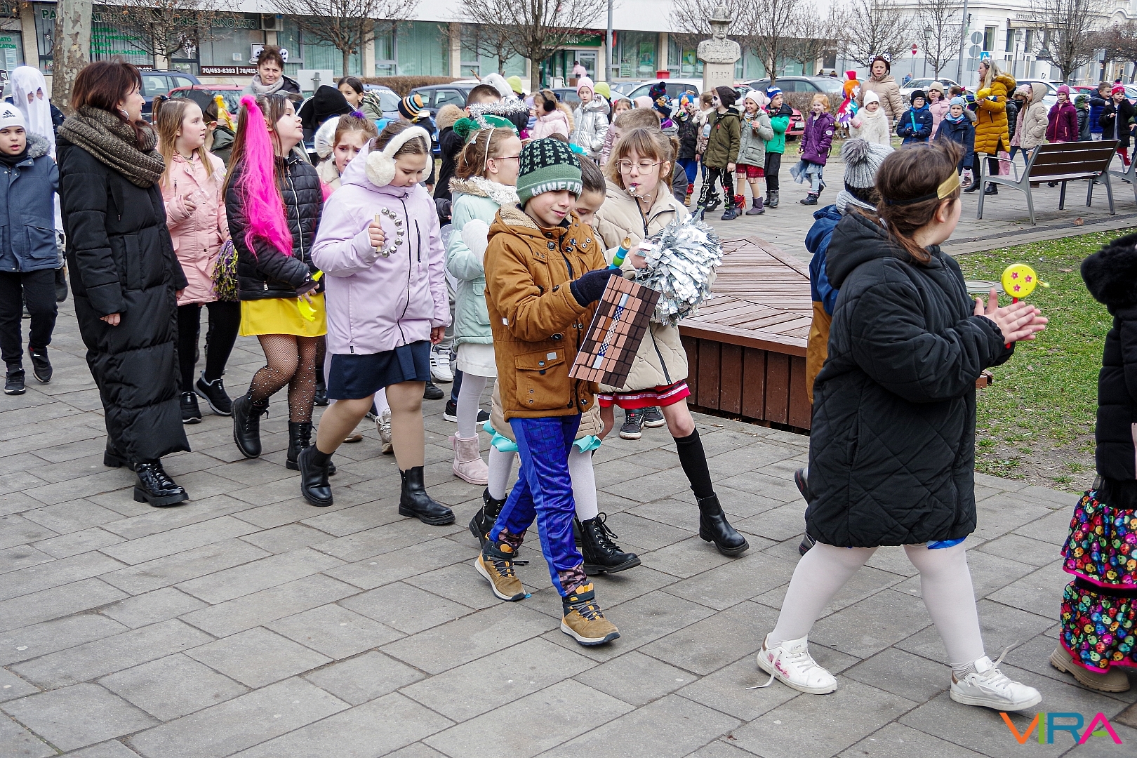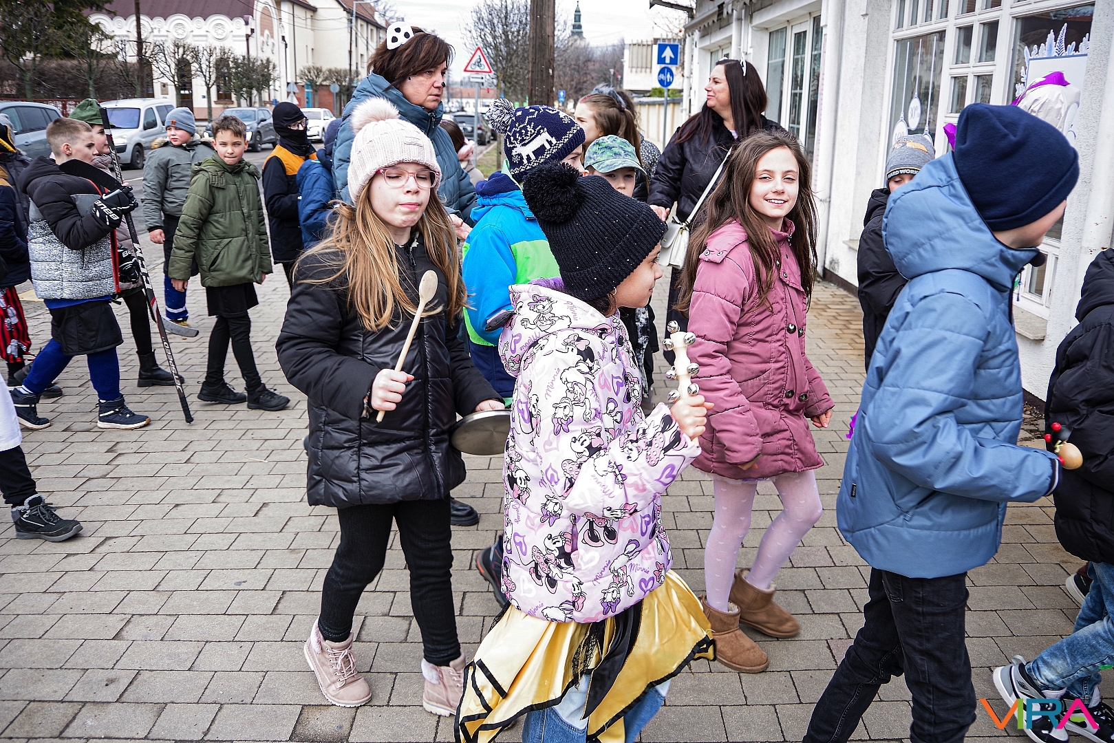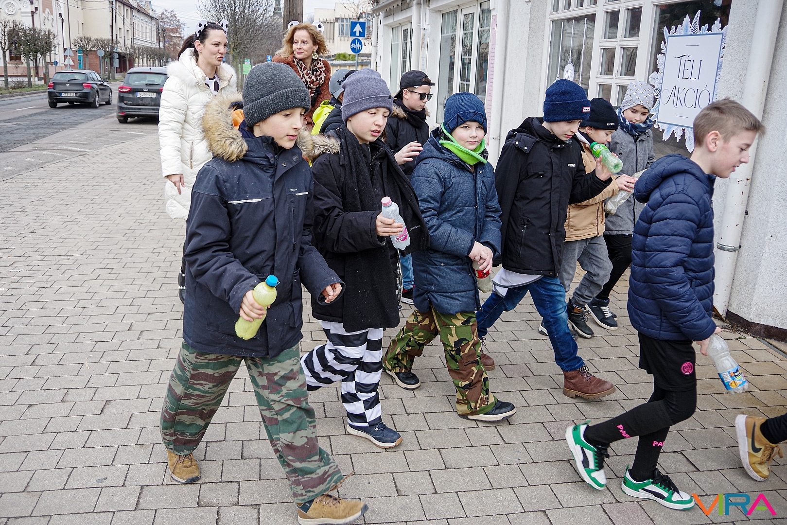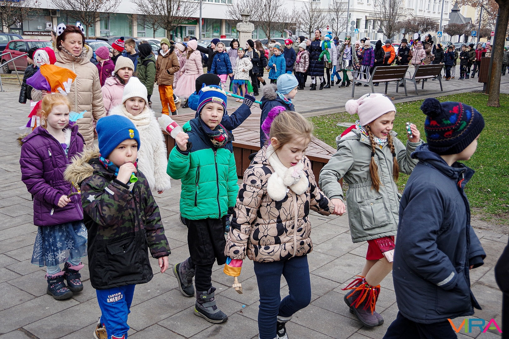 A nap egyik látványos programja volt, amikor 10 órakor egy városi sétára indultak az osztályok kereplőkkel, különféle zajkeltő eszközökkel, hogy elűzzék a szürke, hideg telet. A város főterén egy közös télűző versikét is elmondtak a biztonság kedvéért…