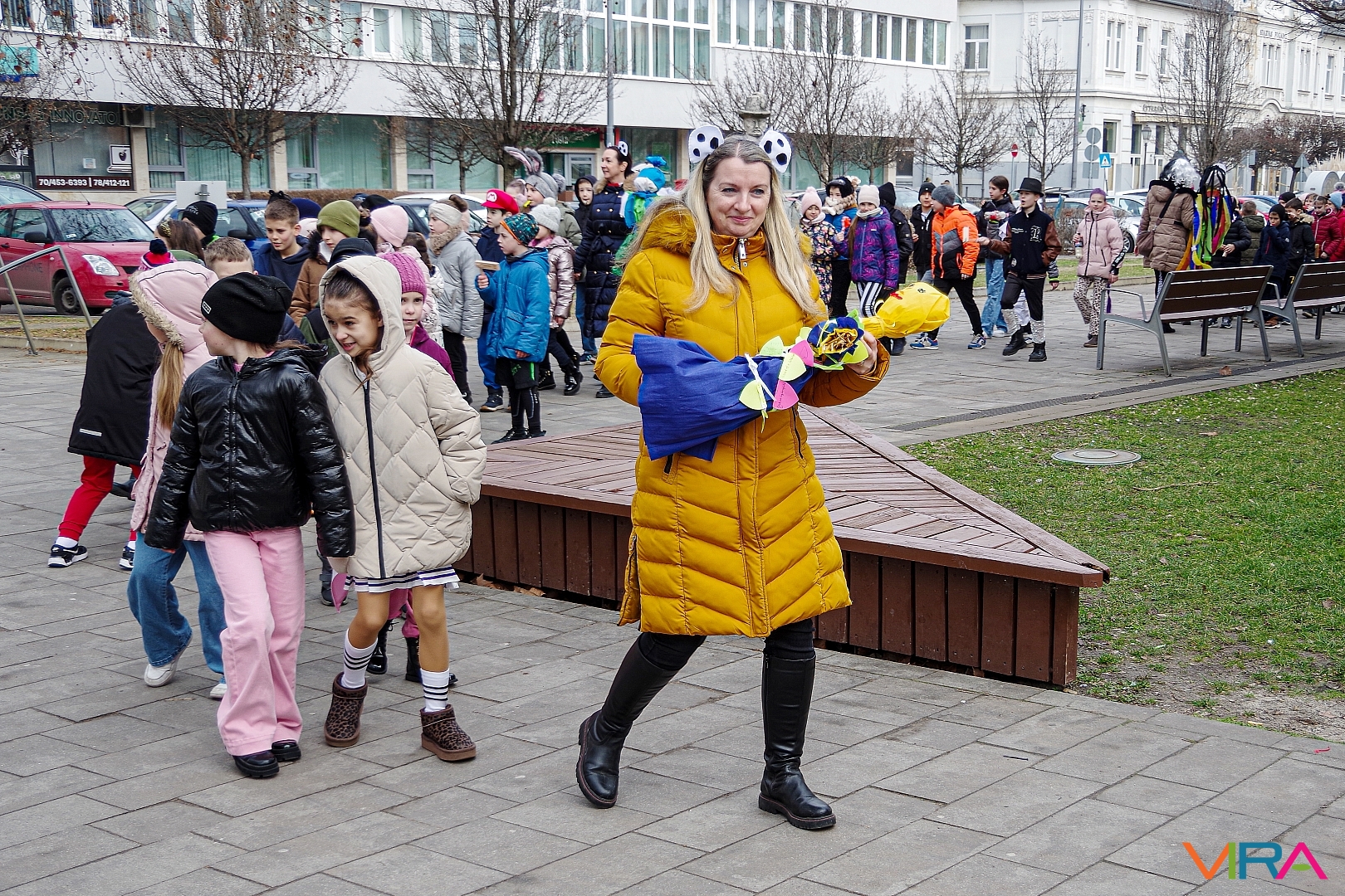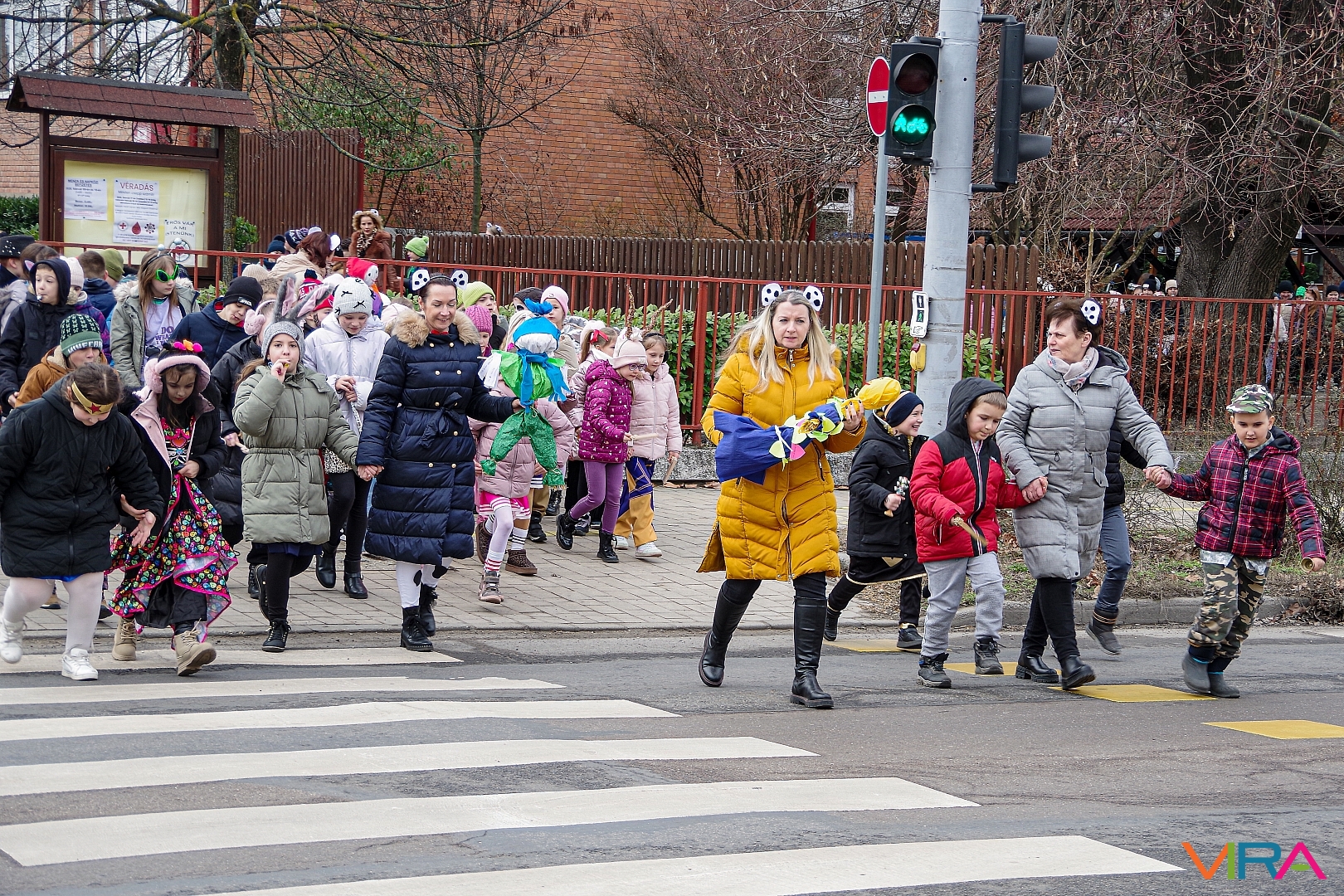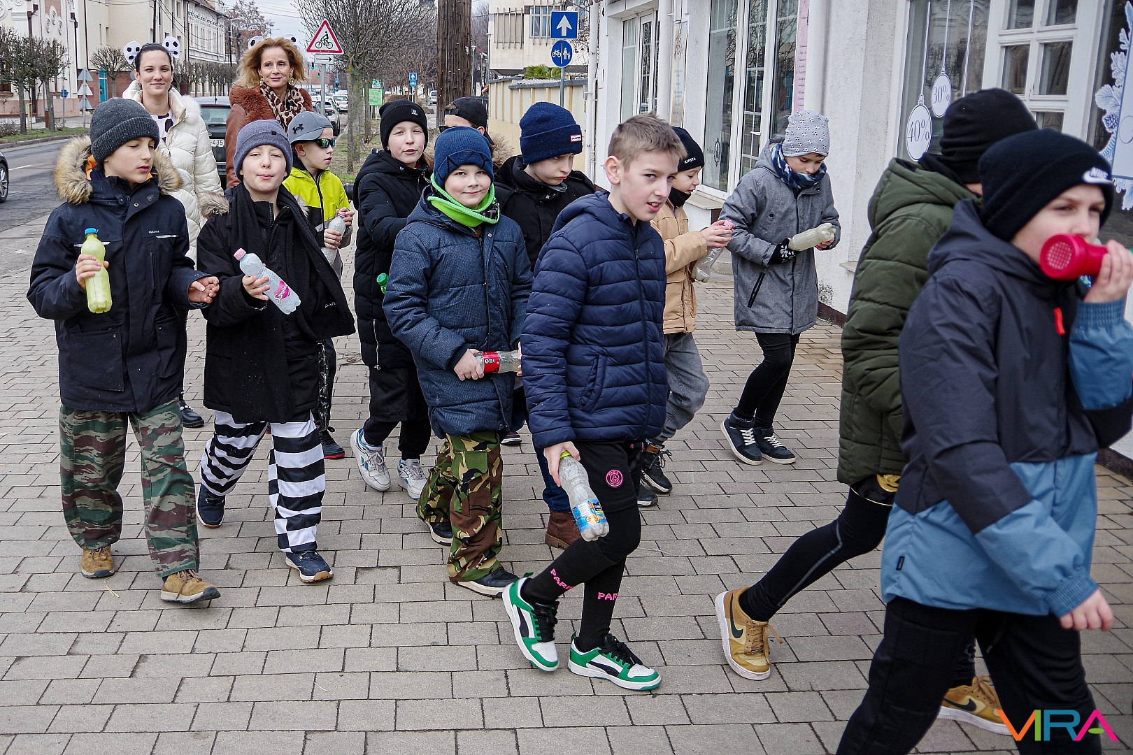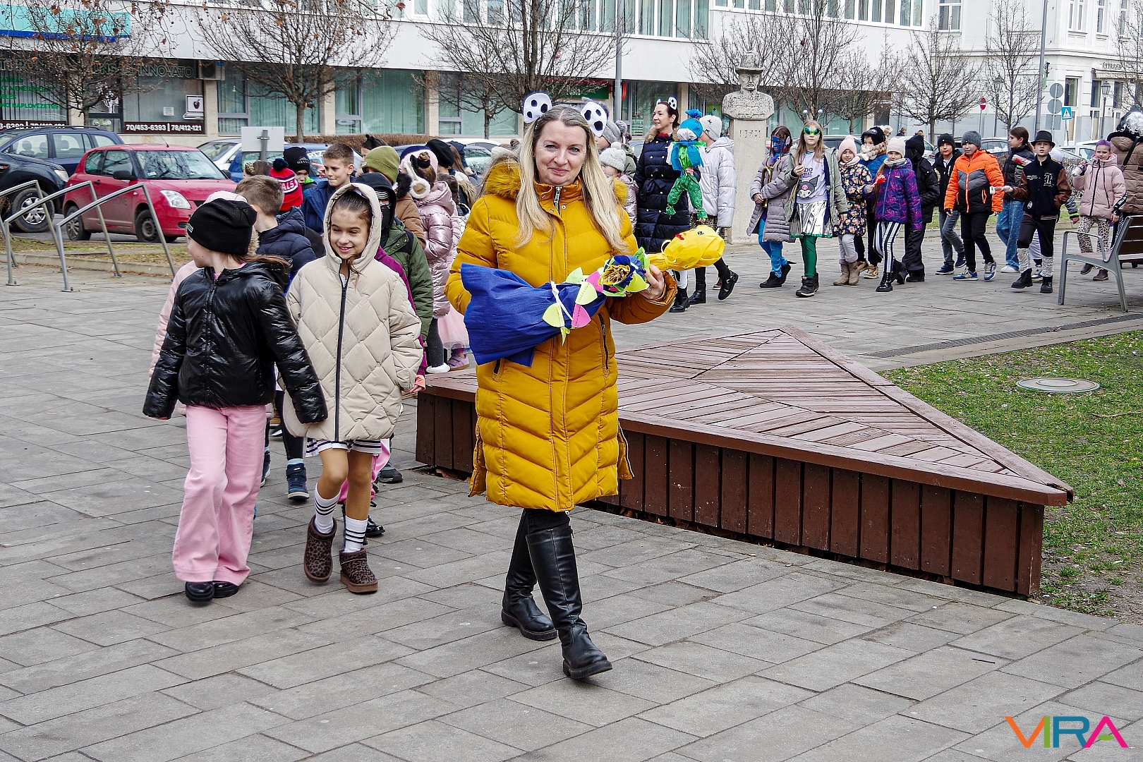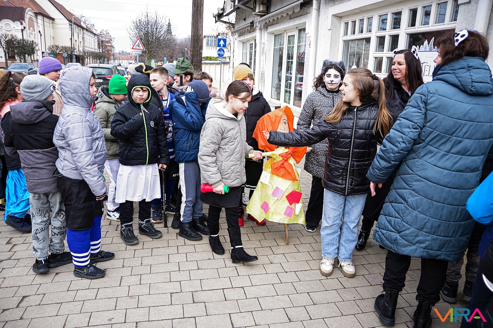 A nap egyik látványos programja volt, amikor 10 órakor egy városi sétára indultak az osztályok kereplőkkel, különféle zajkeltő eszközökkel, hogy elűzzék a szürke, hideg telet. A város főterén egy közös télűző versikét is elmondtak a biztonság kedvéért…