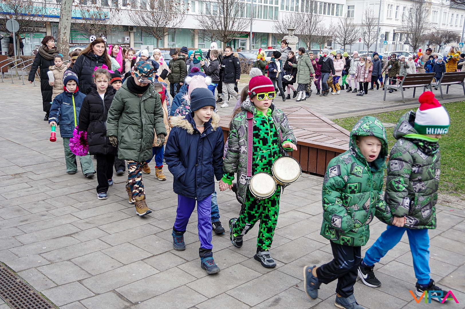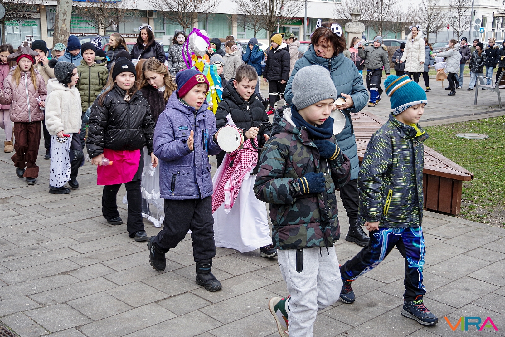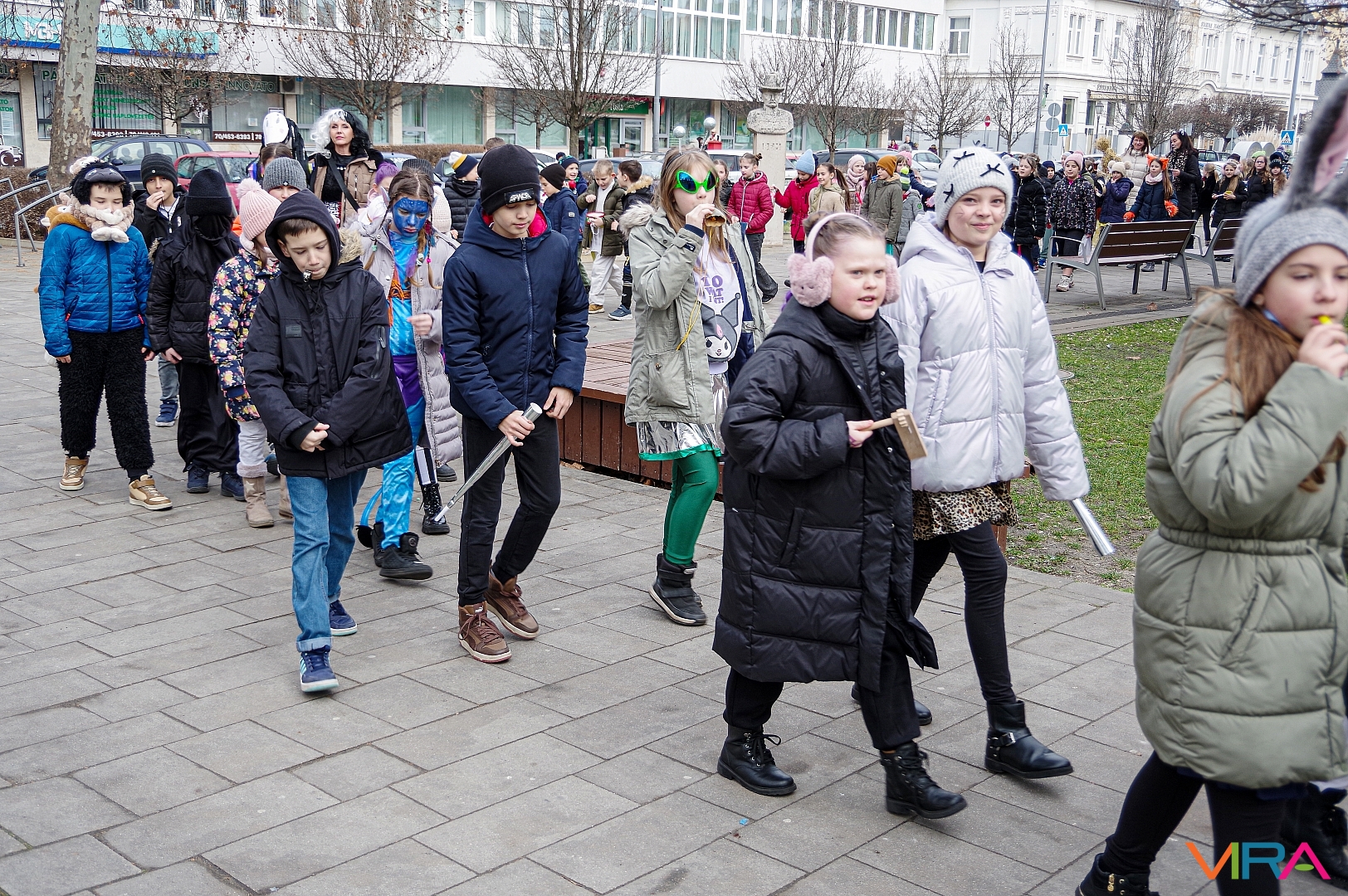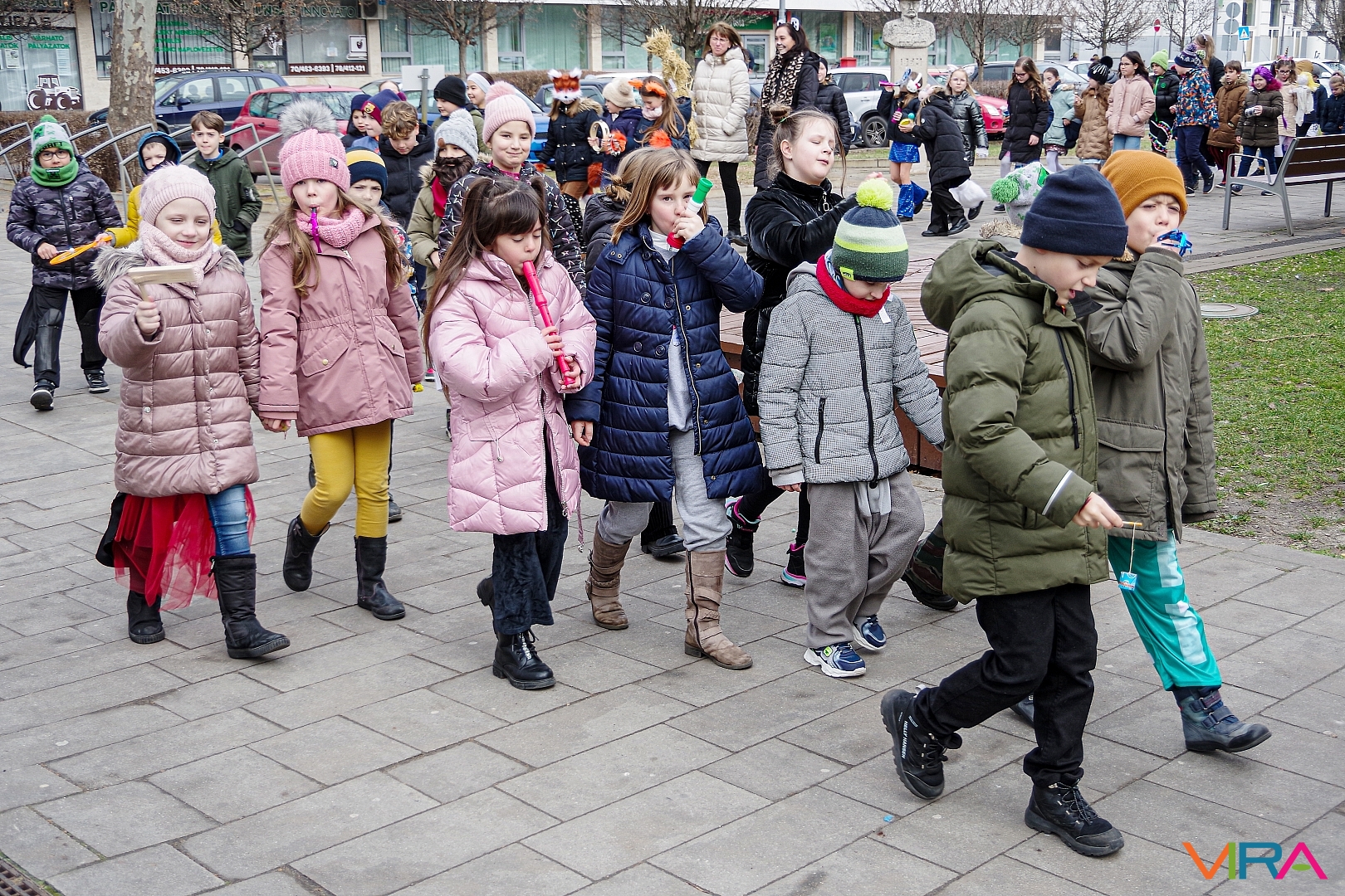 A Kiskőrösi KEVI Petőfi Sándor Általános Iskolája alsós osztályai a farsangi témanap keretében “télűző” programon vettek részt. A gyermekek jelmezekbe öltözve, kereplőkkel, dudákkal, síppal és mindenféle “hangos” eszközökkel vonultak fel Kiskőrös városközpontjában.