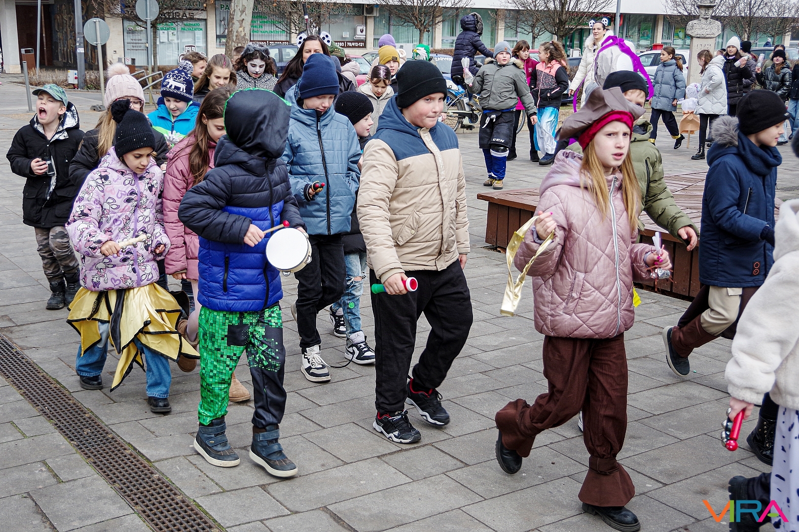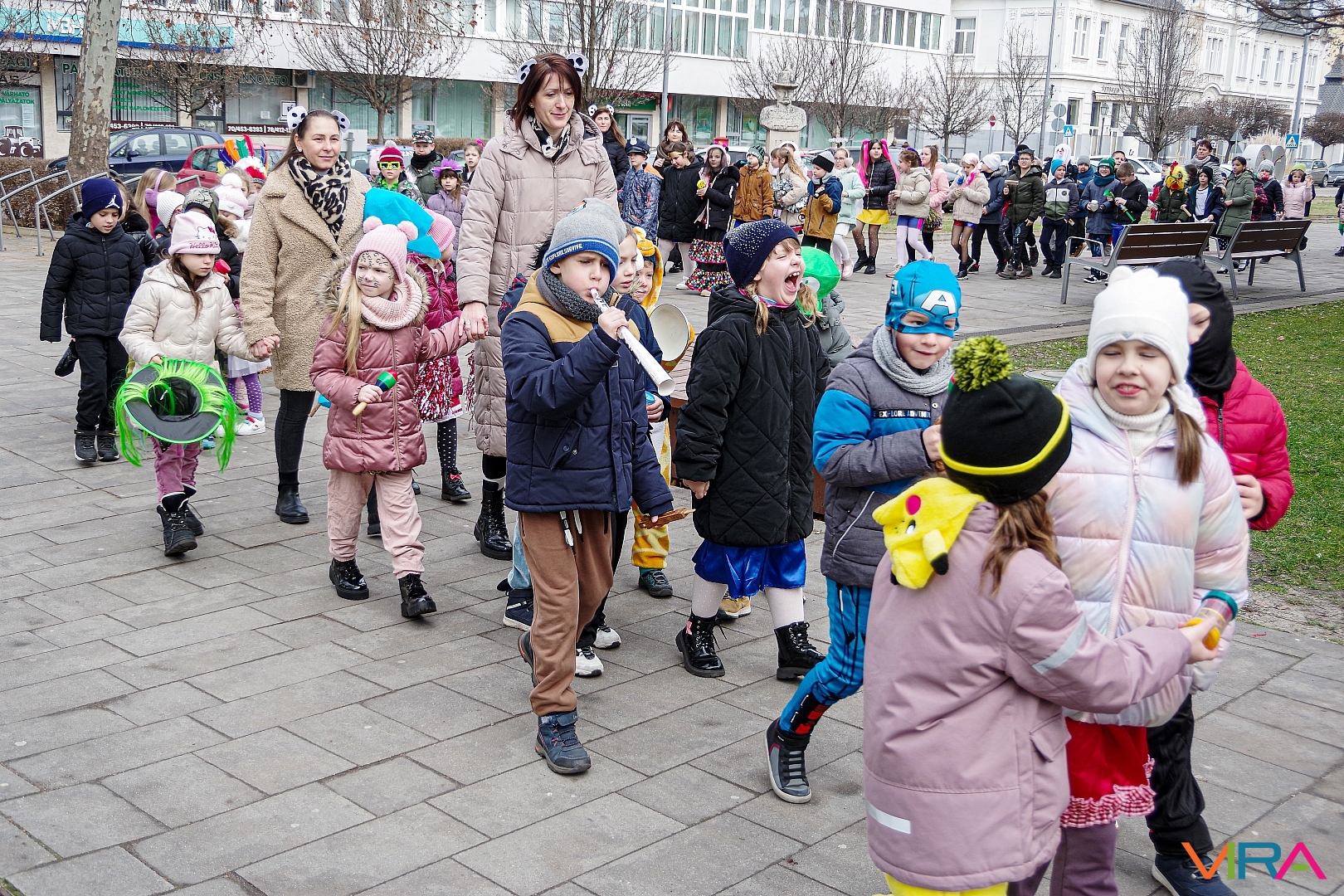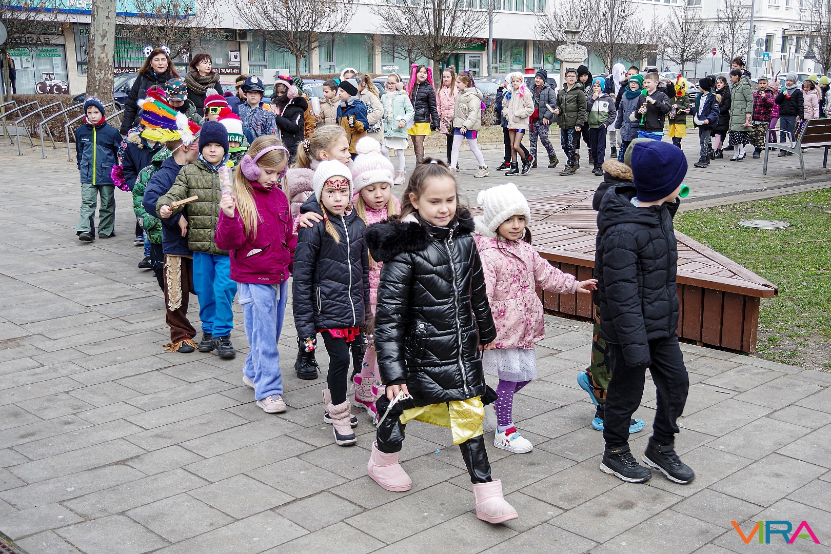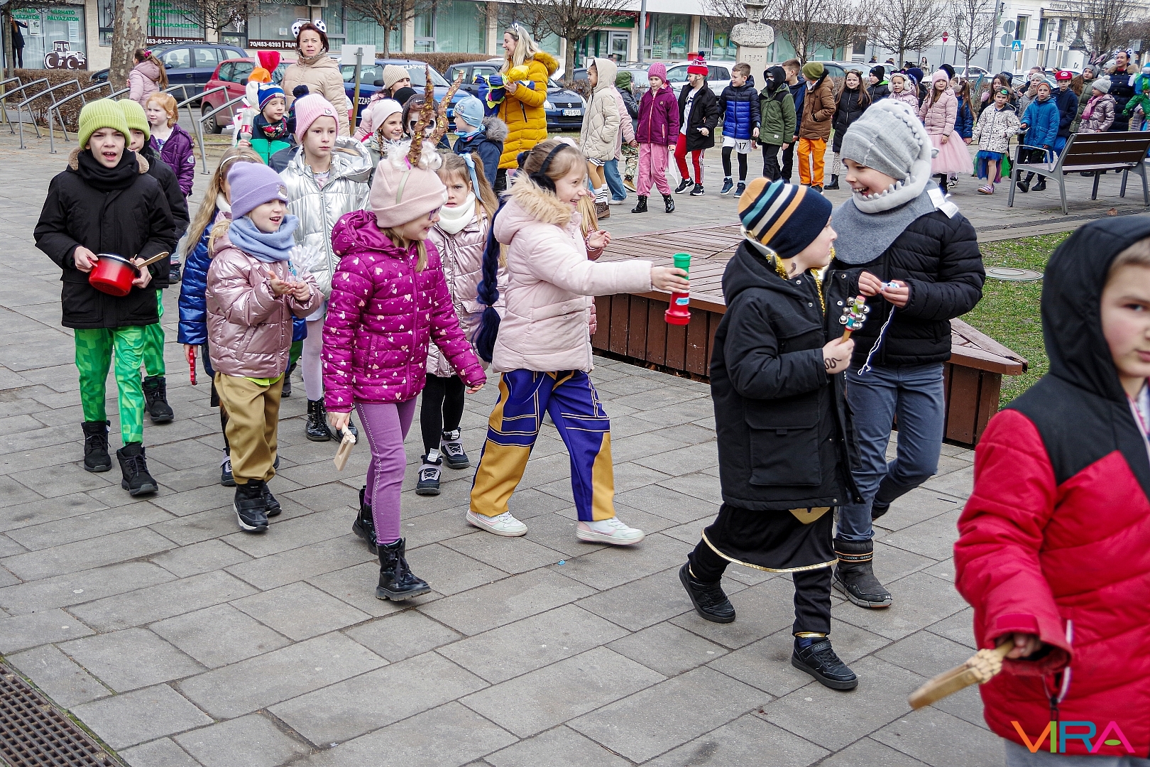A Kiskőrösi KEVI Petőfi Sándor Általános Iskolája alsós osztályai a farsangi témanap keretében “télűző” programon vettek részt. A gyermekek jelmezekbe öltözve, kereplőkkel, dudákkal, síppal és mindenféle “hangos” eszközökkel vonultak fel Kiskőrös városközpontjában.