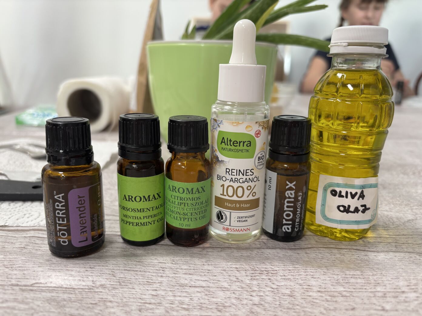 Tengeri só alapra dolgoztunk, amelyhez a gyerekek választhattak 100%-os, természetes illóolajokat. Megbeszéltük, mire való egy-egy illat, mikor használjuk, és hogyan hat a testre-lélekre.