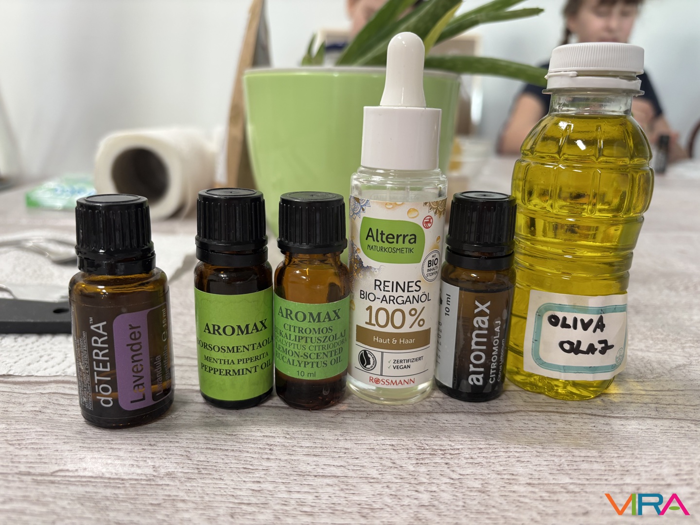 Tengeri só alapra dolgoztunk, amelyhez a gyerekek választhattak 100%-os, természetes illóolajokat. Megbeszéltük, mire való egy-egy illat, mikor használjuk, és hogyan hat a testre-lélekre.